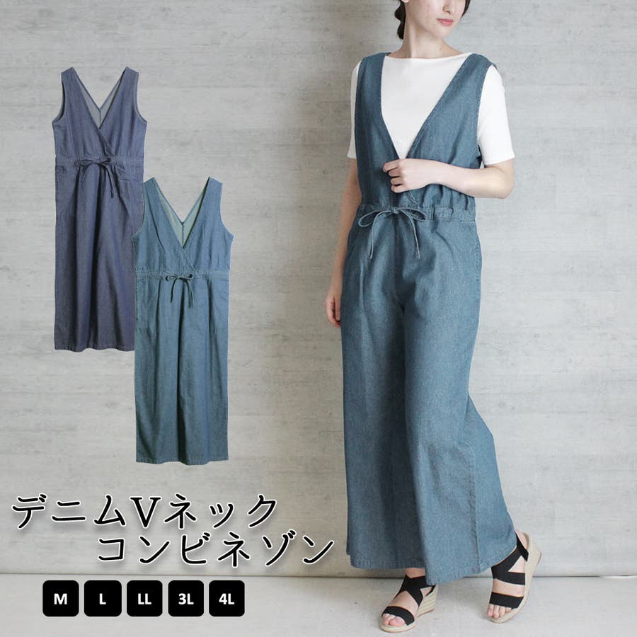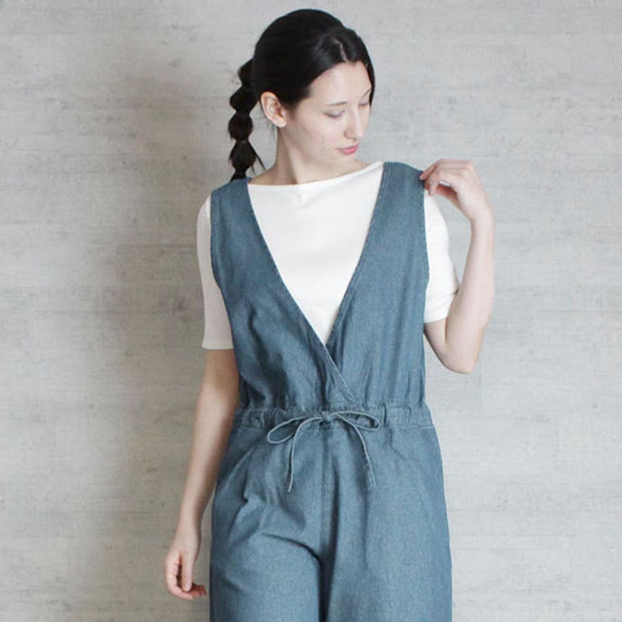 デニムVネックコンビネゾン