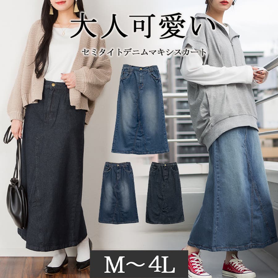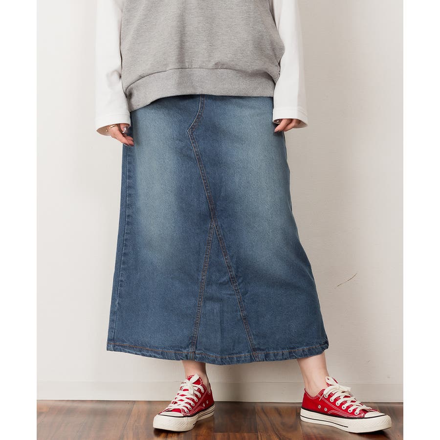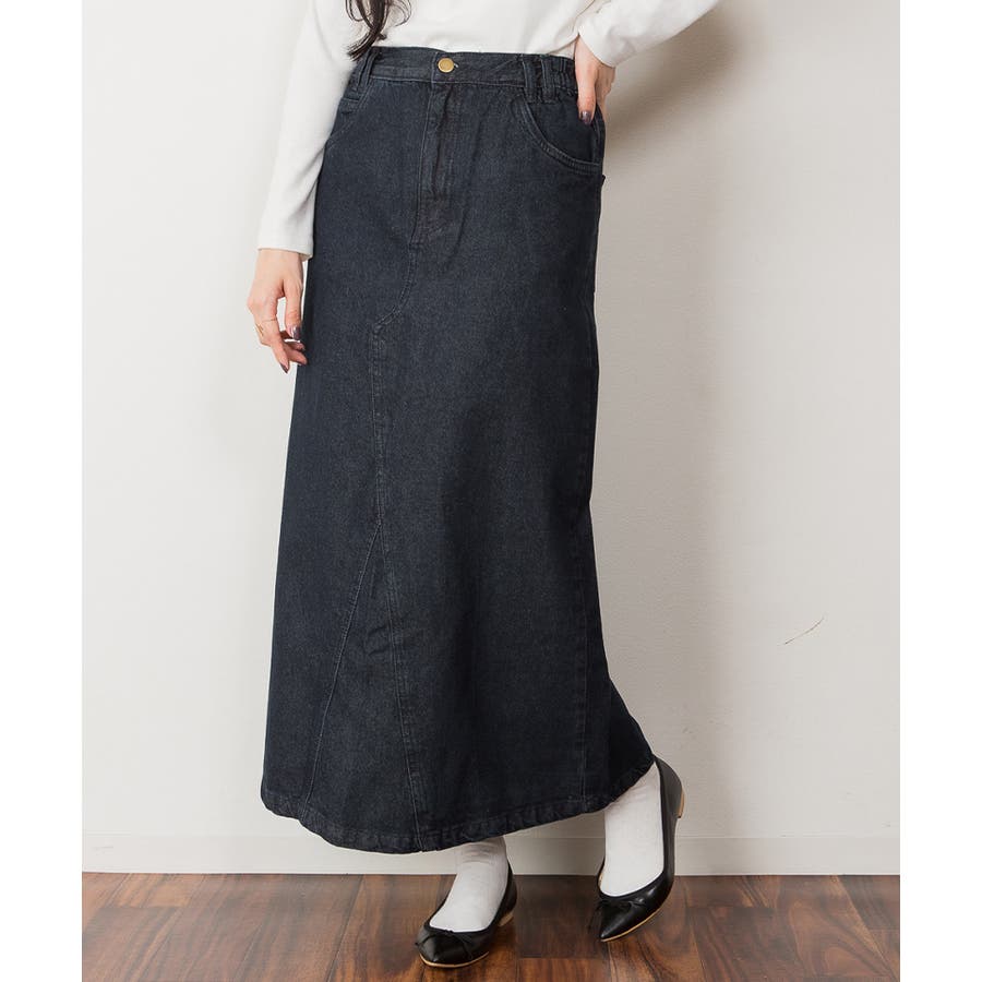 セミタイトデニムマキシスカート