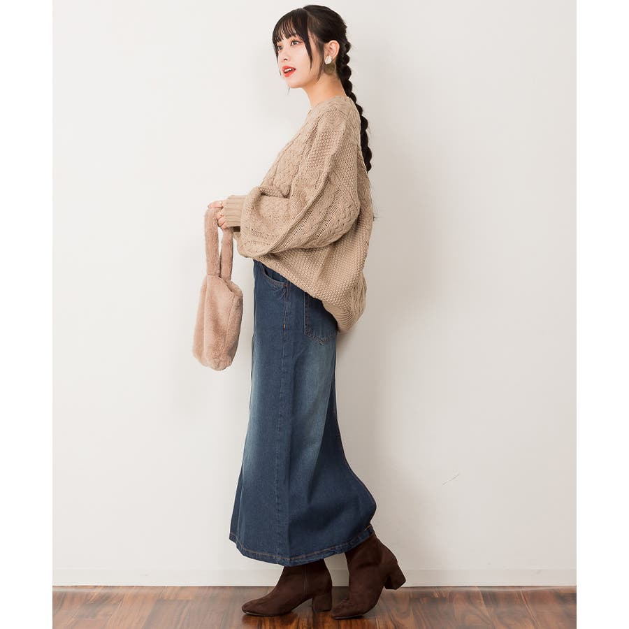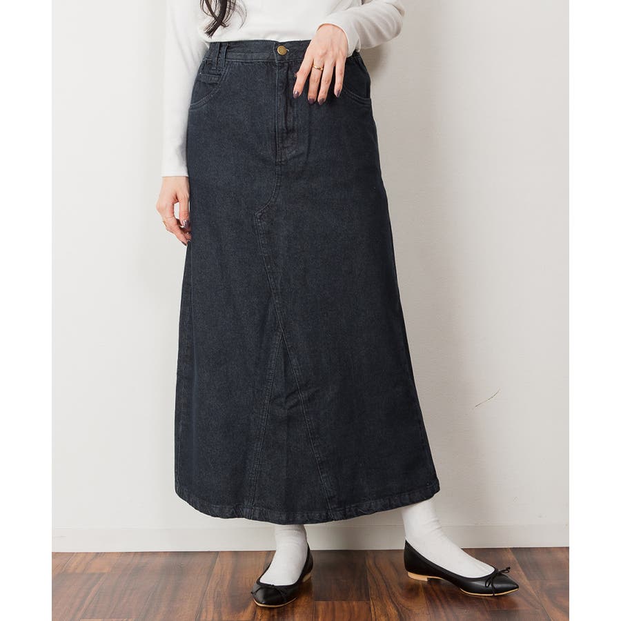 大人っぽいロング丈のデニムスカート。