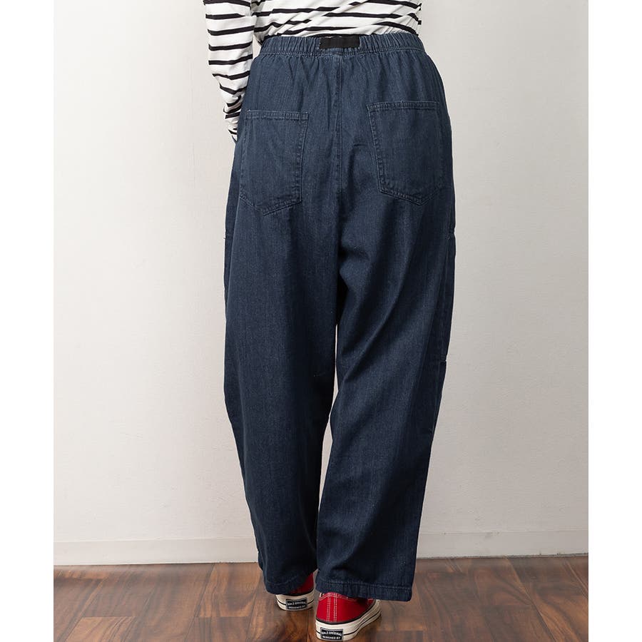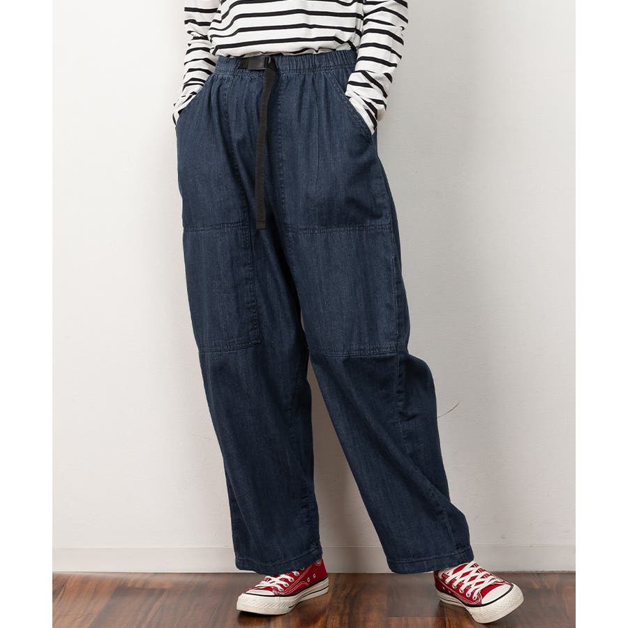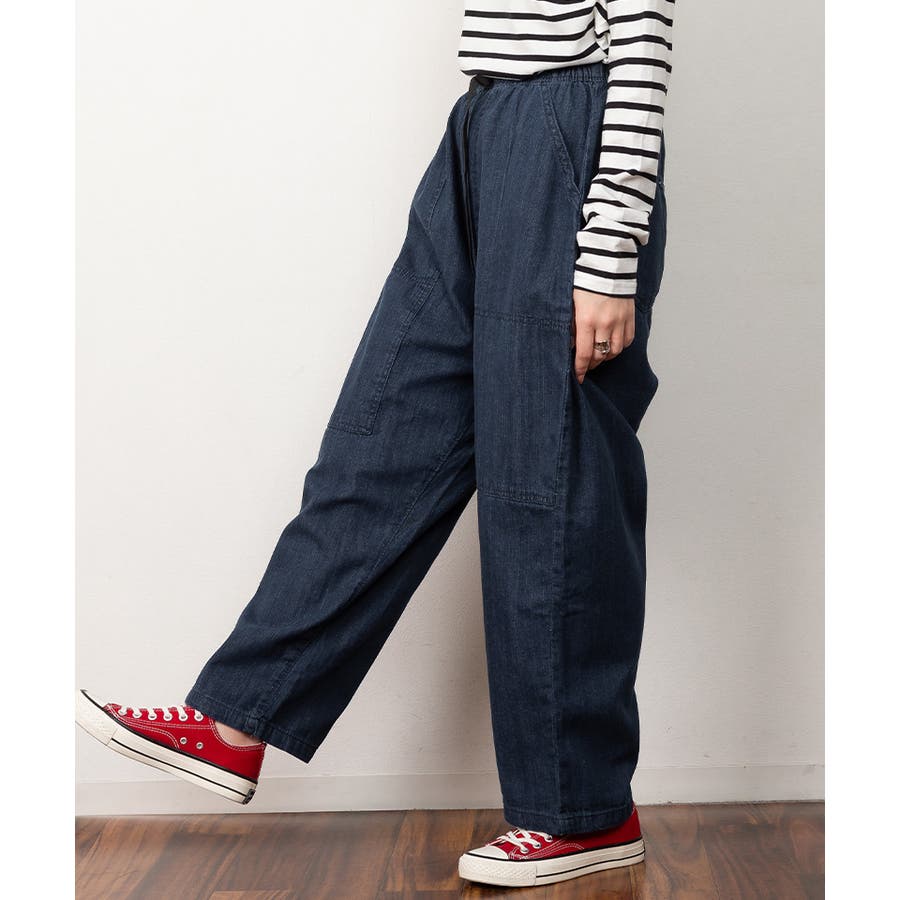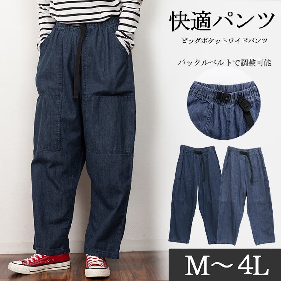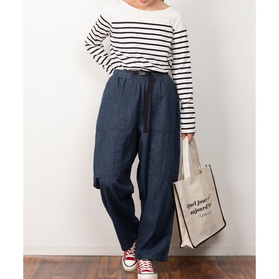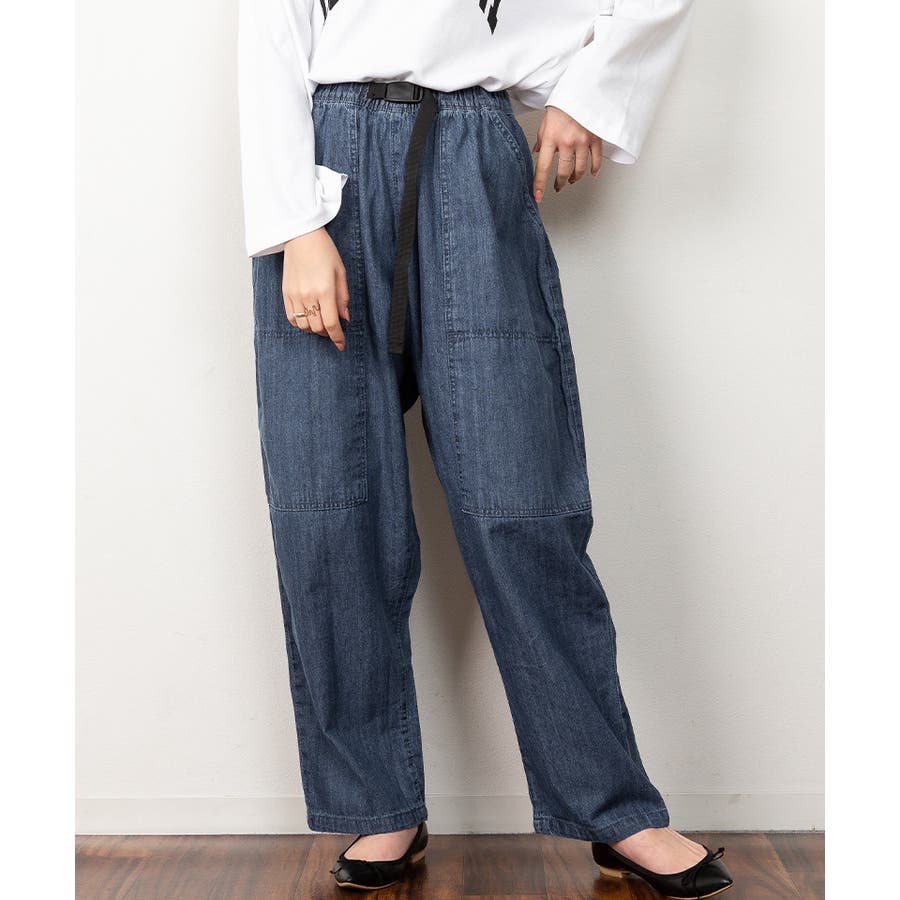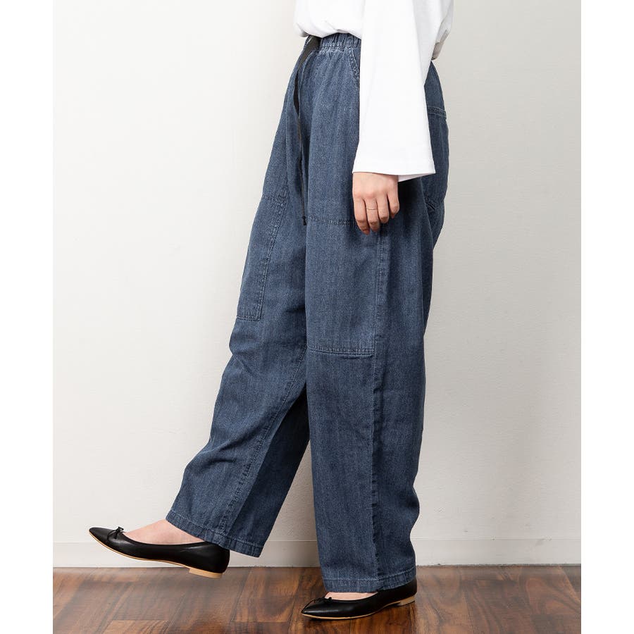 ビッグポケットがアクセントになったデニムワイドパンツ。