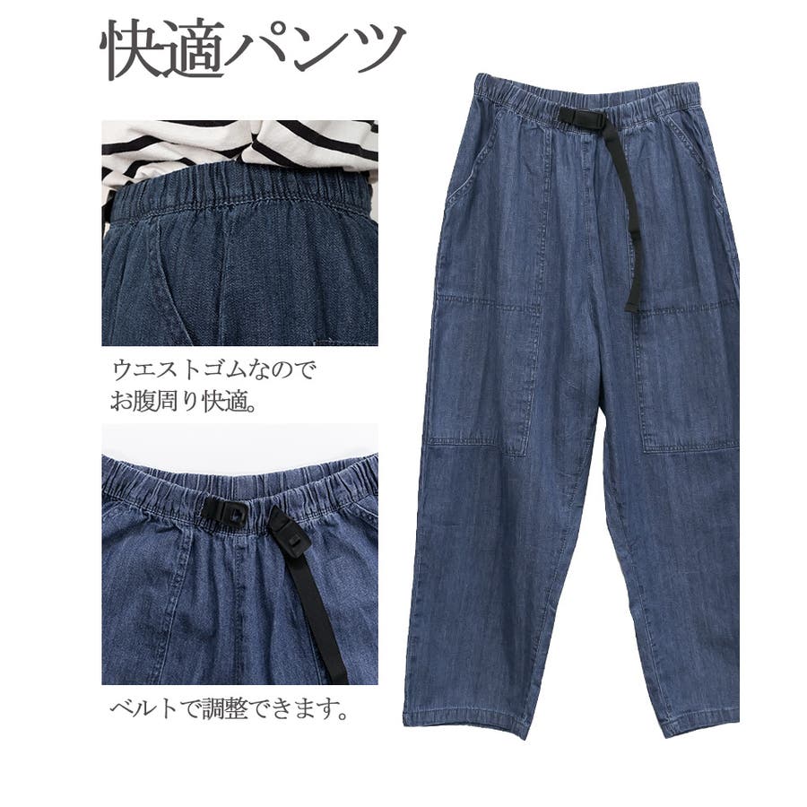 ベルト調節可能なウエストゴムで快適な履き心地。