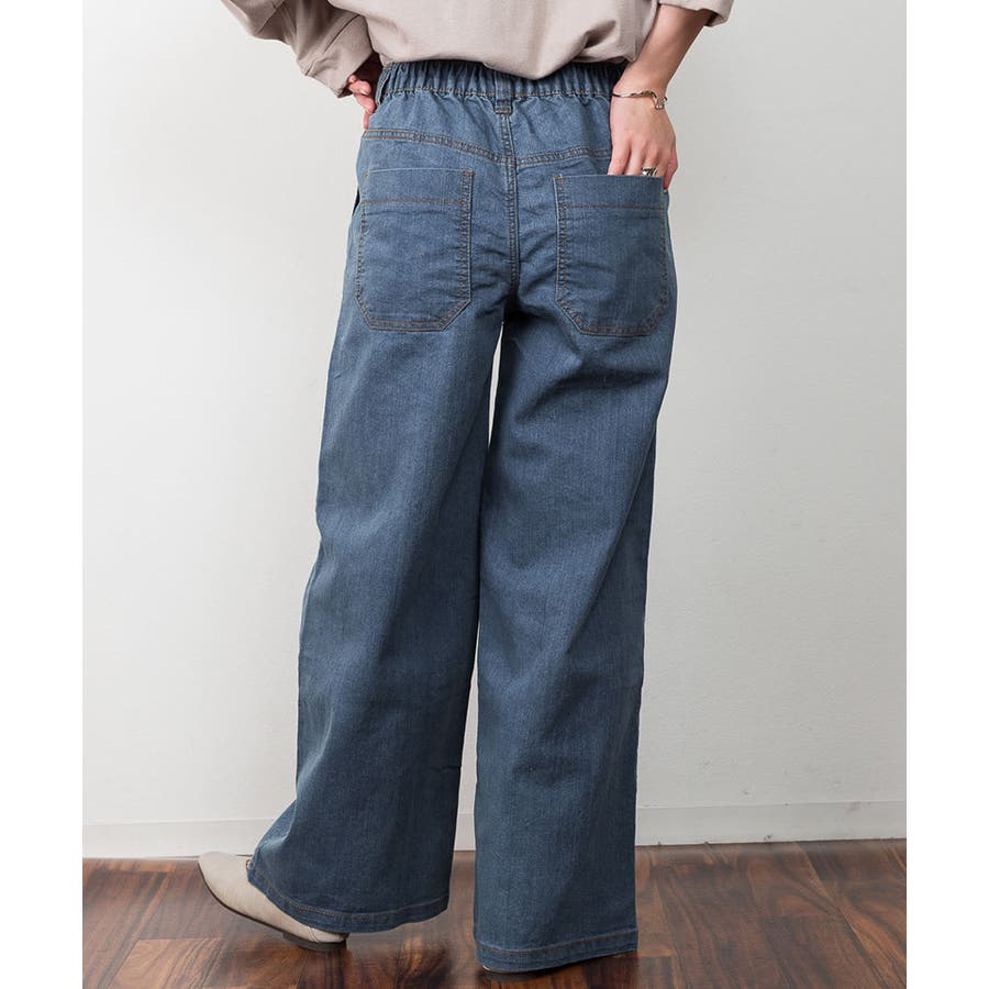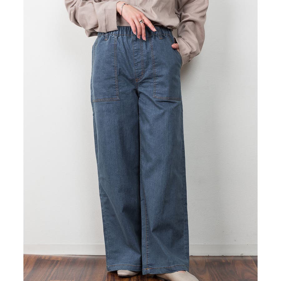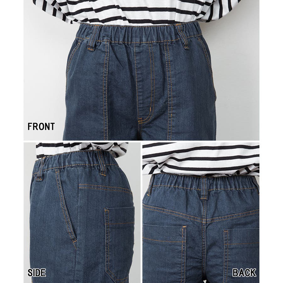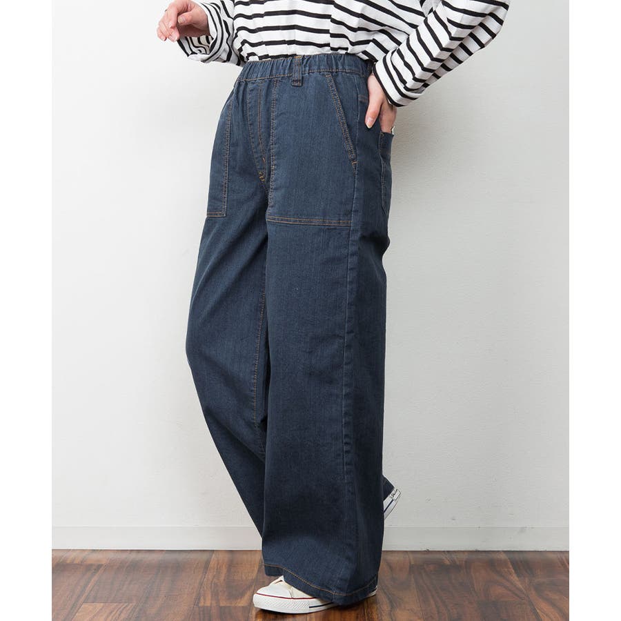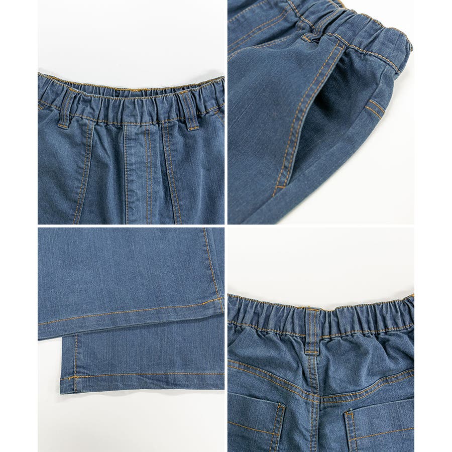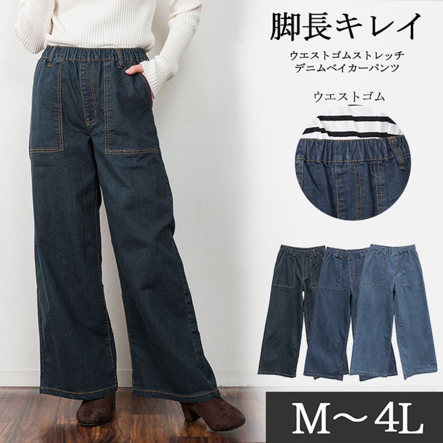 ウエストゴム+ストレッチ素材が履きやすいデニムベイカーパンツ。
