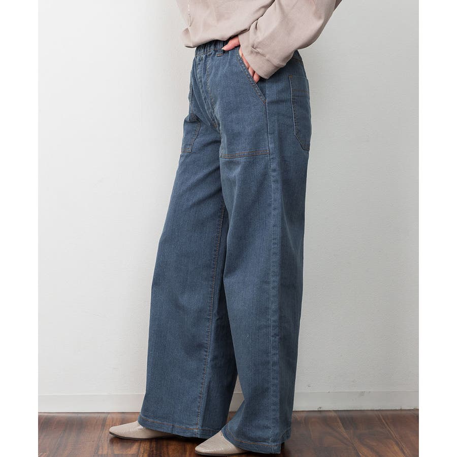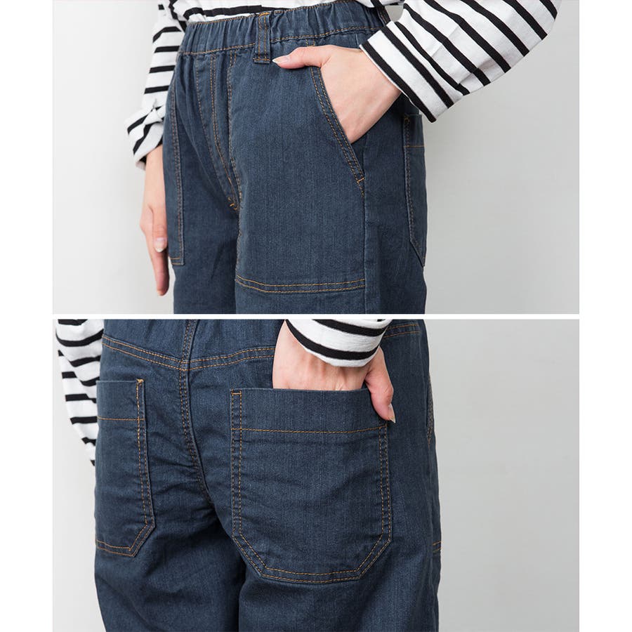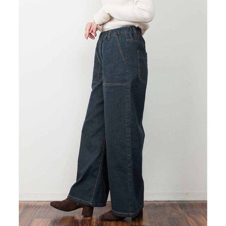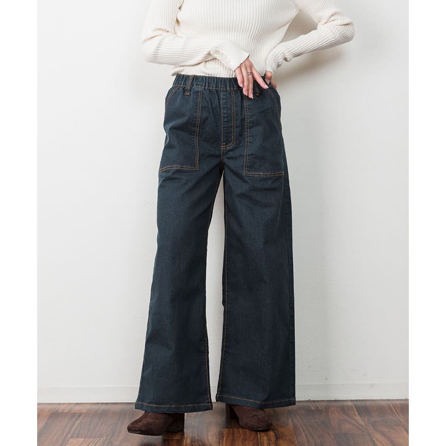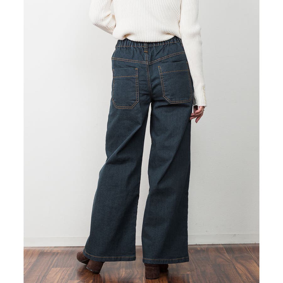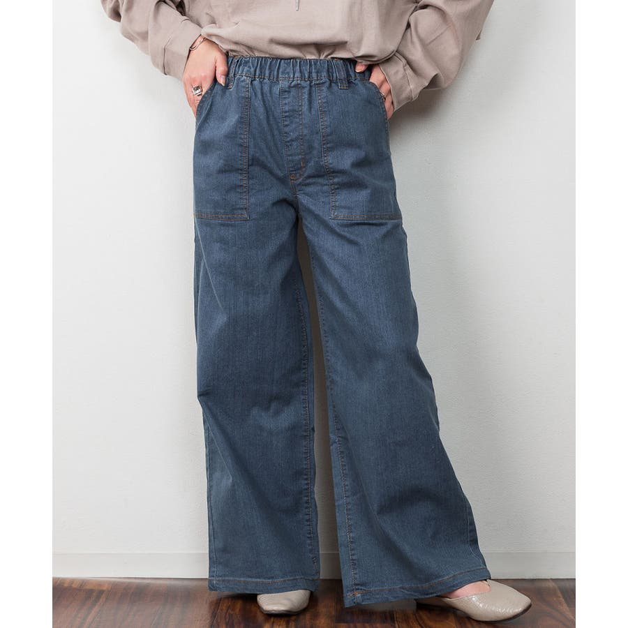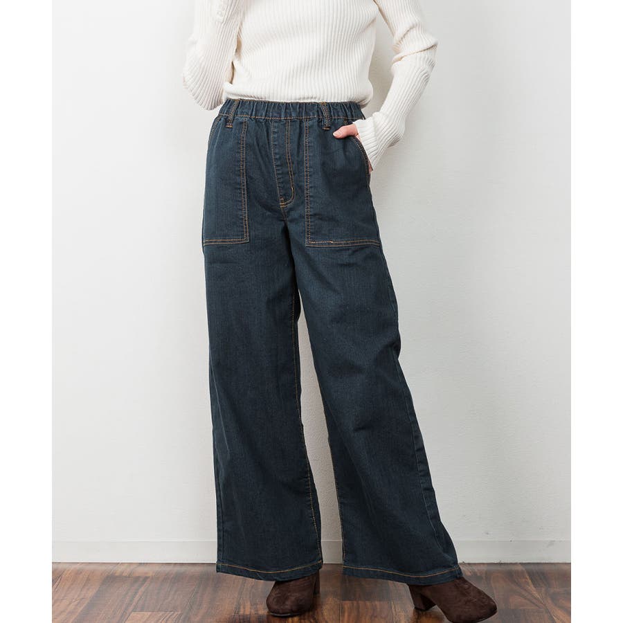ウエストゴム+ストレッチ素材が履きやすいデニムベイカーパンツ。
