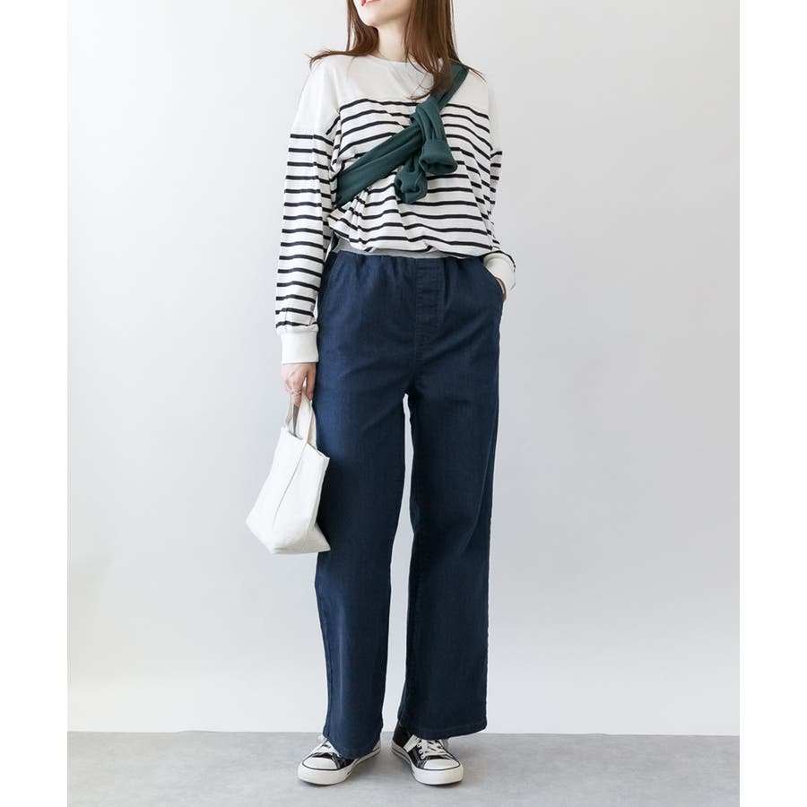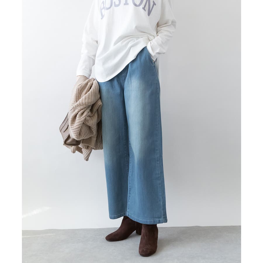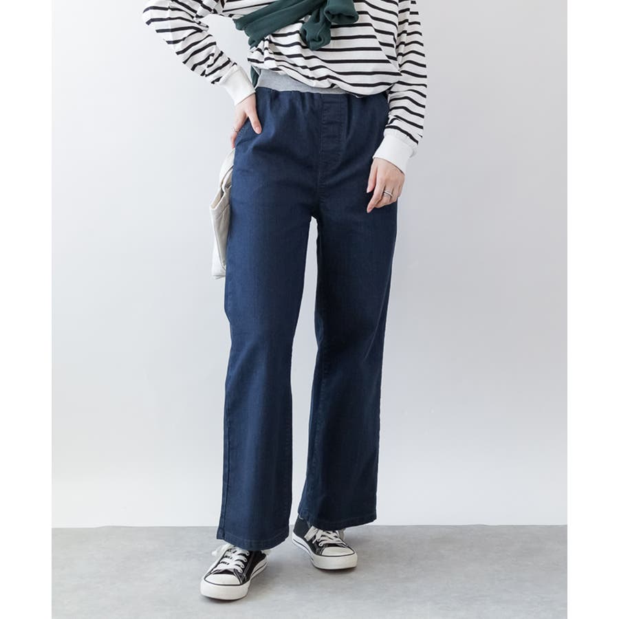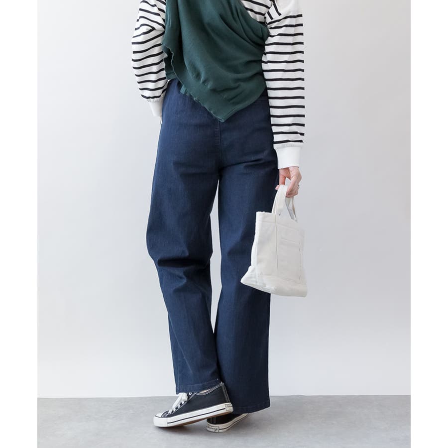 ウエストリブワイドストレートデニムパンツ