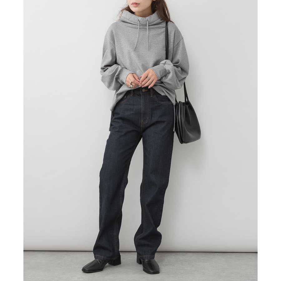 秋冬には、タートルネックセーターやローゲージニット、フードパーカーと合わせても◎