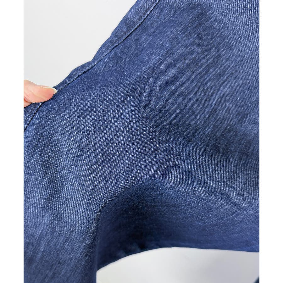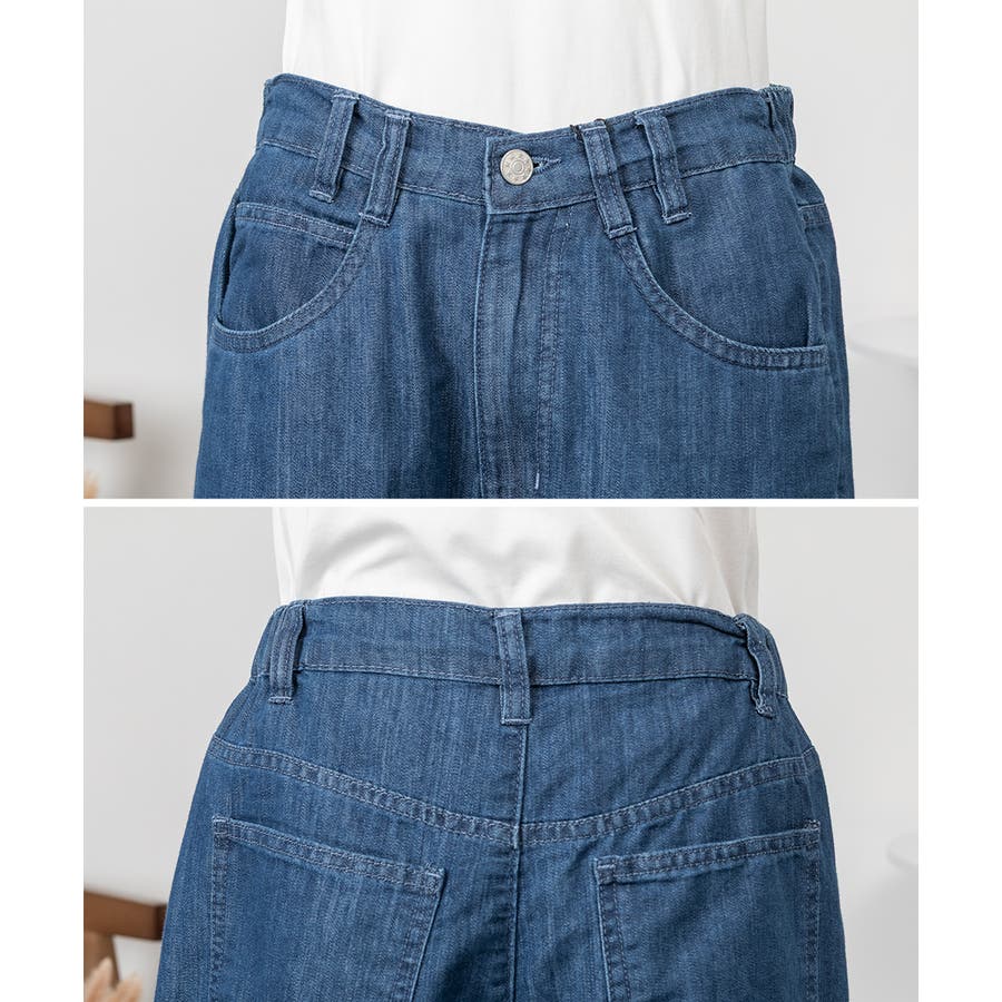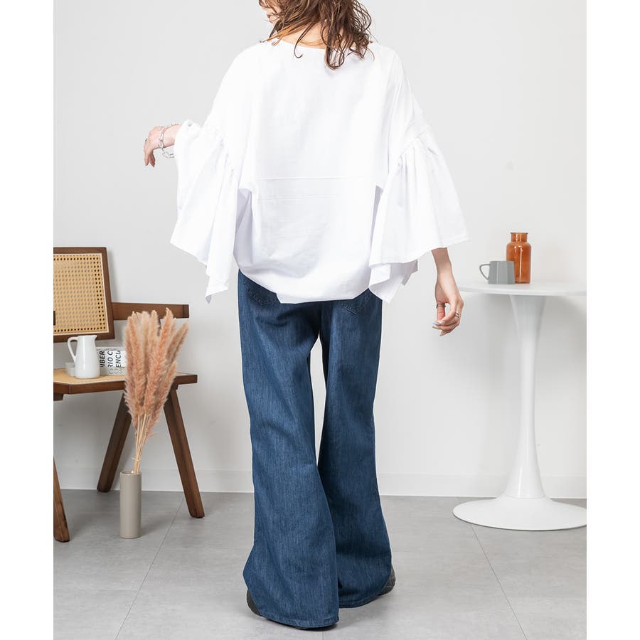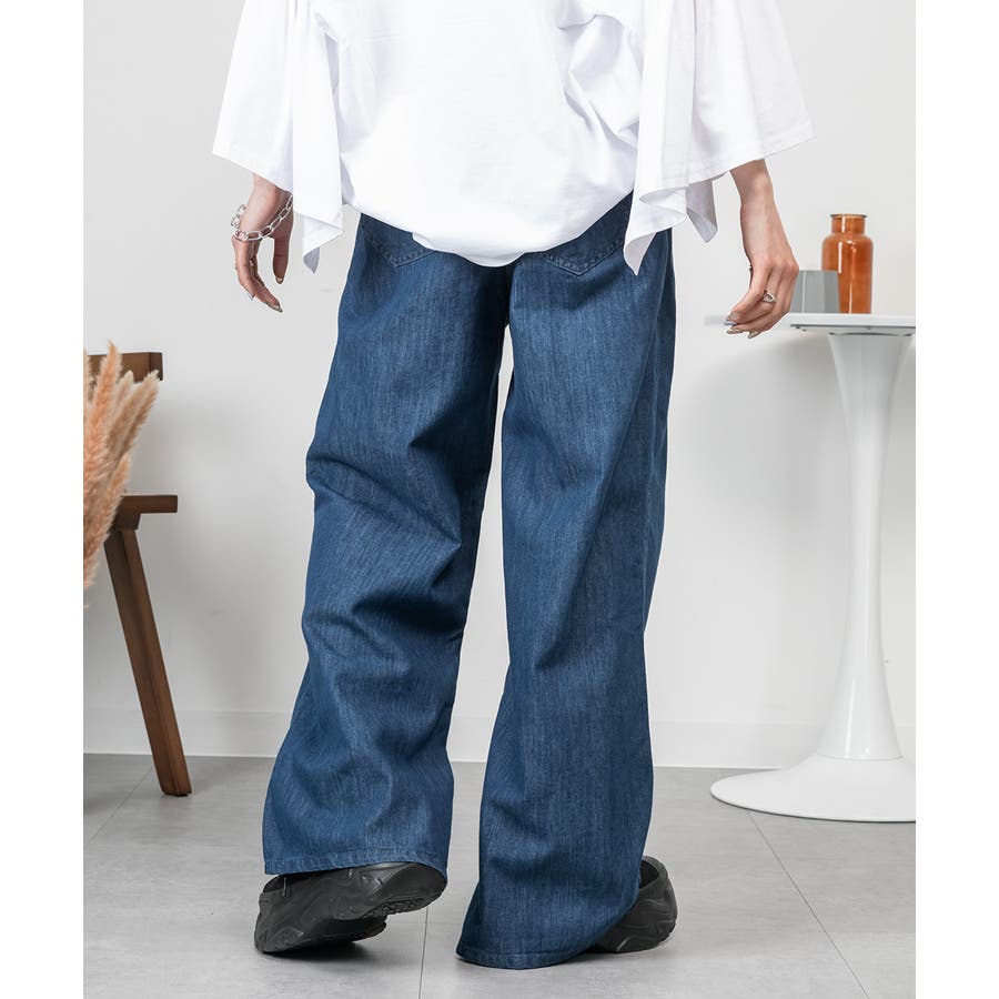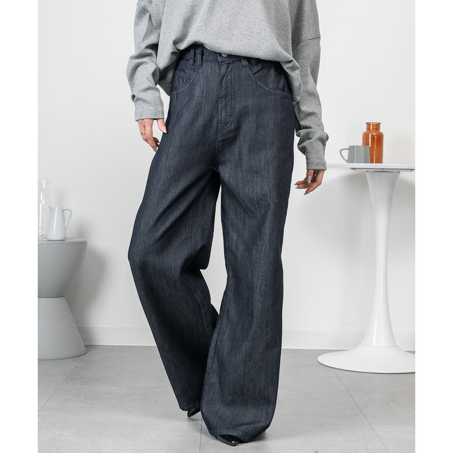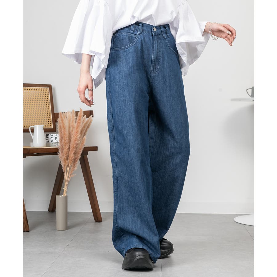 軽やかな薄手デニムが生む美しいドレープと、ワイドフレアの動きが女性らしさを引き立てる一本。
