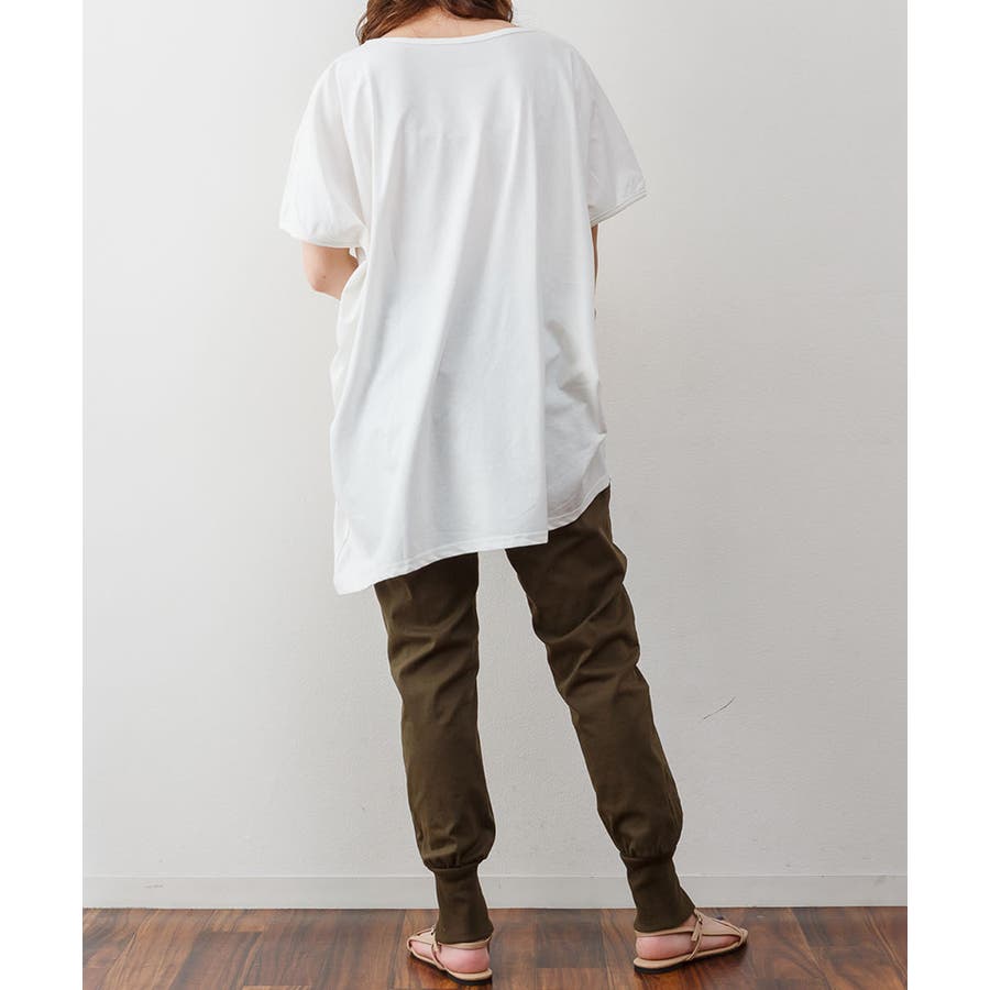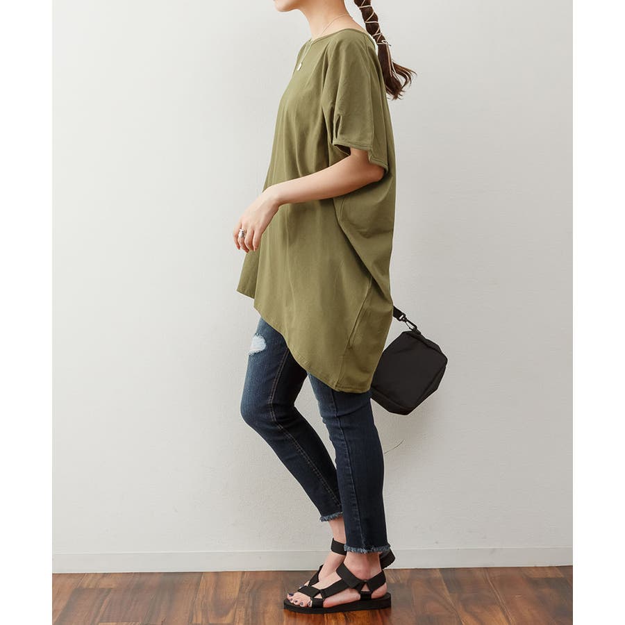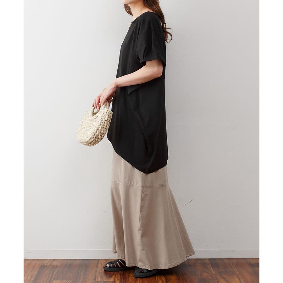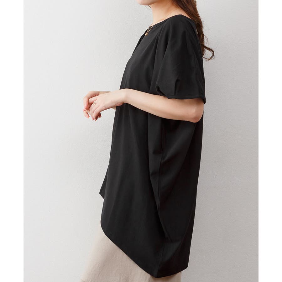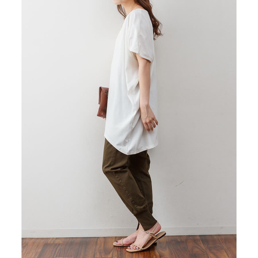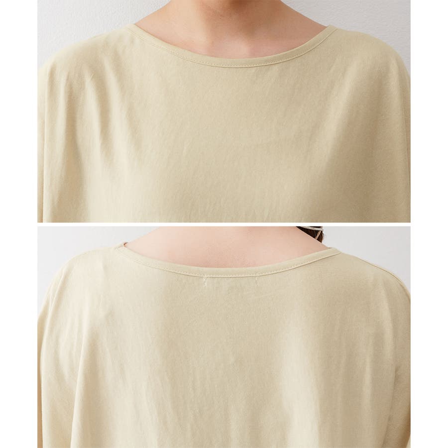 首回りは、シンプルなOネックで、普段の着こなしにも合わせやすい。