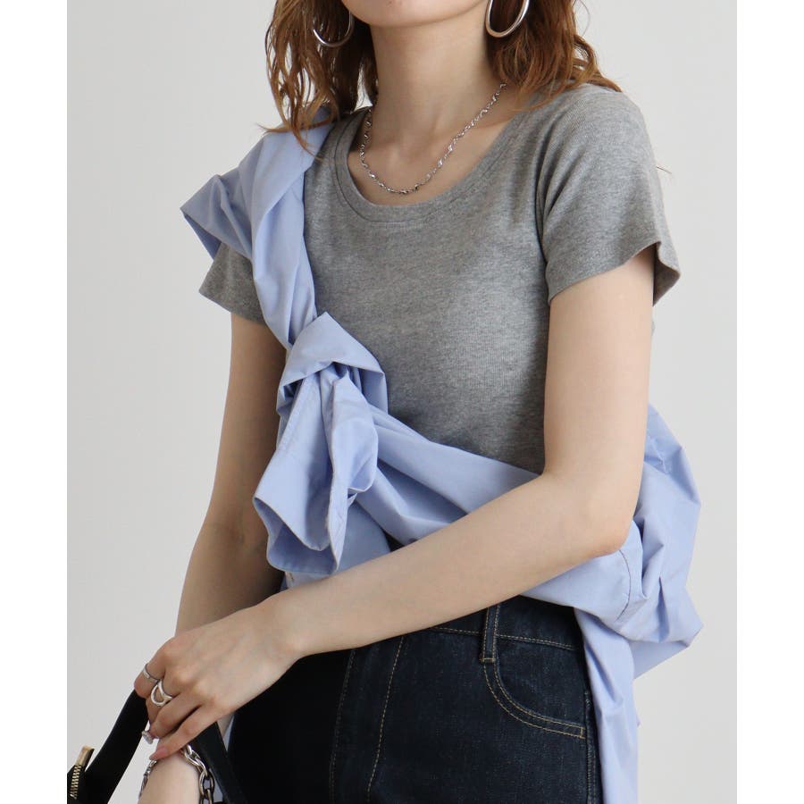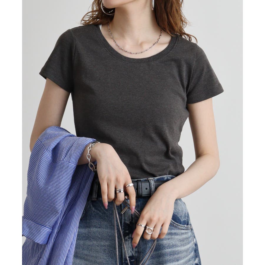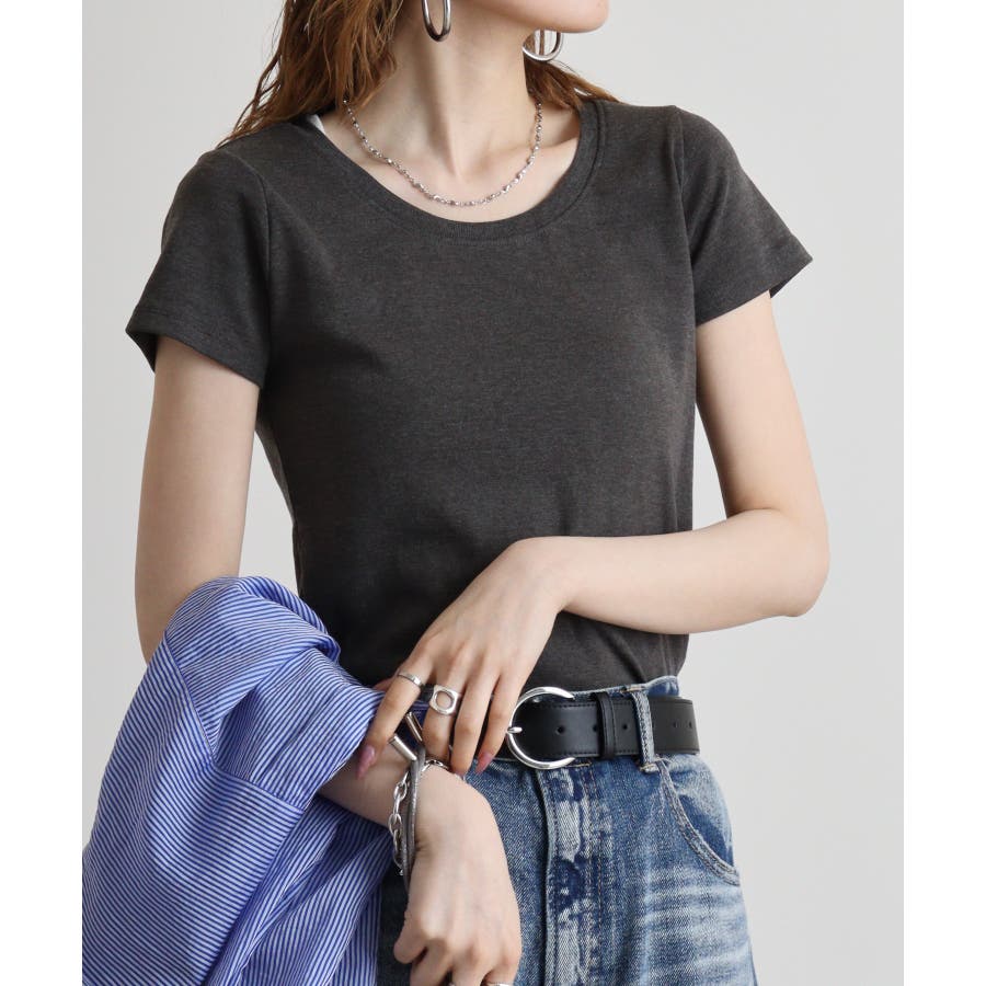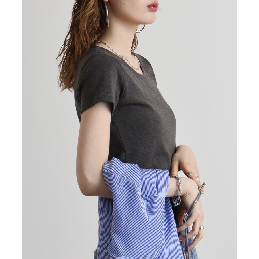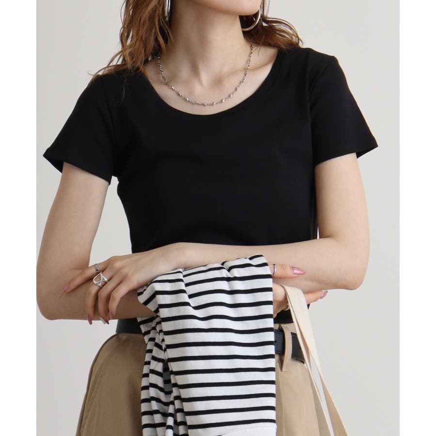 半袖 無地 WK 0068 カジュアル Uネック シンプル オーバーサイズ コットン クルーネック(丸首) デコルテ見せ 薄手 綿 流行 春 春物 春服 春夏 夏 夏物 夏服 新作 新着 韓国 プチプラ