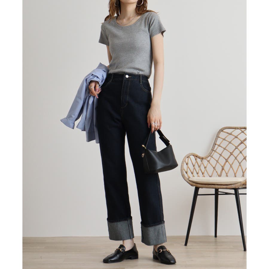どんなボトムスとも合うシンプルなデザインです。