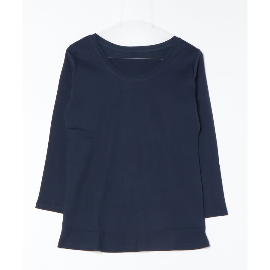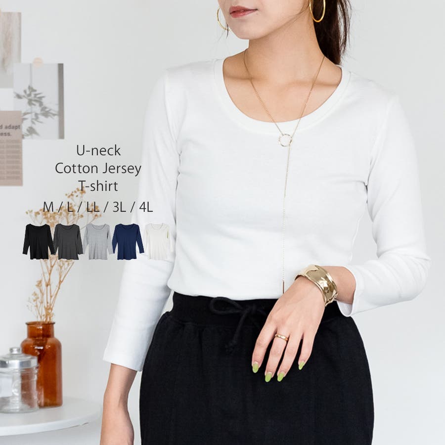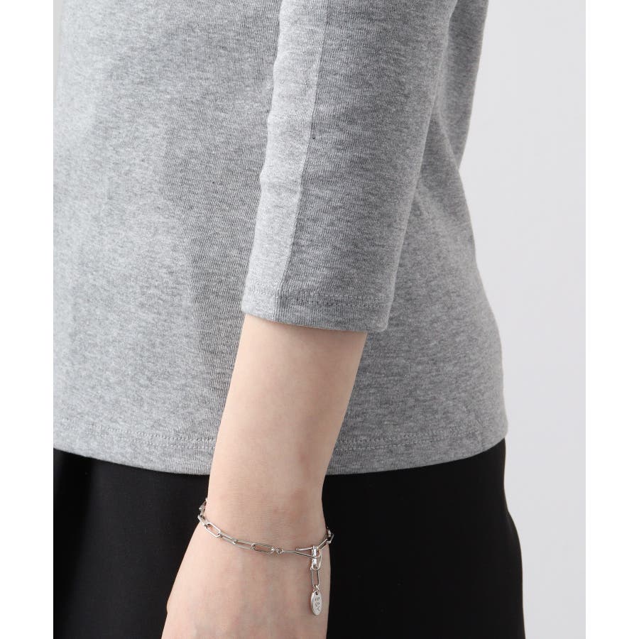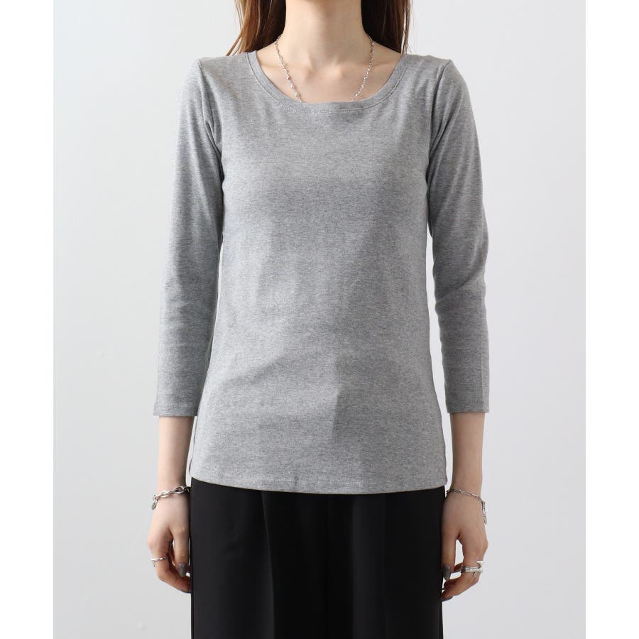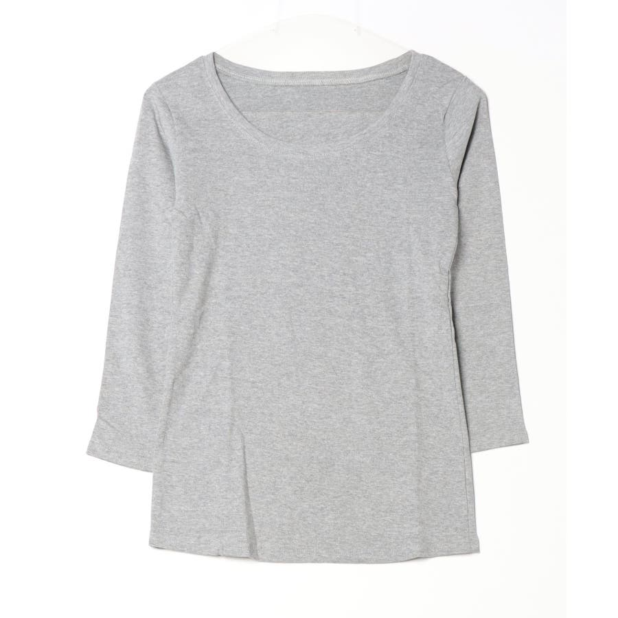 Uネック8分袖コットンフライスTシャツ 半端袖 カットソー