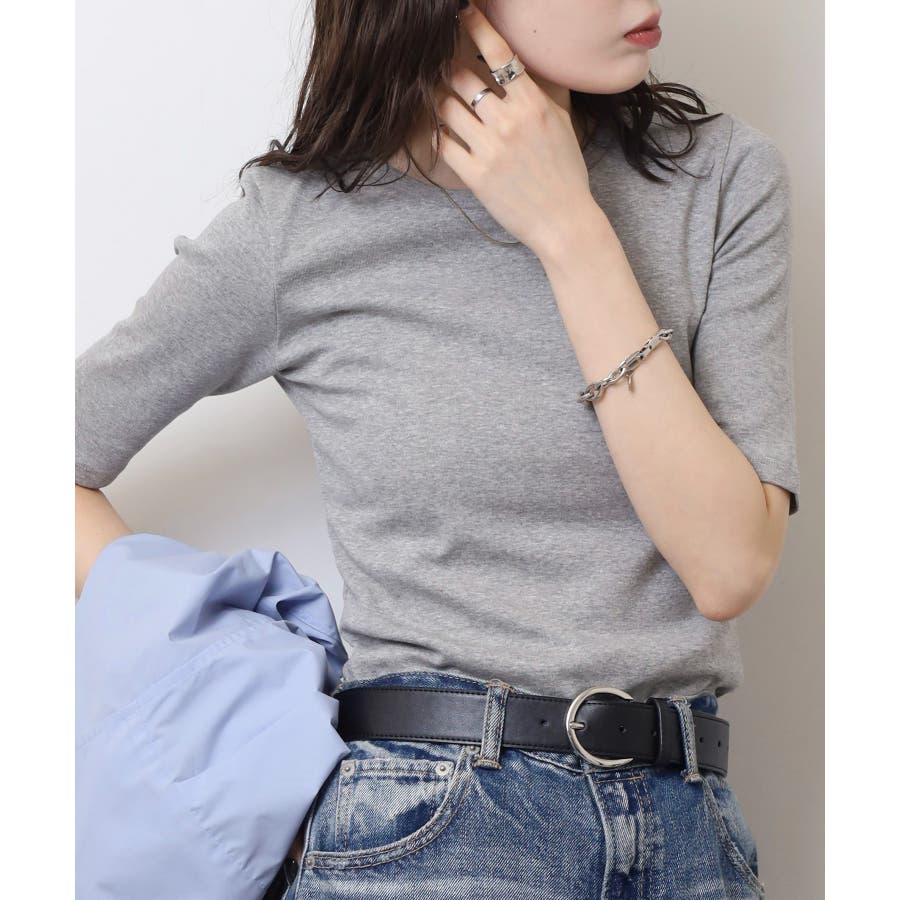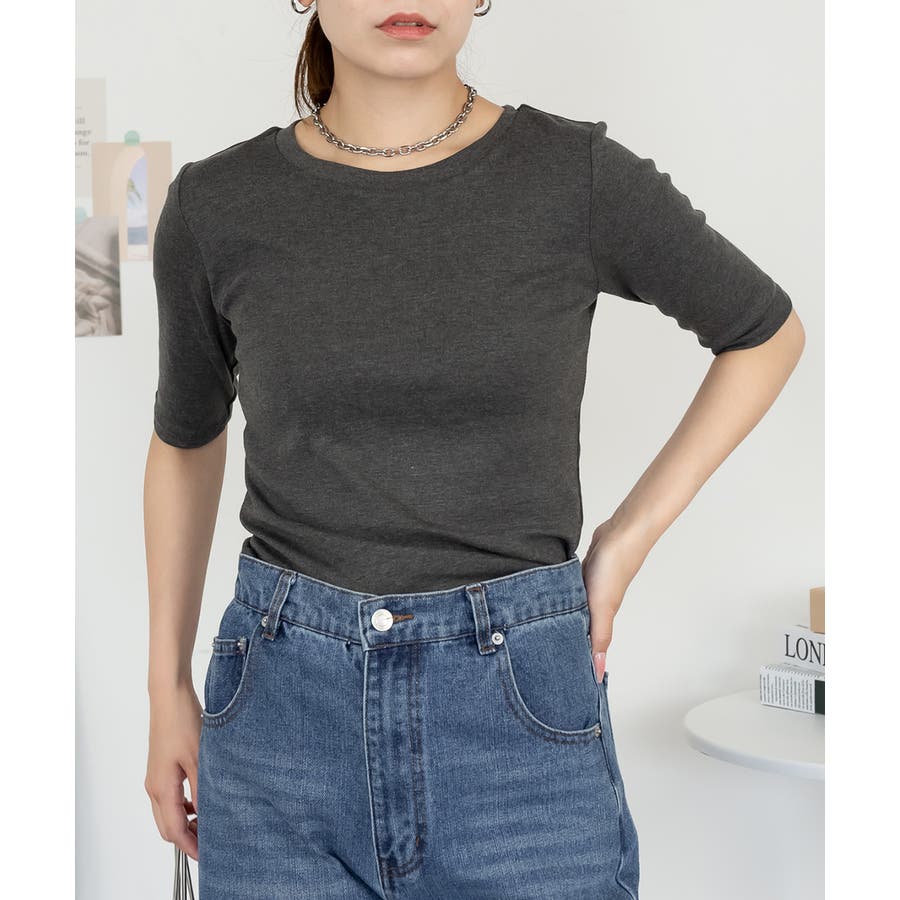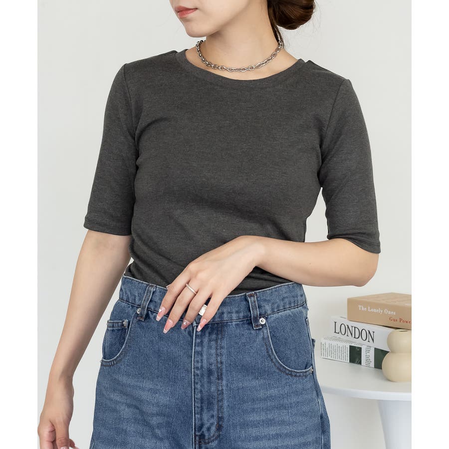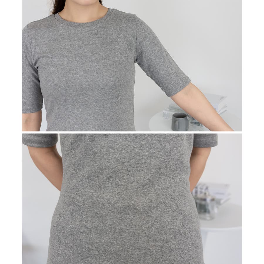 コットンフライス素材を使った5分袖カットソー。