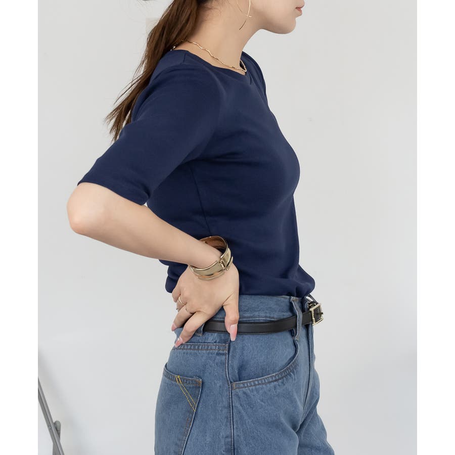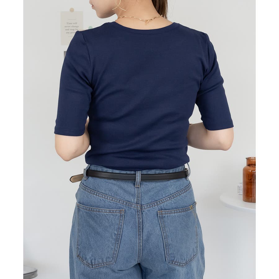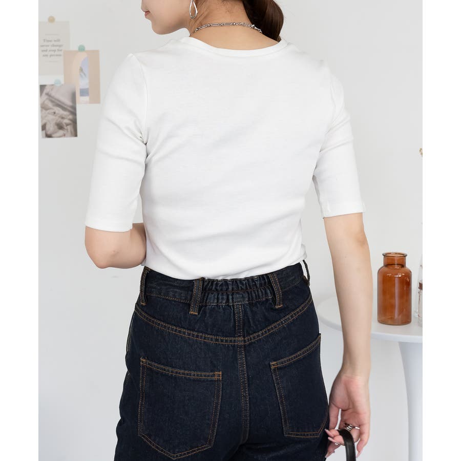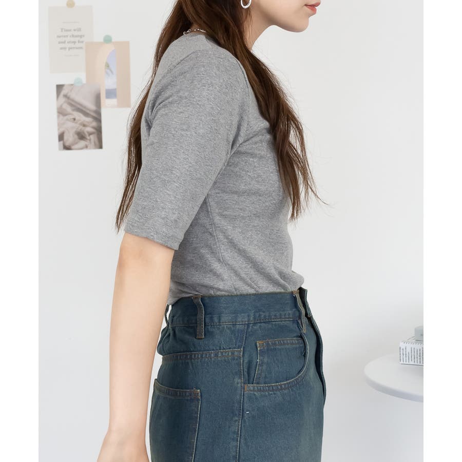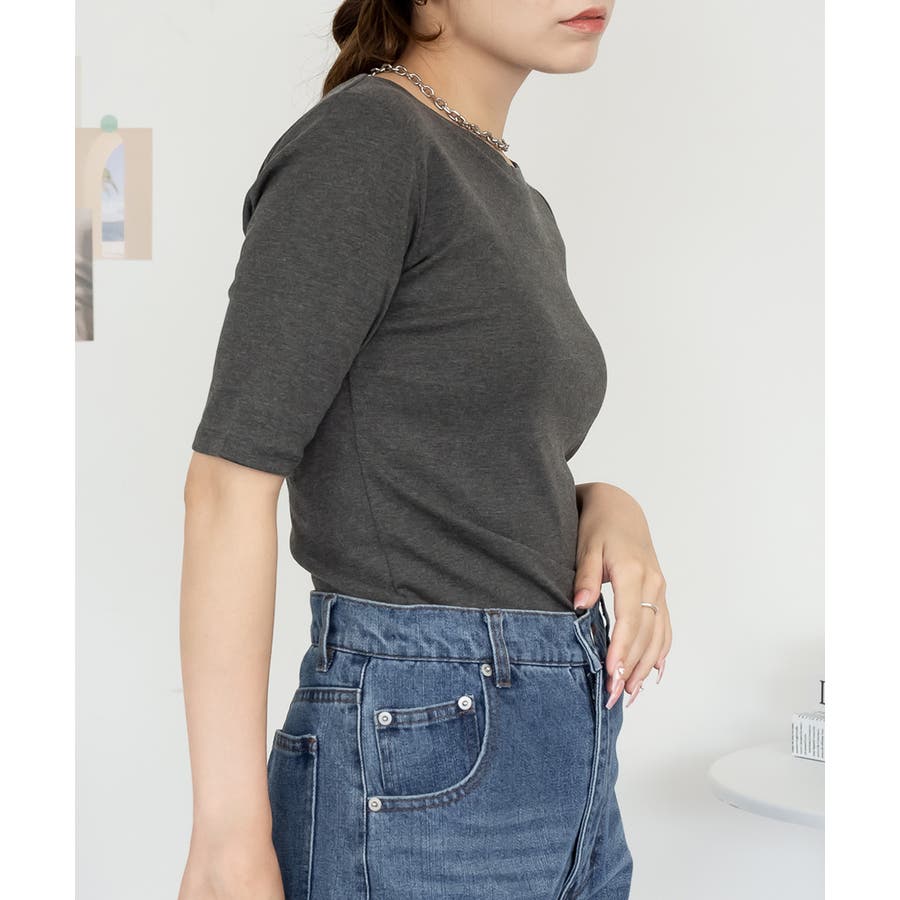 コットンフライス素材を使った5分袖カットソー。