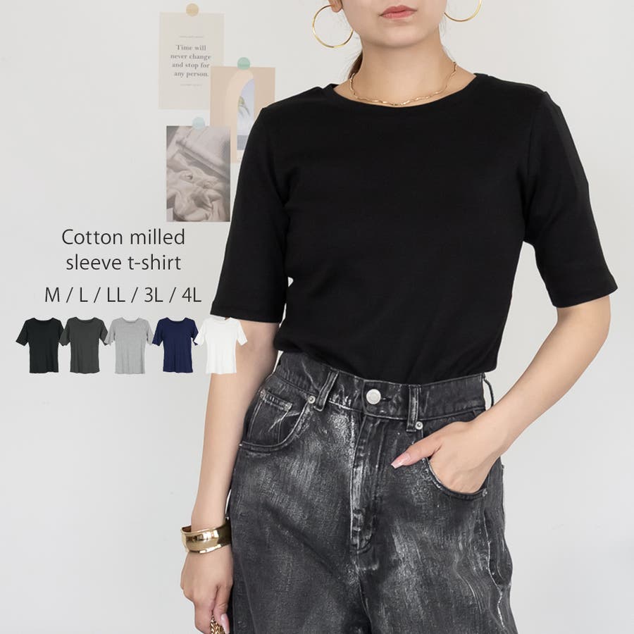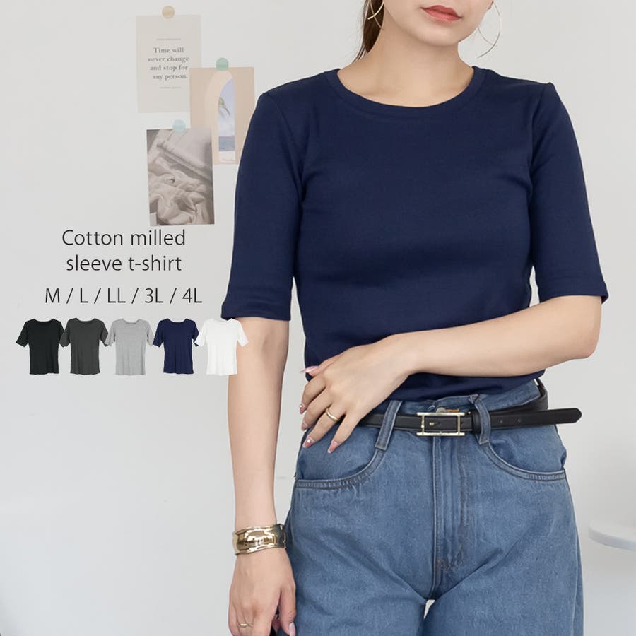 コットンフライス5分袖Tシャツ