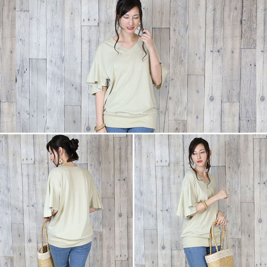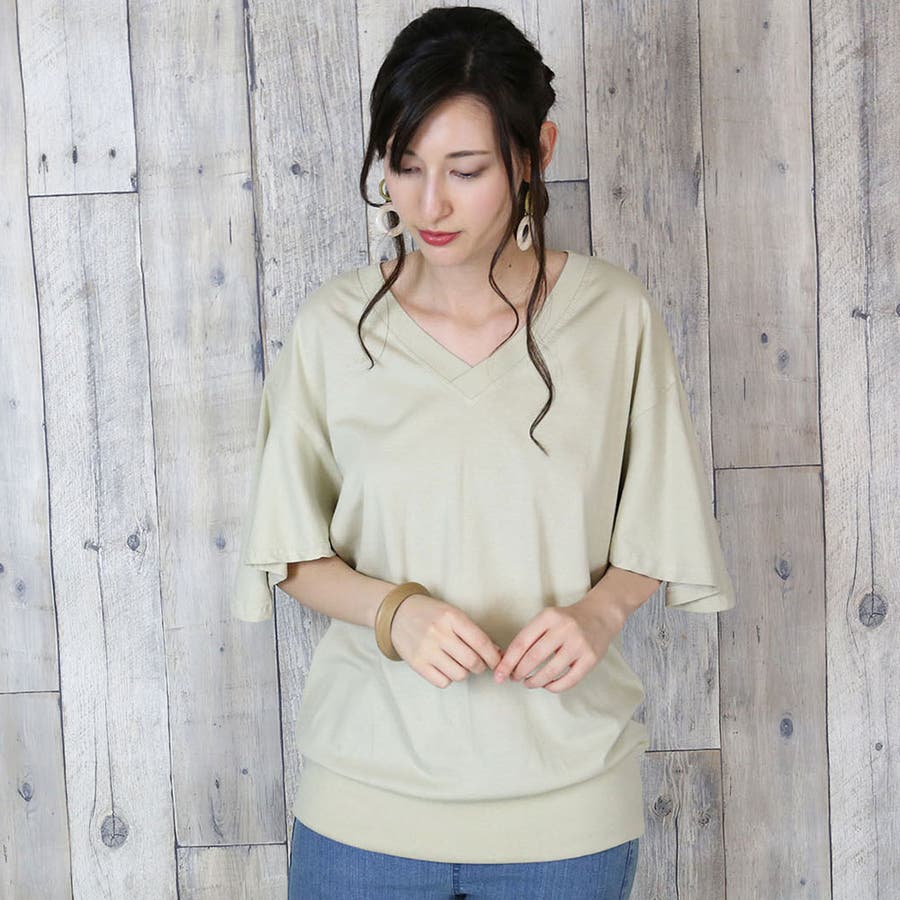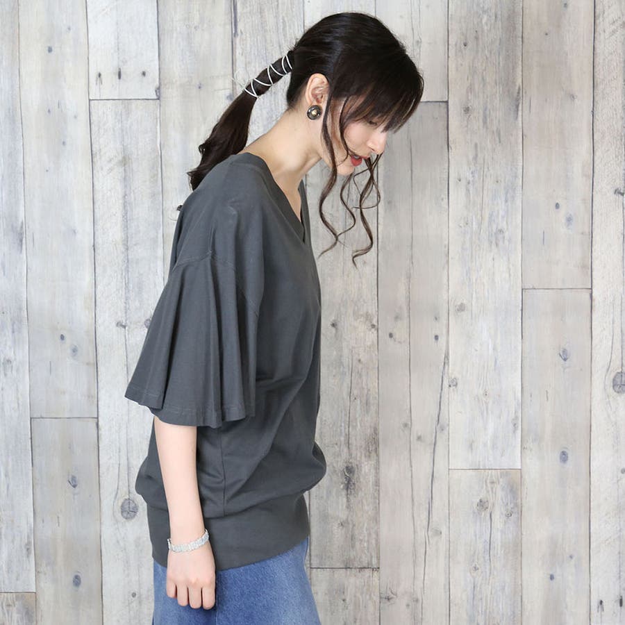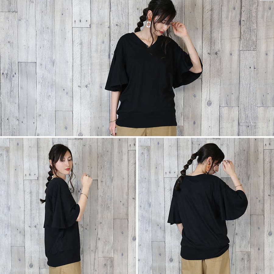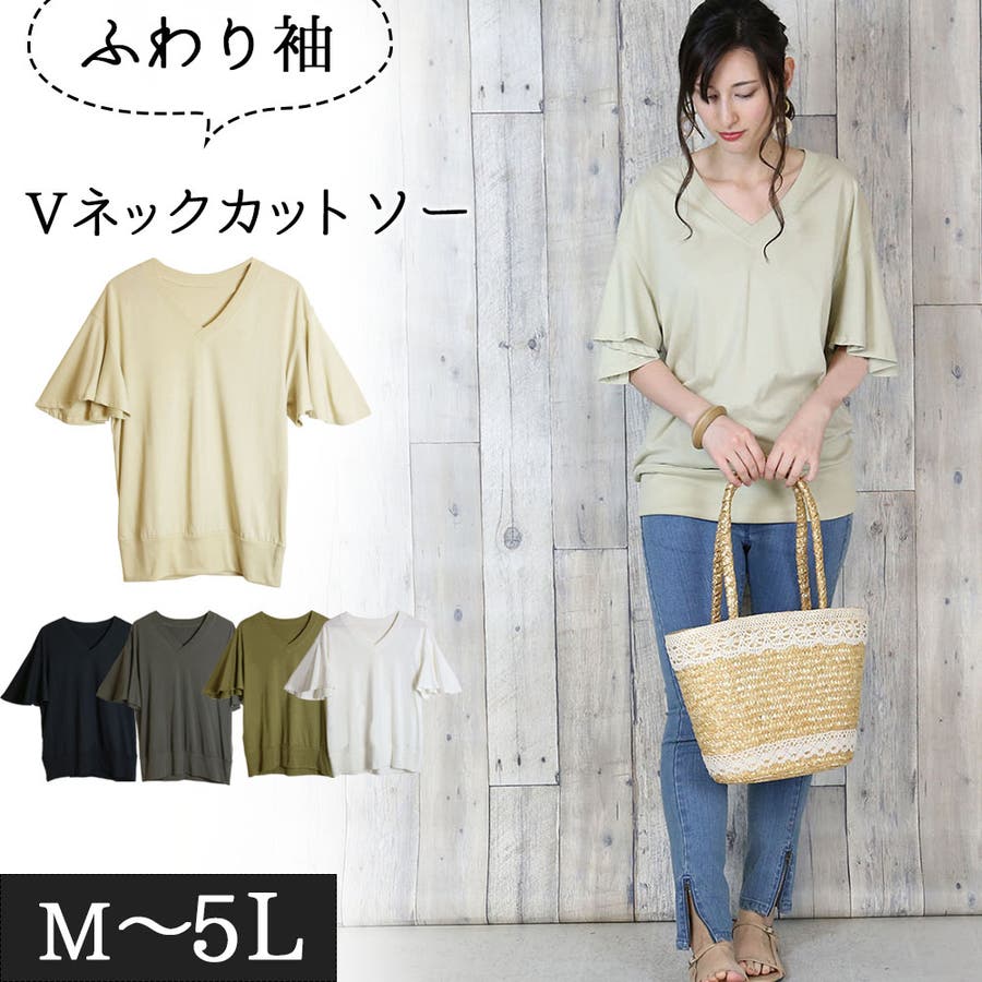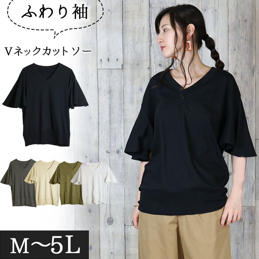 ボリュームフレア袖Vネックカットソー M/L/LL/3L/4L