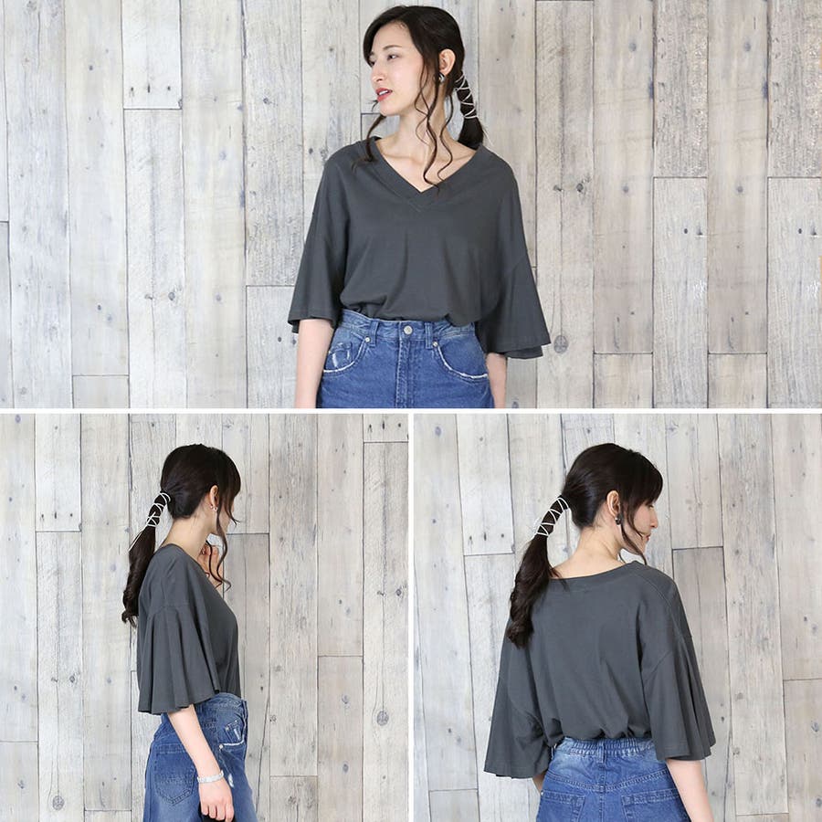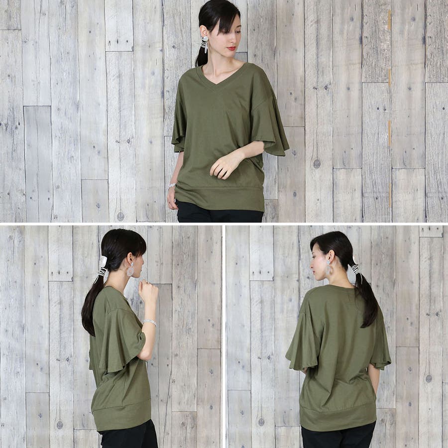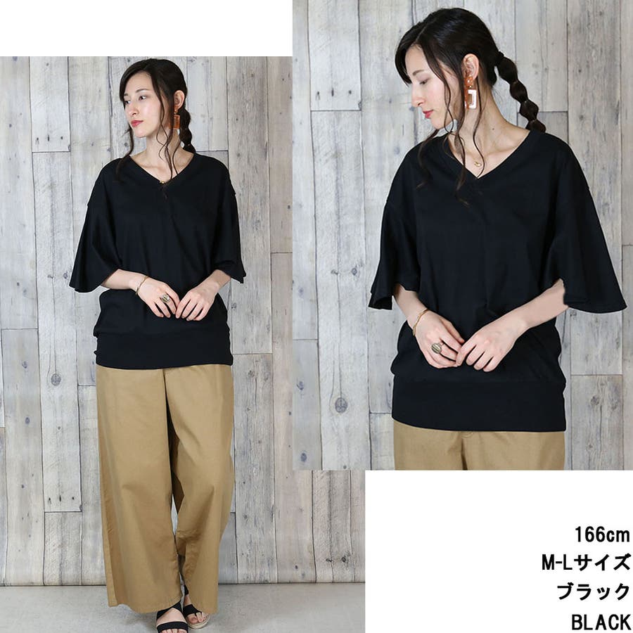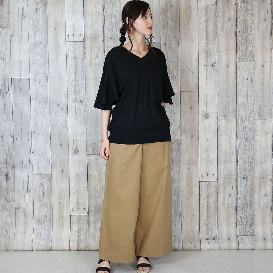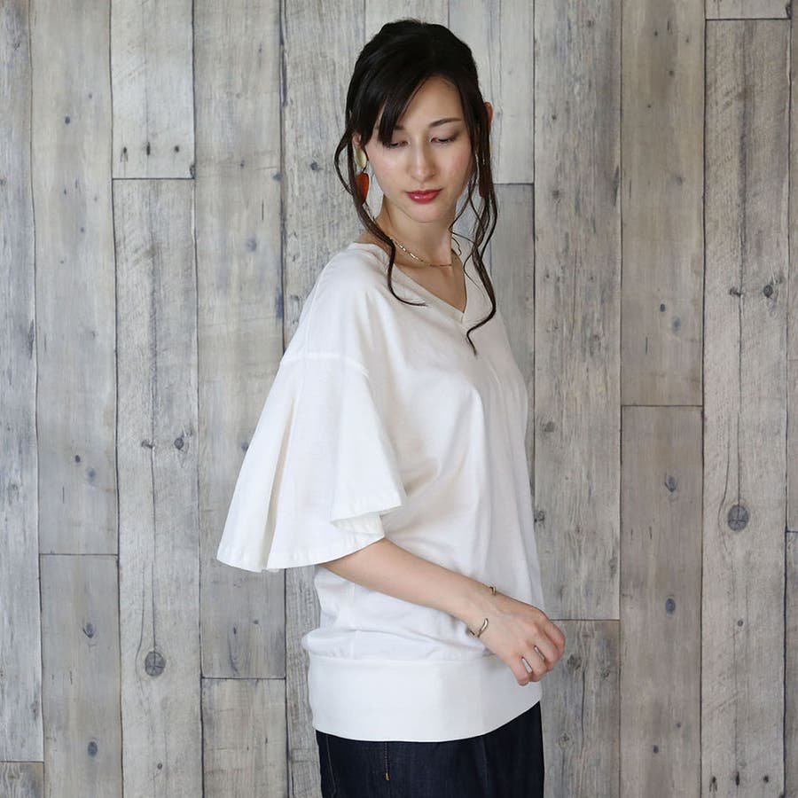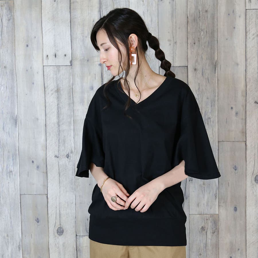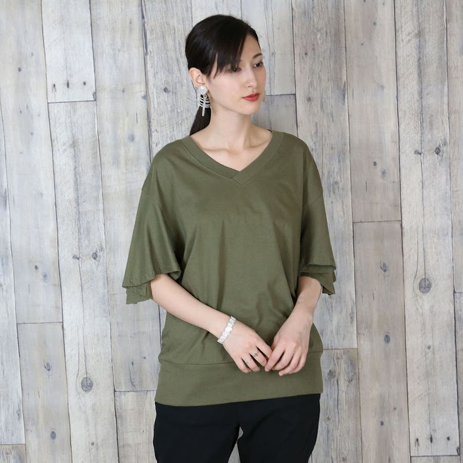ボリュームフレア袖Vネックカットソー M/L/LL/3L/4L