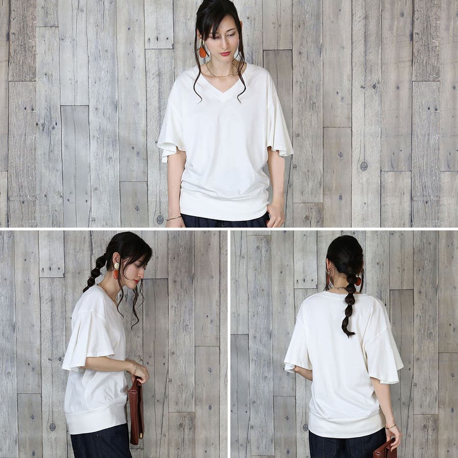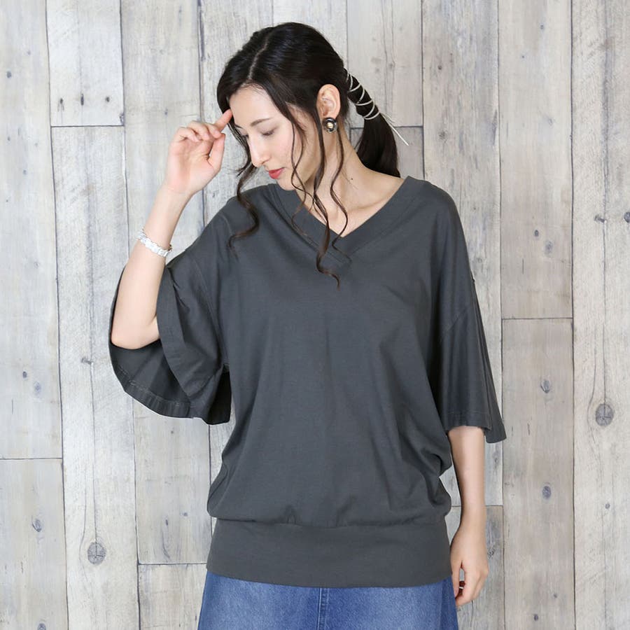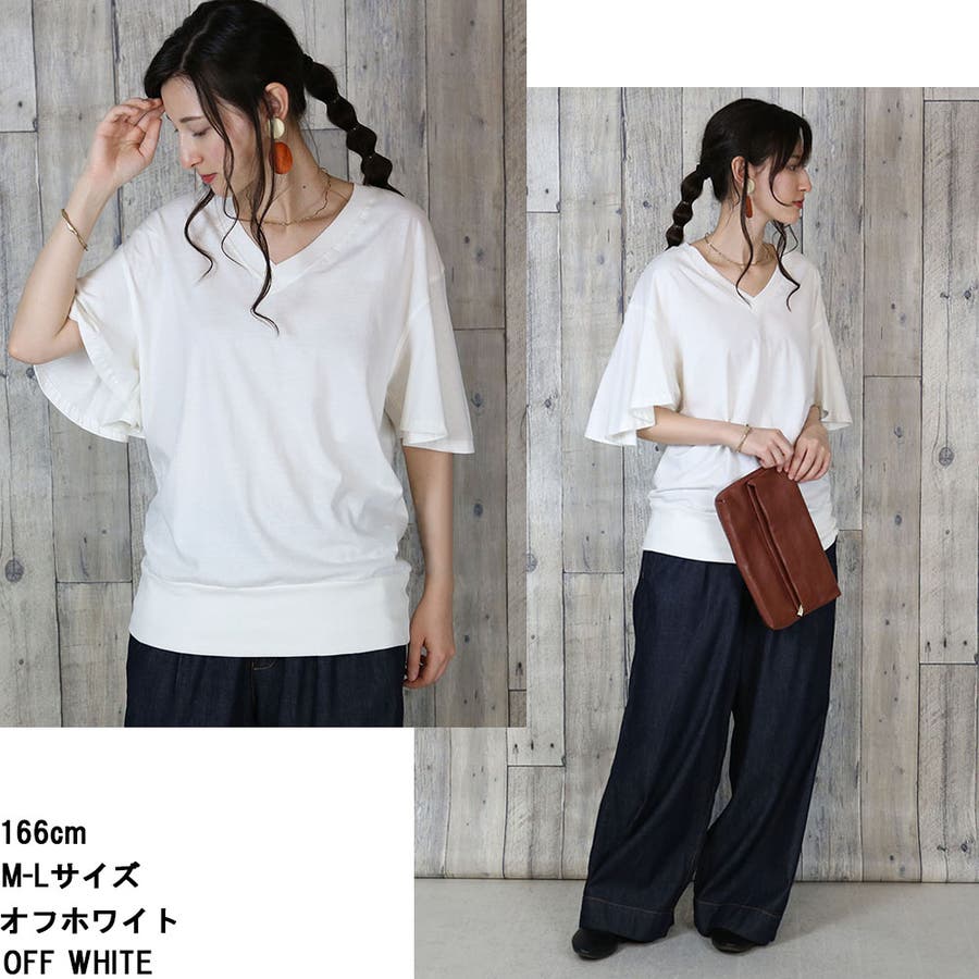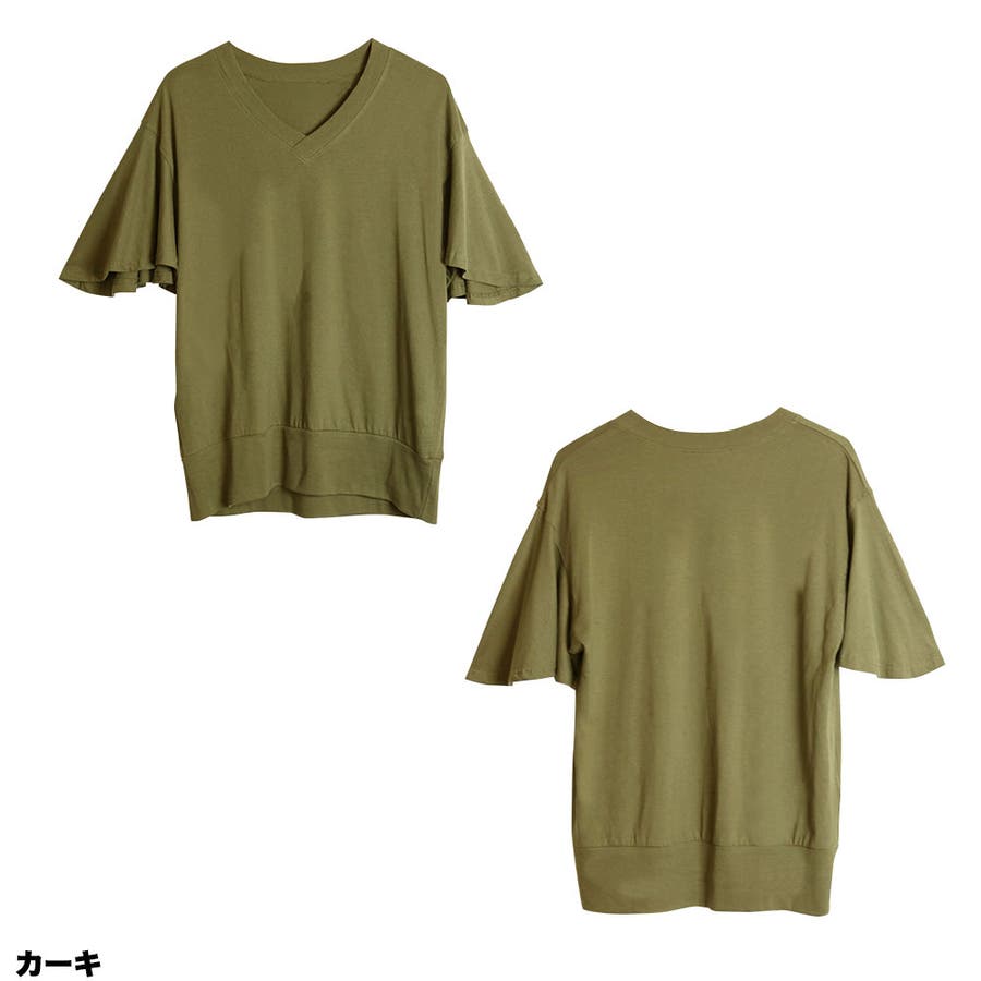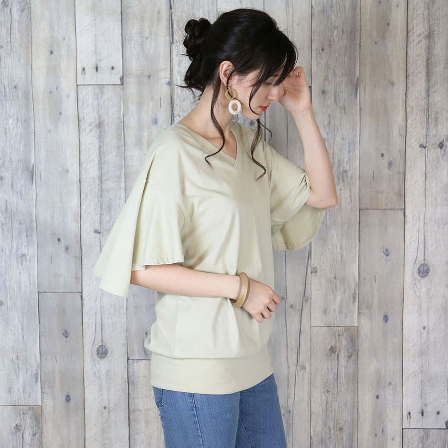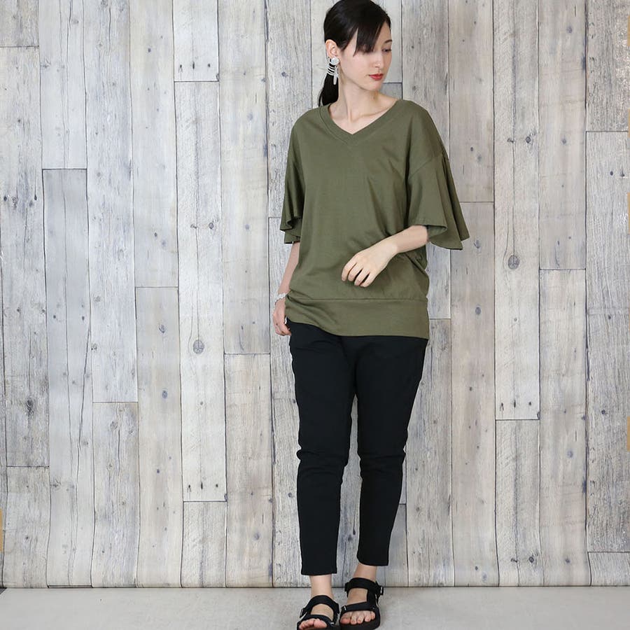 ボリュームフレア袖Vネックカットソー M/L/LL/3L/4L