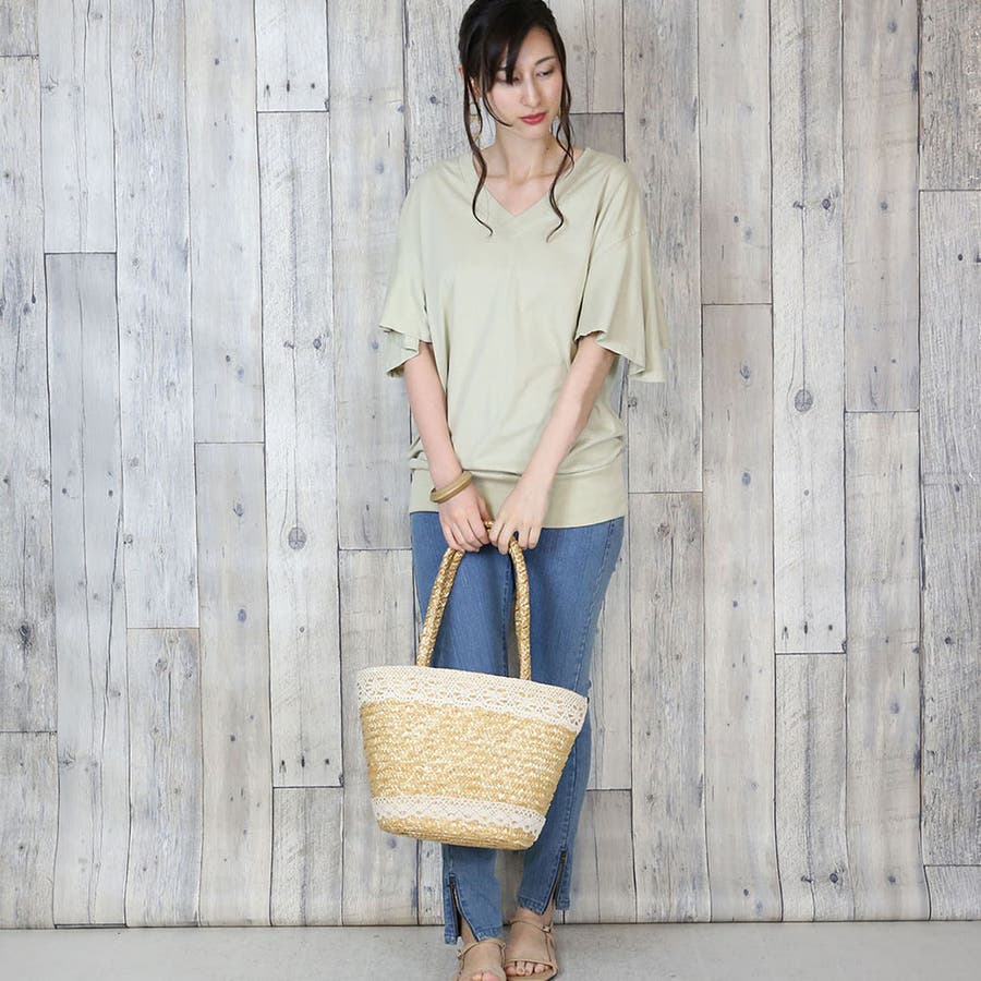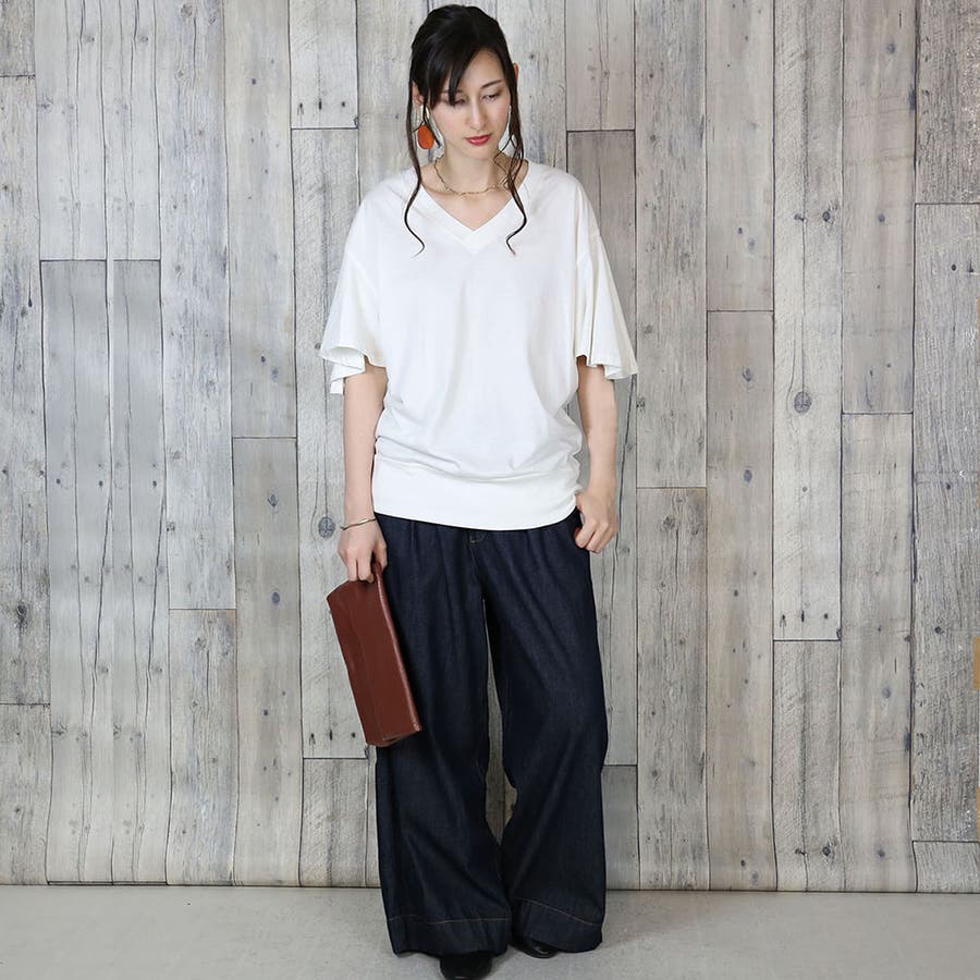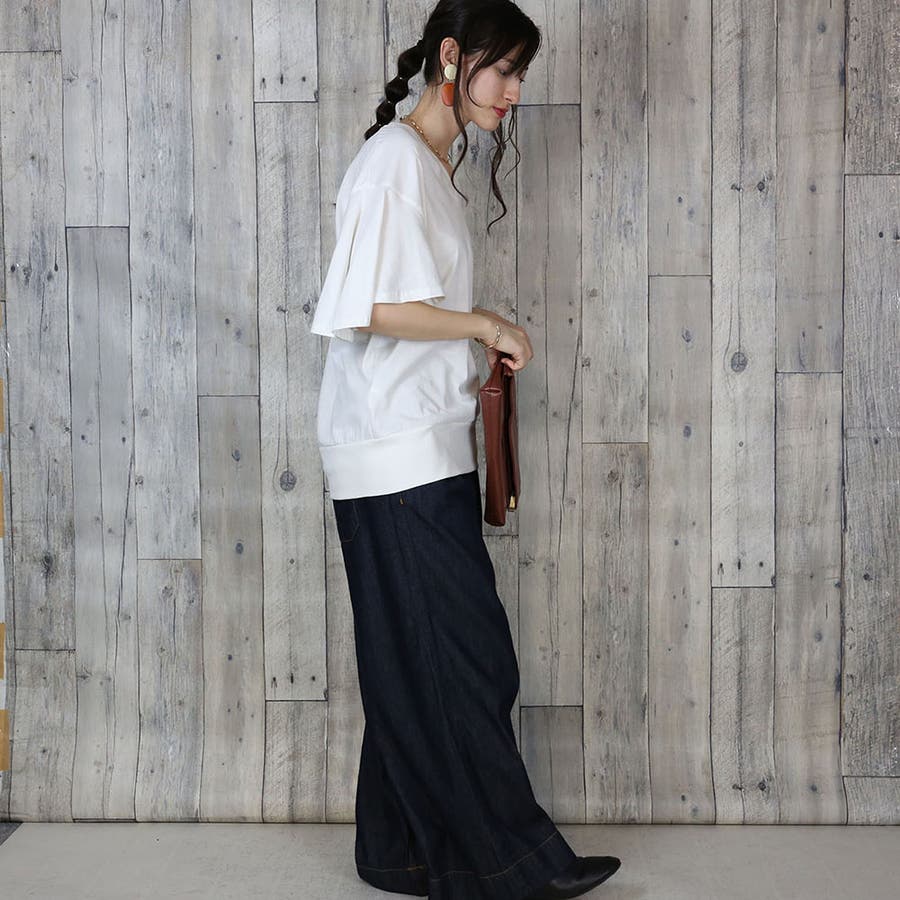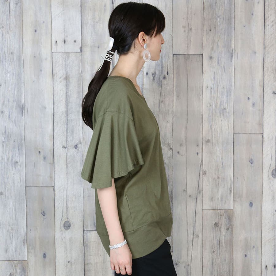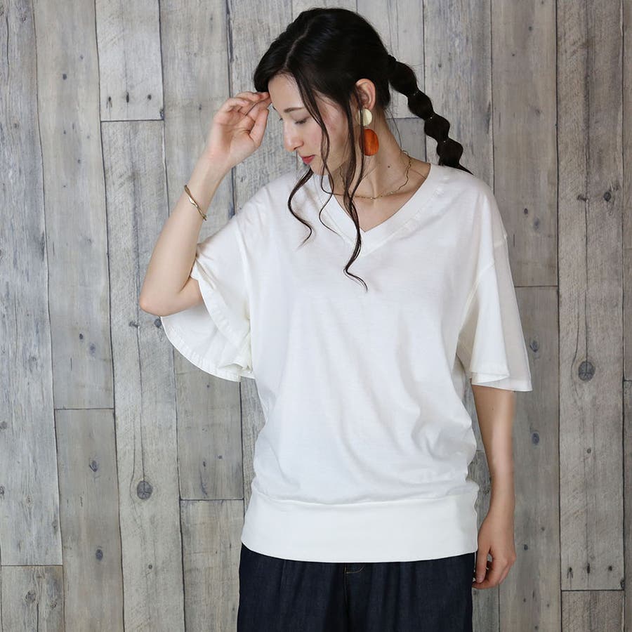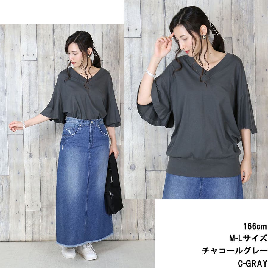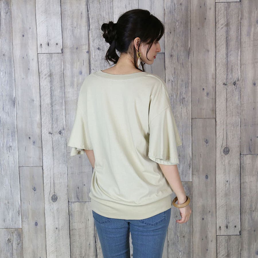 ボリュームフレア袖Vネックカットソー M/L/LL/3L/4L