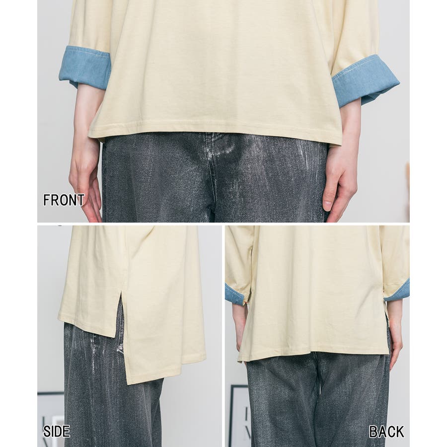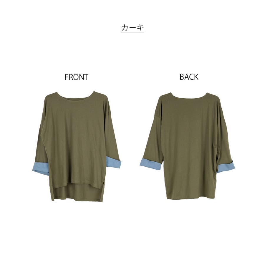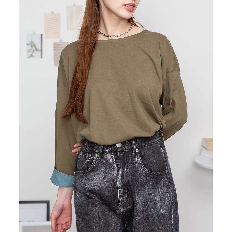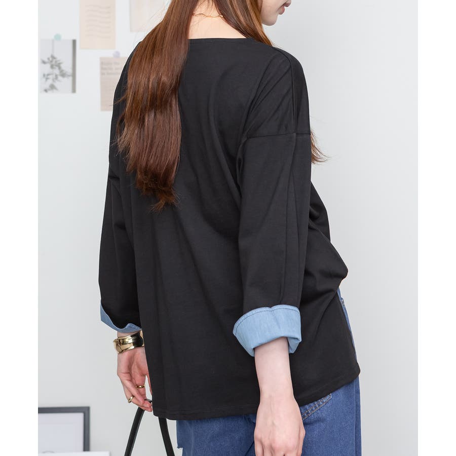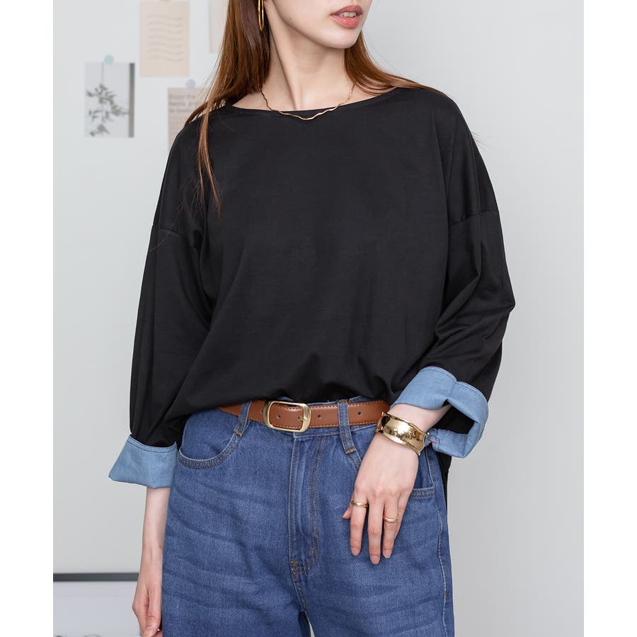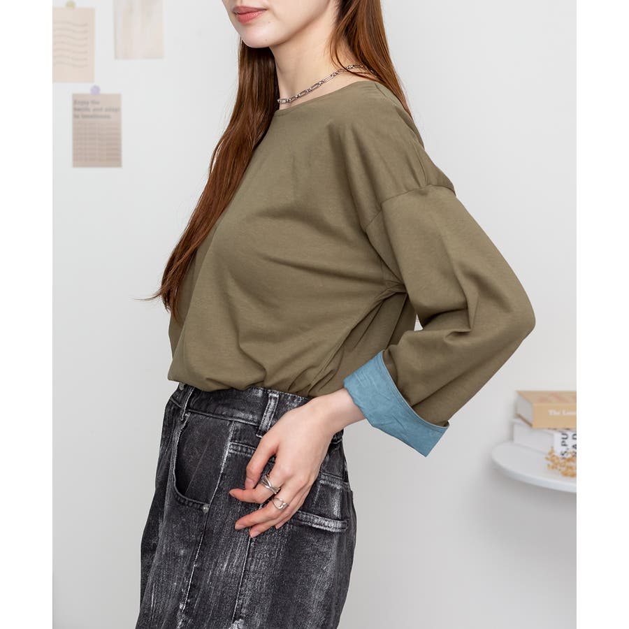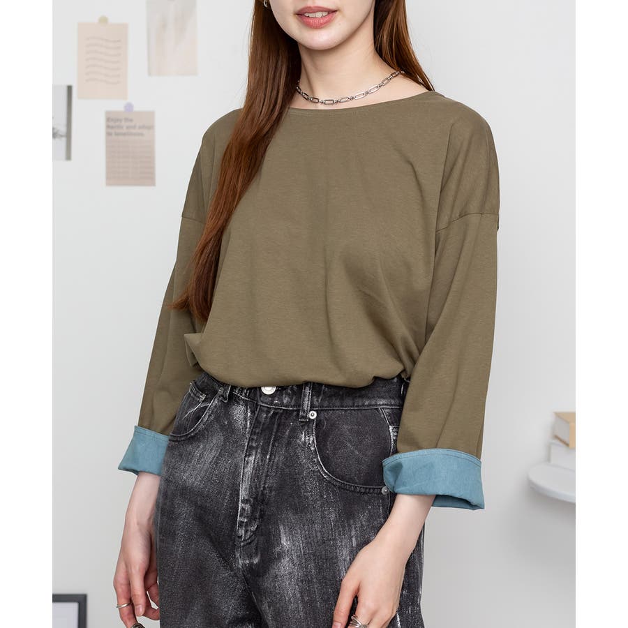 袖口裏タンガリーロングTシャツ ロングスリーブ カットソー