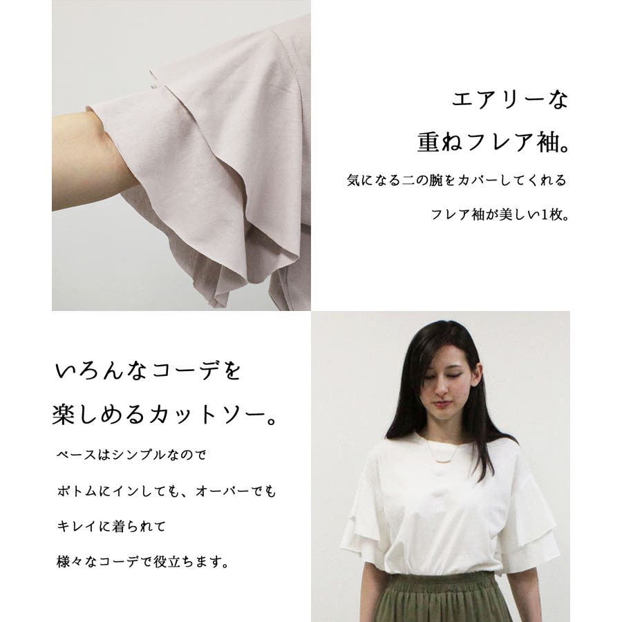コットンフレアー袖カットソー ふんわり袖で大人フェミニンな印象に レディースファ…