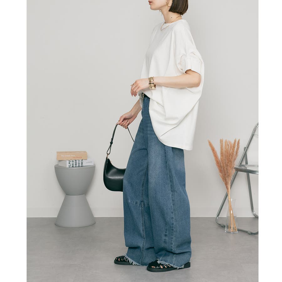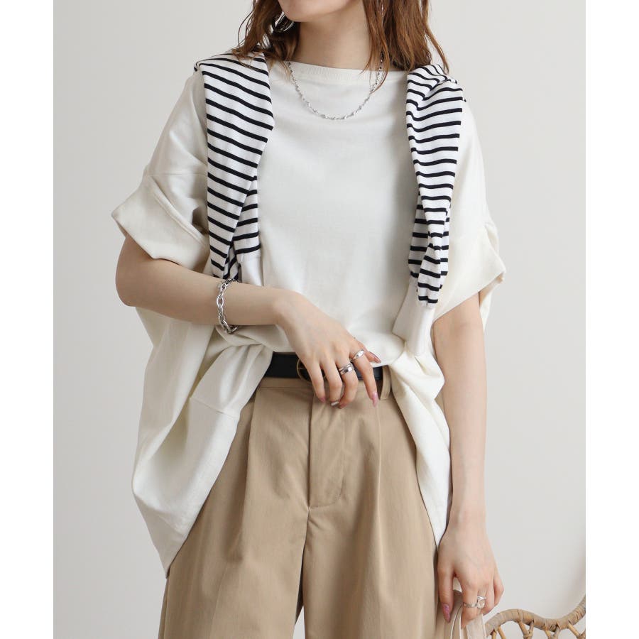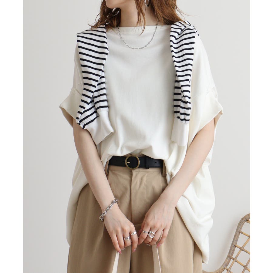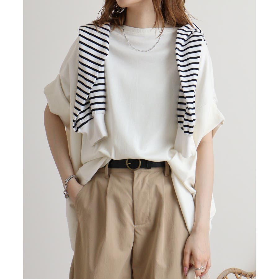 ゆったりした身幅が切り替えラインですっきりと細見えするシルエット春夏にぴったりな軽やかな着心地デイリー使いに最適な優秀アイテムどんなボトムスとも相性良く着まわし力も抜群