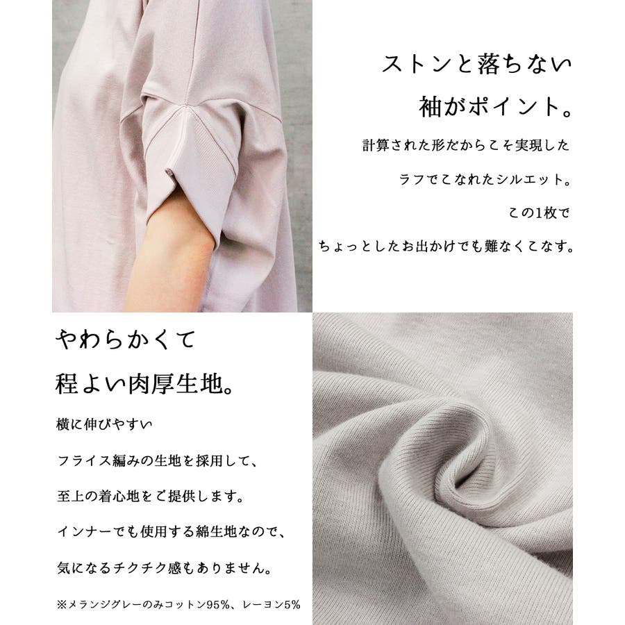 どんな方にも気軽に楽しんでいただけるようM-5Lサイズご用意しました。カジュアルになりすぎず首周りを美しく見せるボートネック、身体のラインを拾わず、動きやすい。腕を上げても腰とお腹が見えない嬉しい丈感。