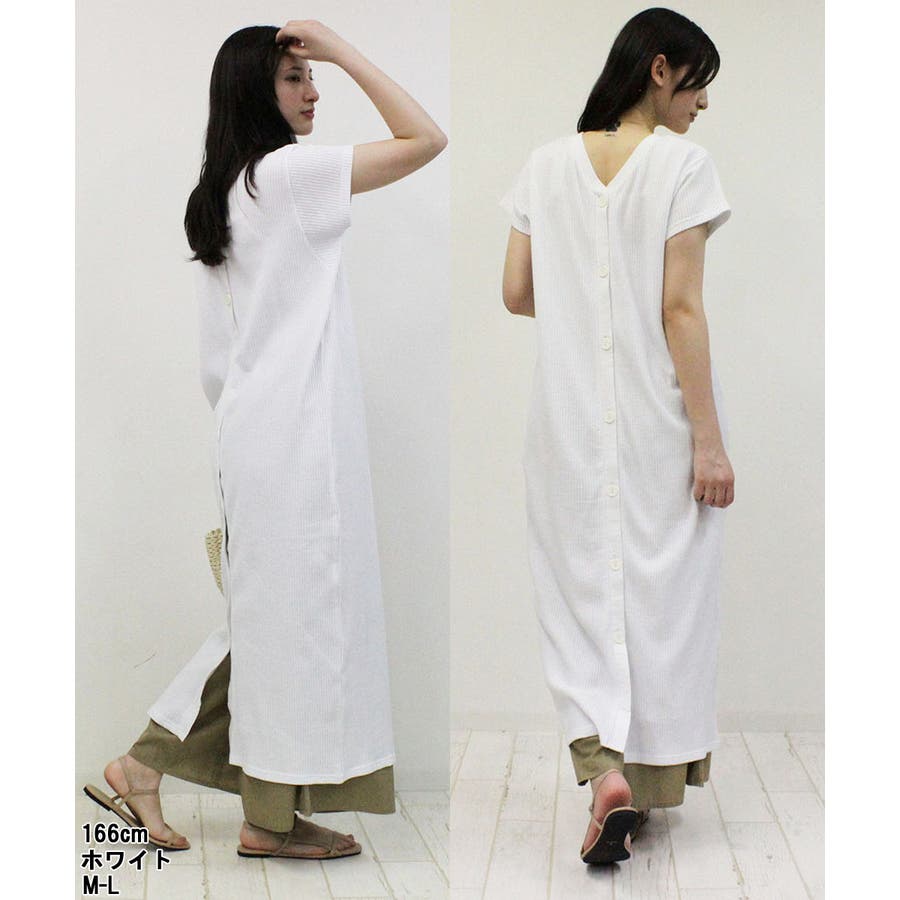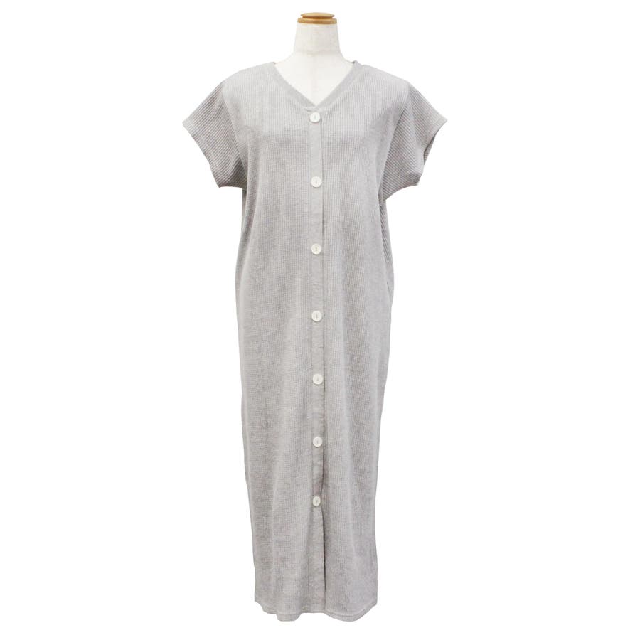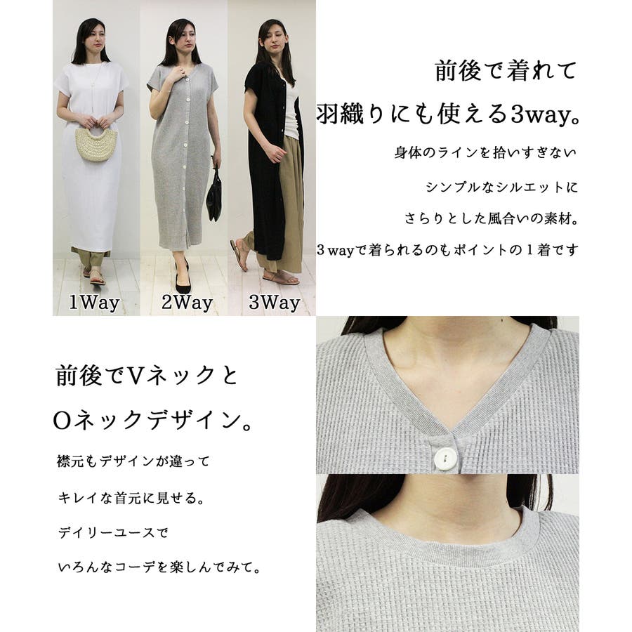 ワッフルバックボタンワンピース 3WAYのワッフル生地ロングカーディガン バック…