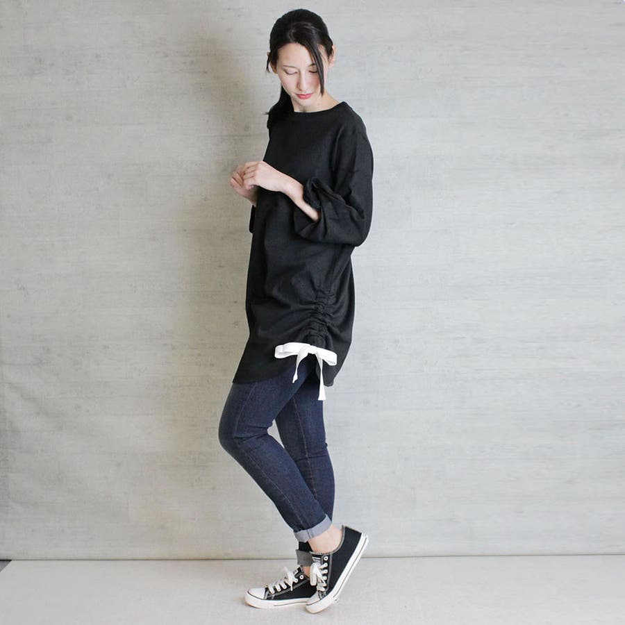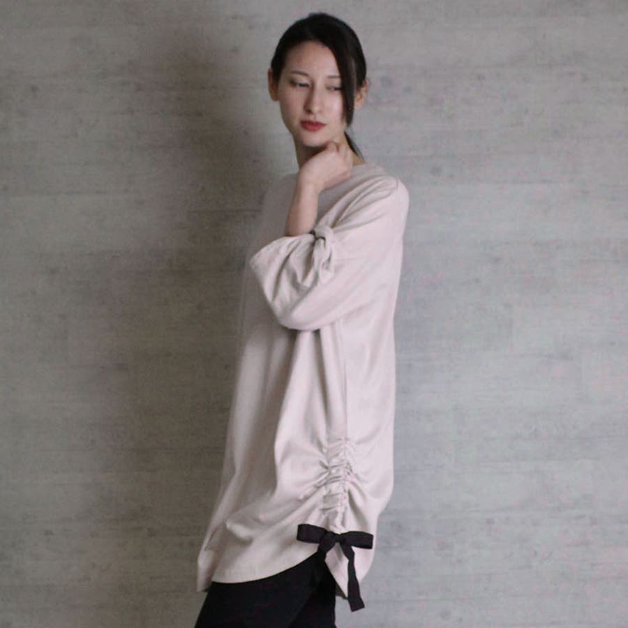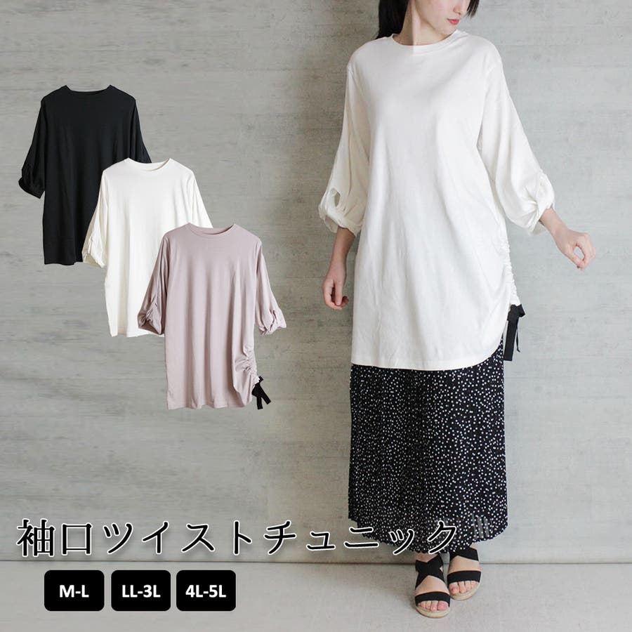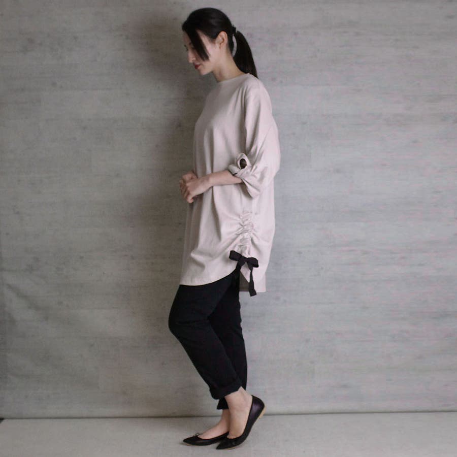 シンプルなデザインに袖口ツイストが入っていて女性らしさも演出♪
