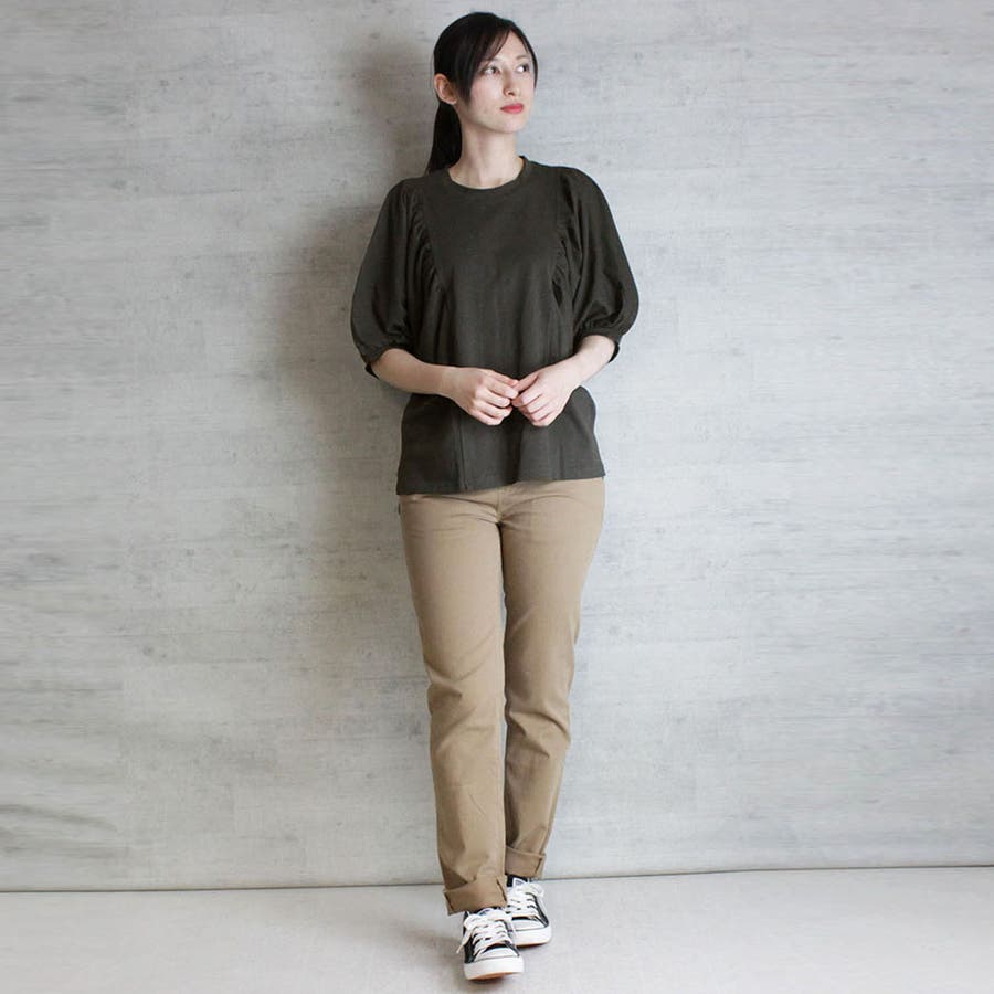 伸縮性に優れているため、身頃だけでなく腕周りの窮屈感も軽減され、ストレスフリーな着心地を叶えます。