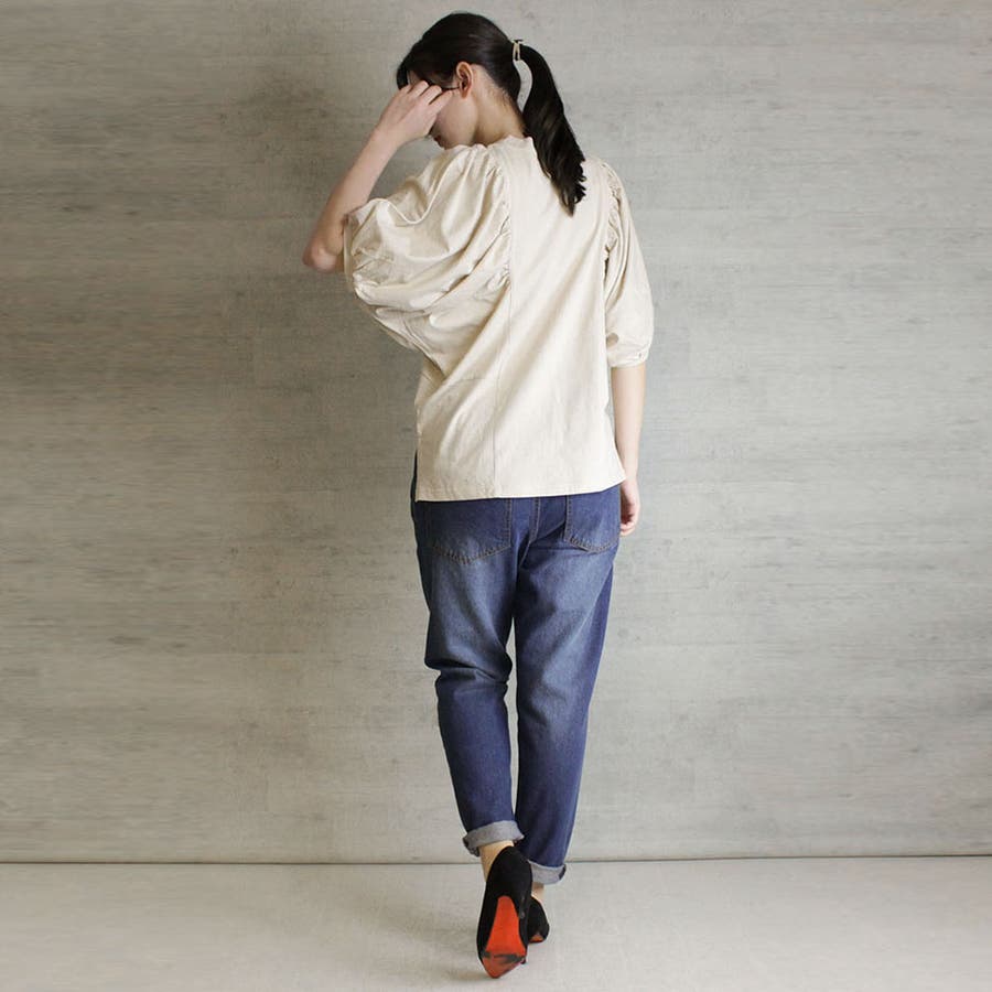 肌に優しく柔らかで、サラッとした生地感が心地良い一着。