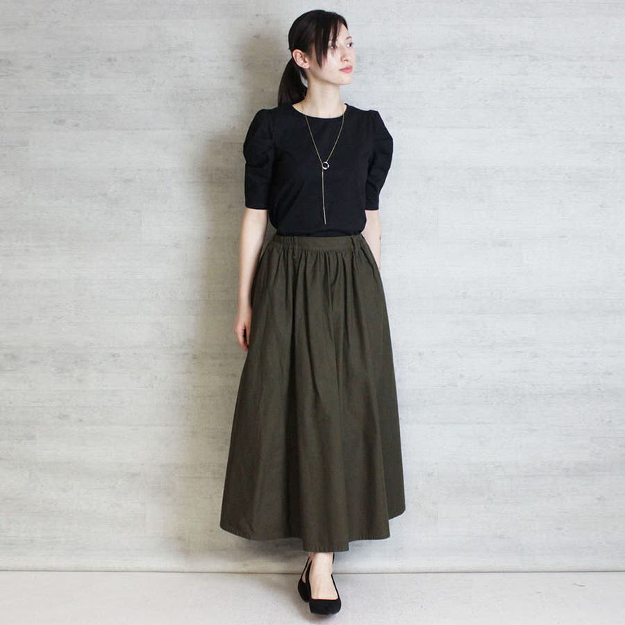 パフスリーブの裾が狭いかなと思い一番大きいサイズを買いましたが、二の腕お化けの私でもオーバーサイズで着れました。綿で肌当たりもいいし、伸縮性もあるので、Lサイズくらいで良かったなと思いました。形がいいので仕事にも着ています。