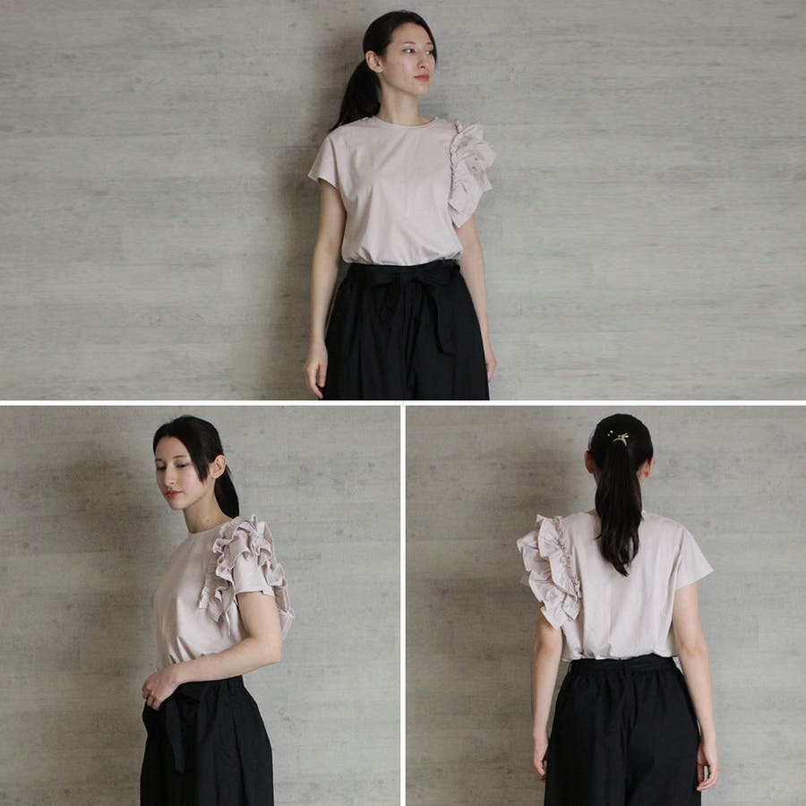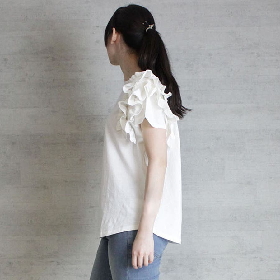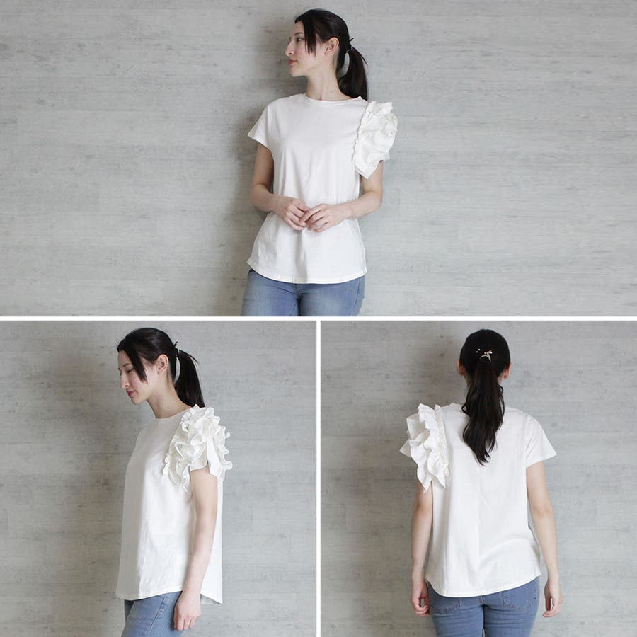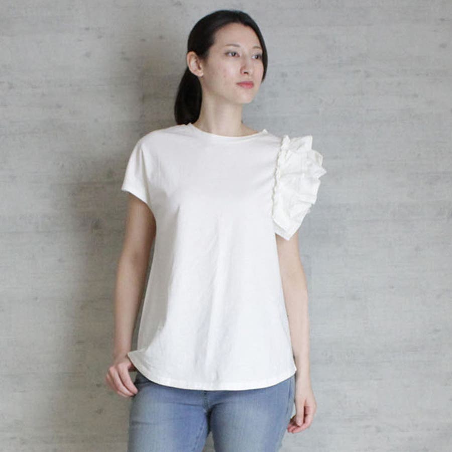 片袖フリル デザインカットソー