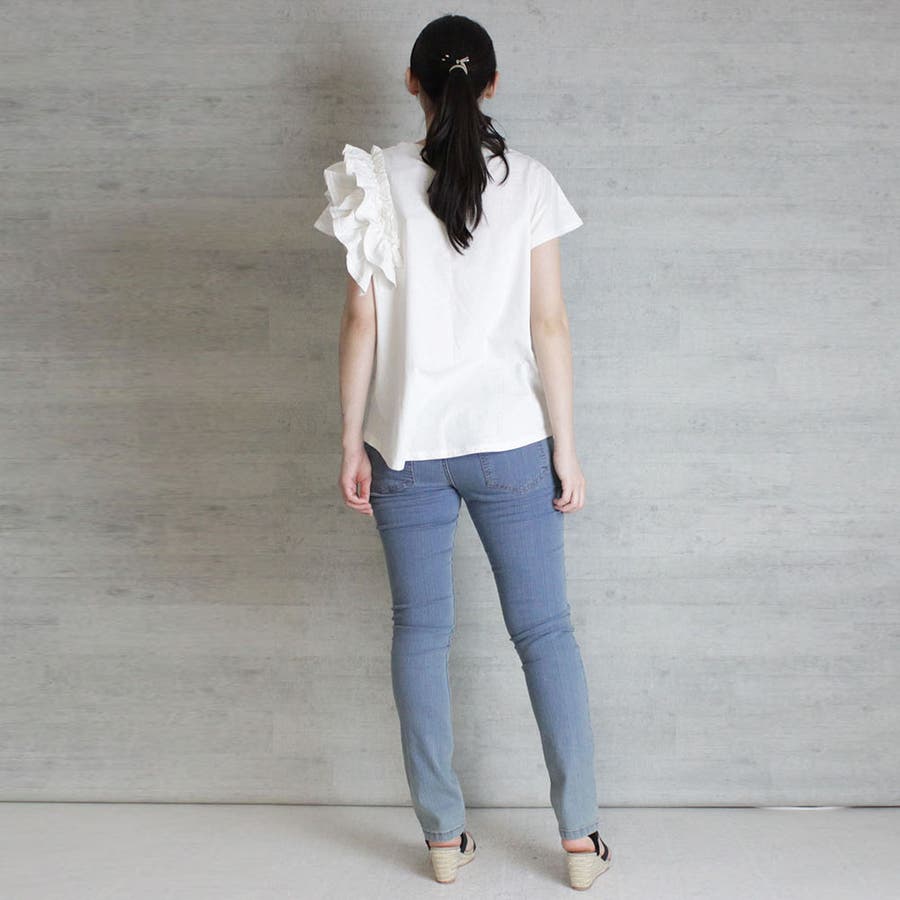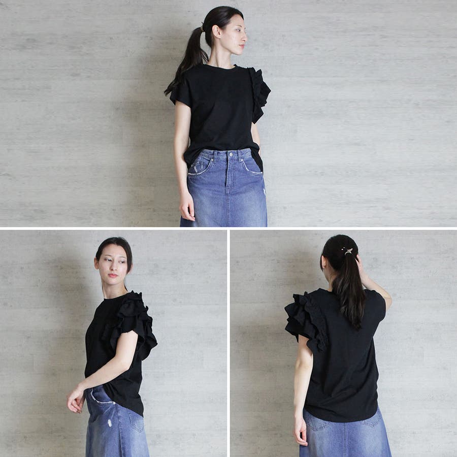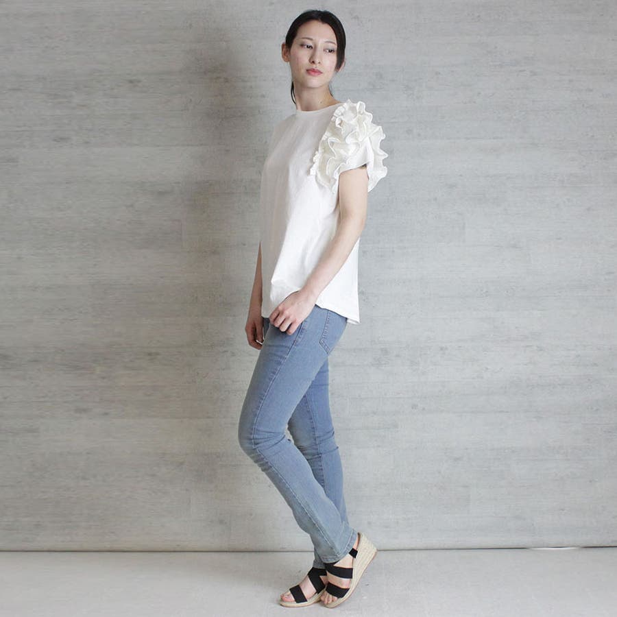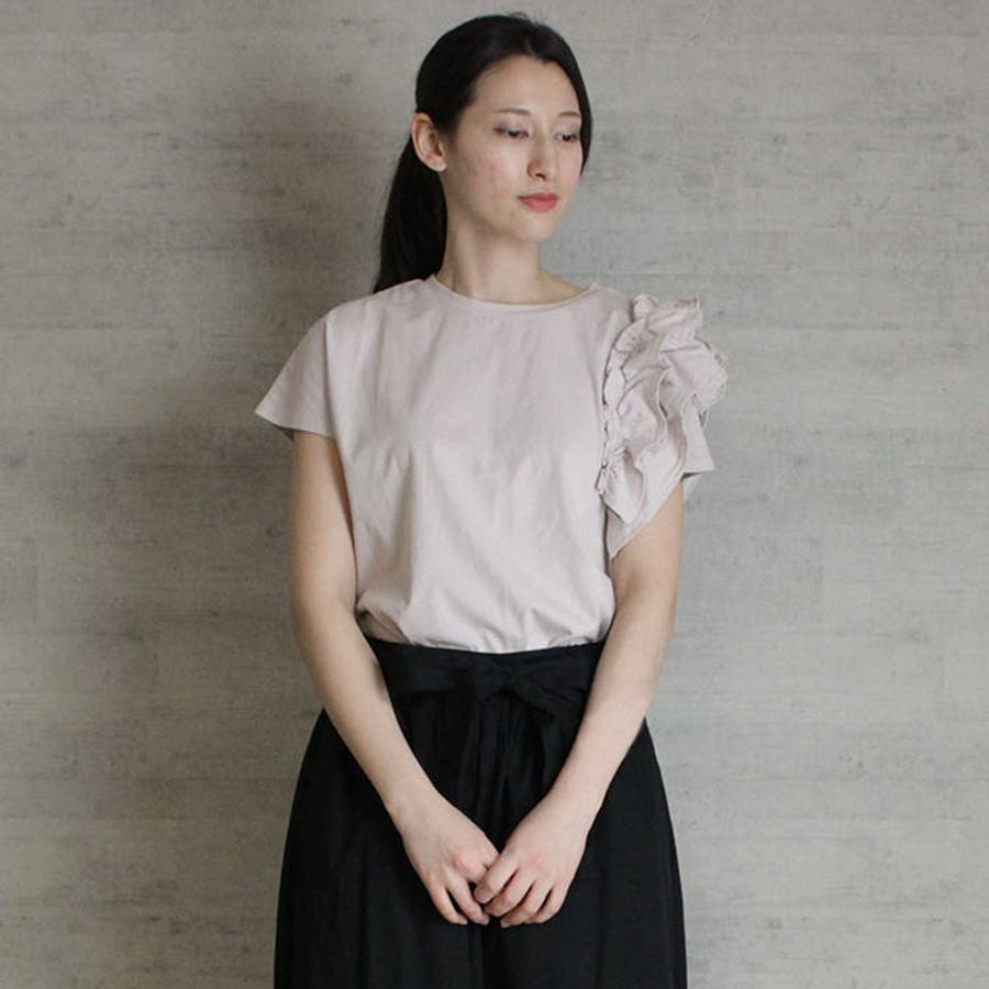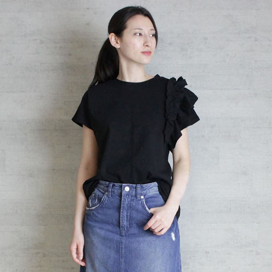 片袖フリル デザインカットソー