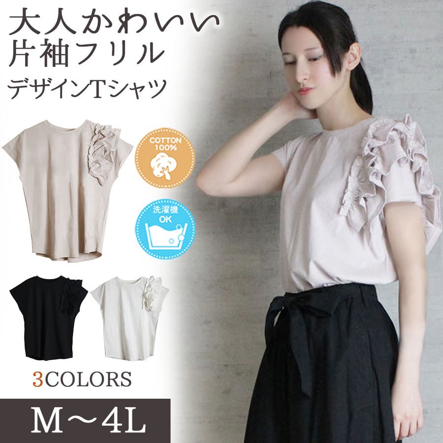 一枚でおしゃれが完成!コットン素材の片袖フリルデザインTシャツ