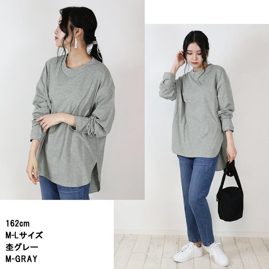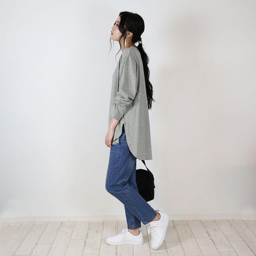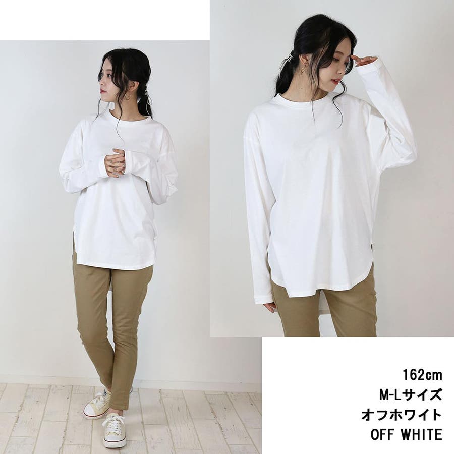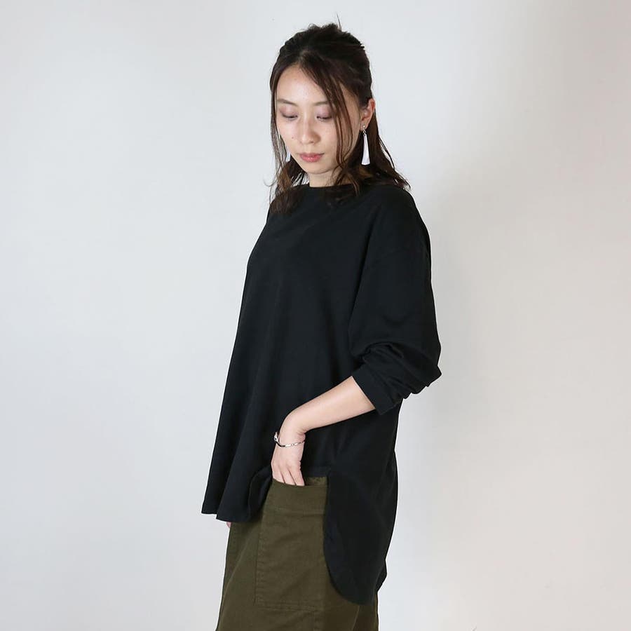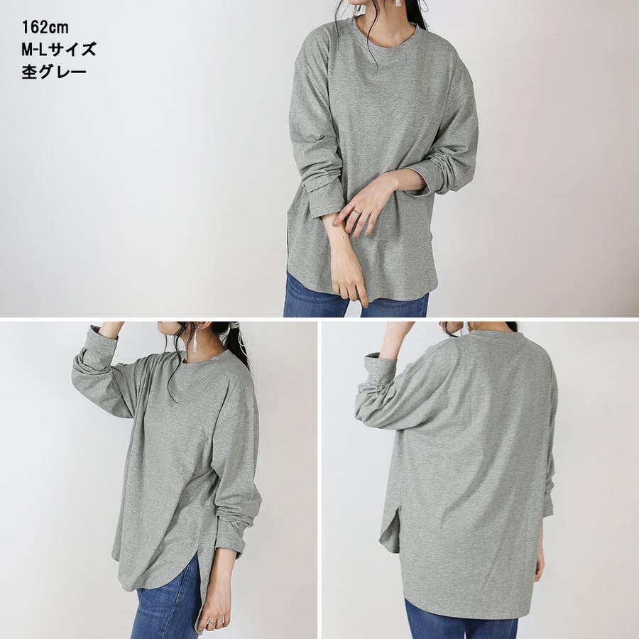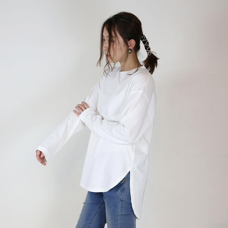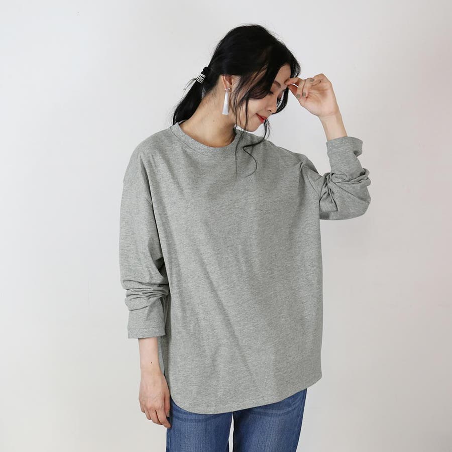 シンプルで合わせやすい無地のクルーネックカットソー、ラウンドヘムシルエットの良さが人気の秘密。 やや細身のラインで、カジュアルになりすぎません。 また、襟ぐりを深くすることで、女性らしさが際立つデザインです。 ぜひこのシルエットと着心地の良さをお試しください
