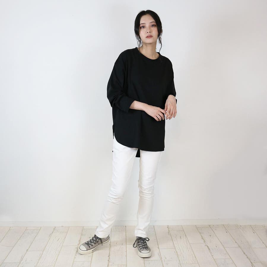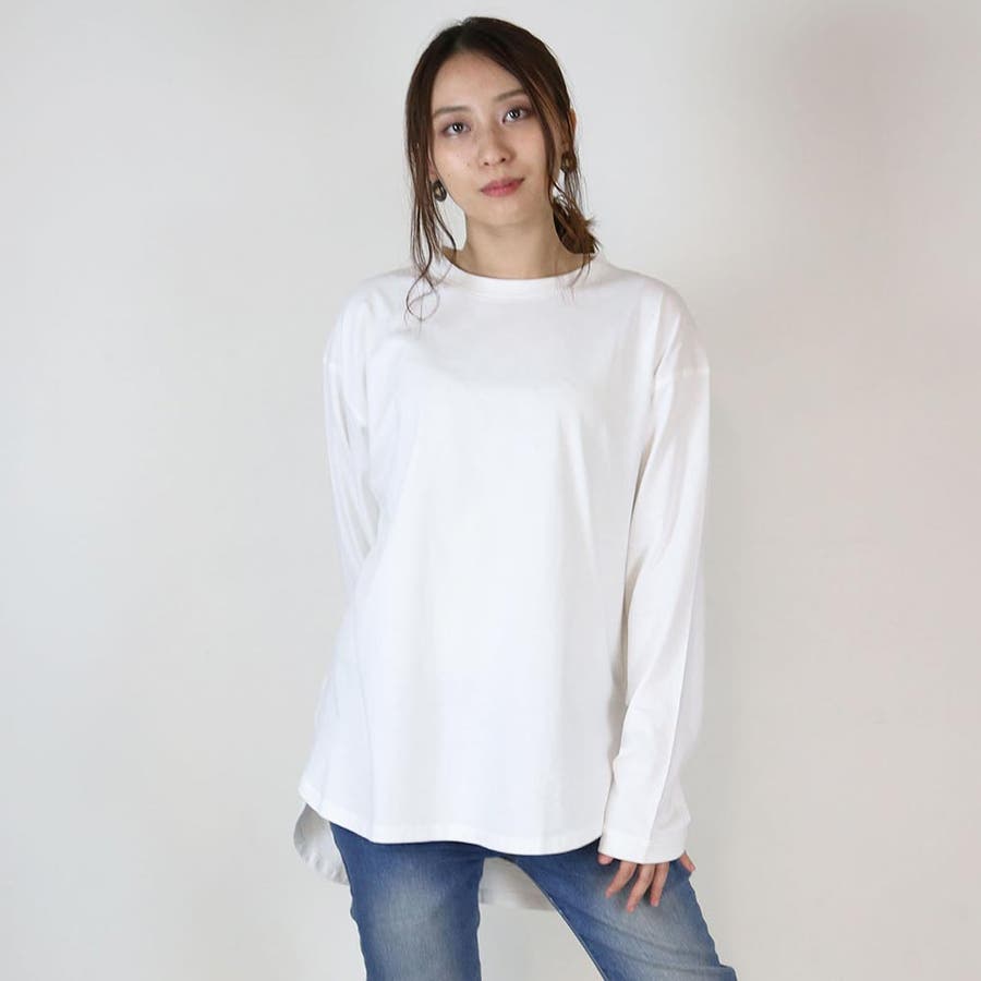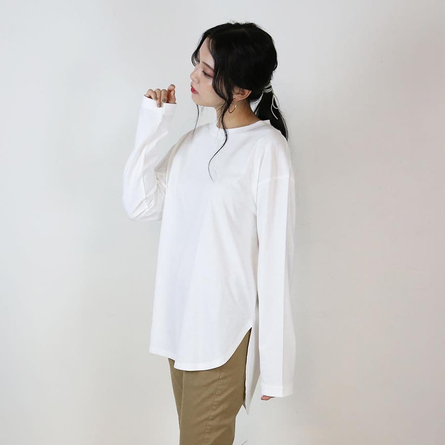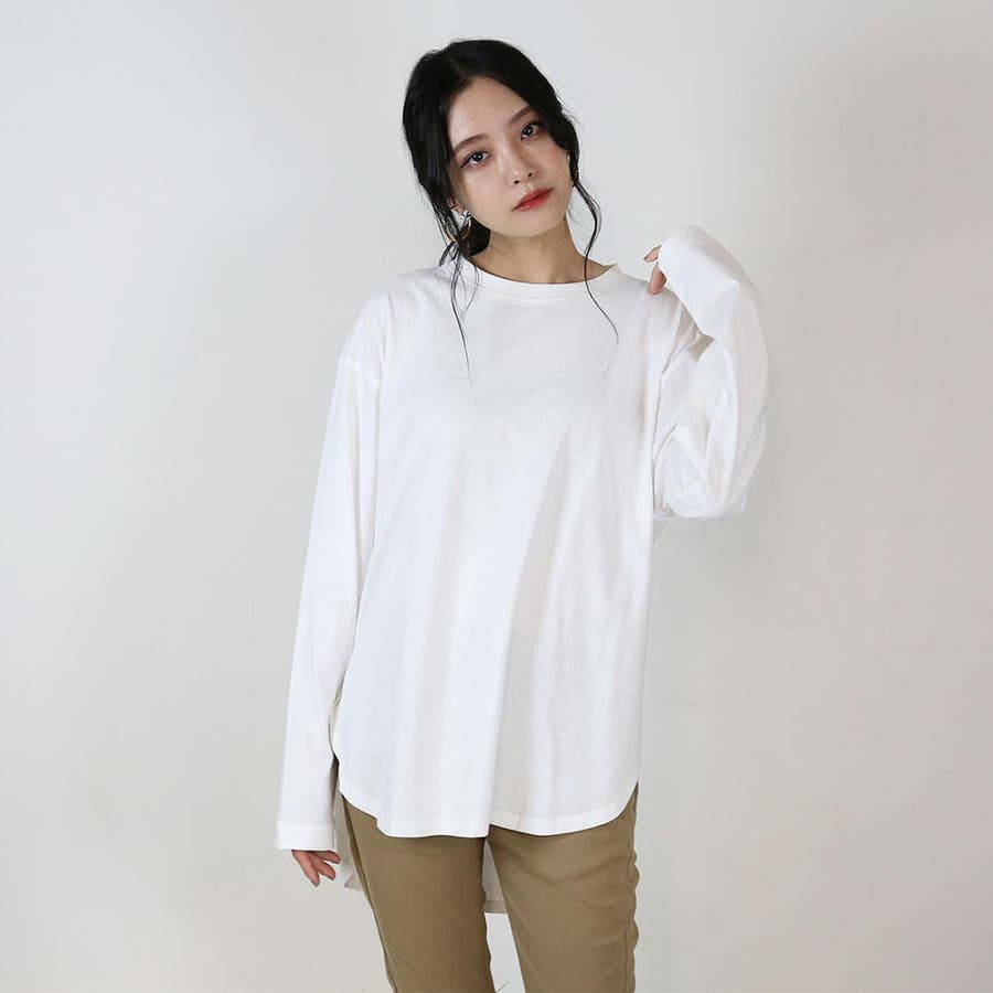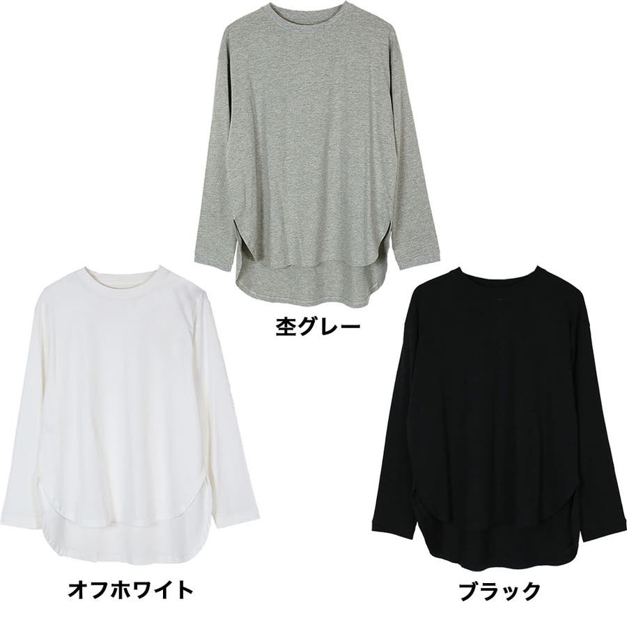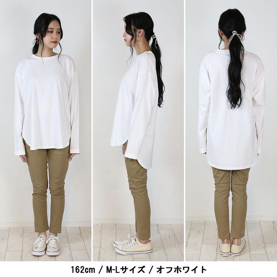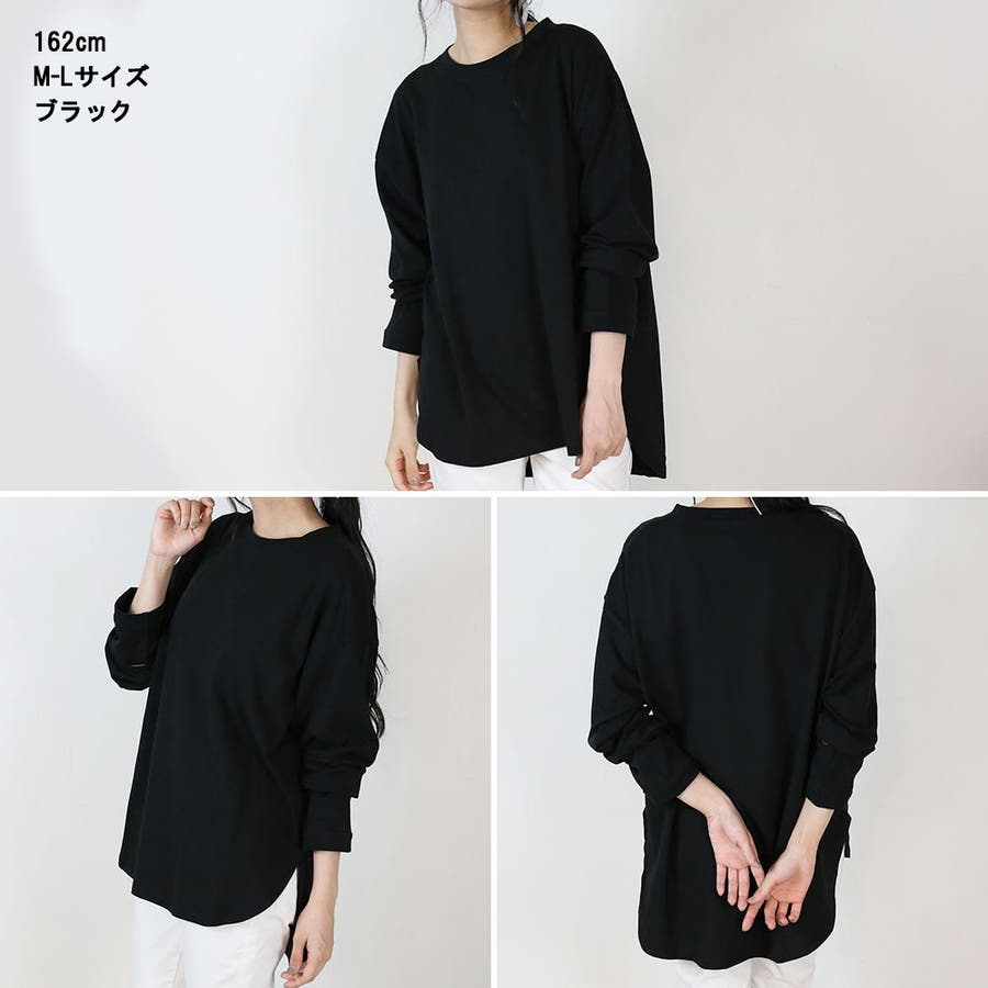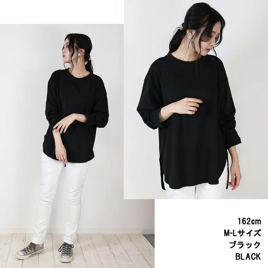 シンプルで合わせやすい無地のクルーネックカットソー、ラウンドヘムシルエットの良さが人気の秘密。 やや細身のラインで、カジュアルになりすぎません。 また、襟ぐりを深くすることで、女性らしさが際立つデザインです。 ぜひこのシルエットと着心地の良さをお試しください