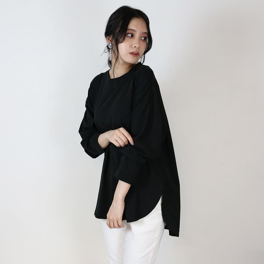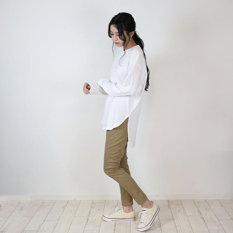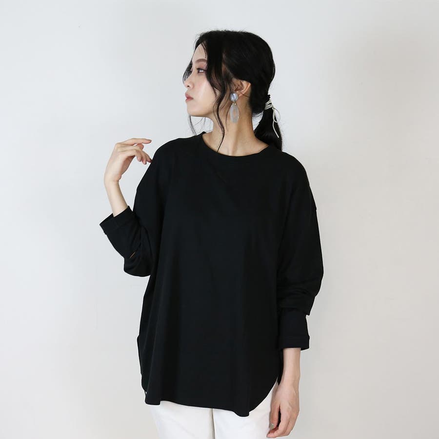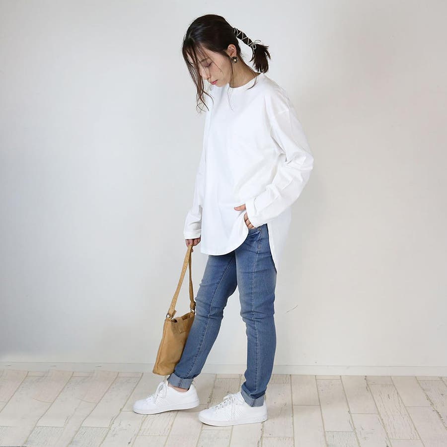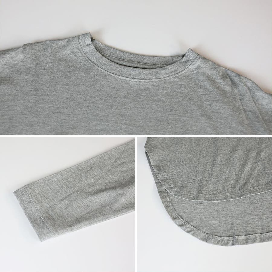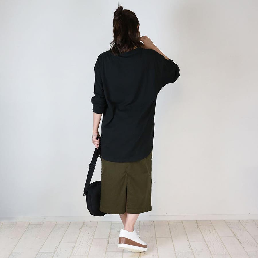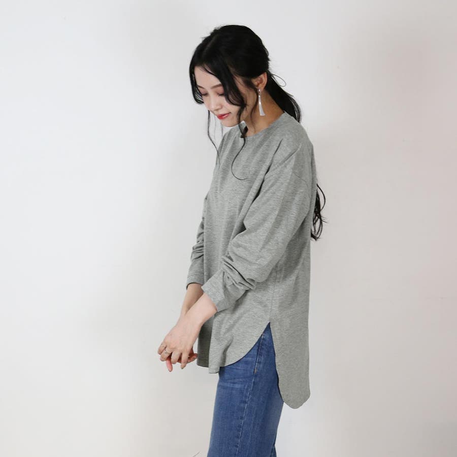 シンプルで合わせやすい無地のクルーネックカットソー、ラウンドヘムシルエットの良さが人気の秘密。 やや細身のラインで、カジュアルになりすぎません。 また、襟ぐりを深くすることで、女性らしさが際立つデザインです。 ぜひこのシルエットと着心地の良さをお試しください