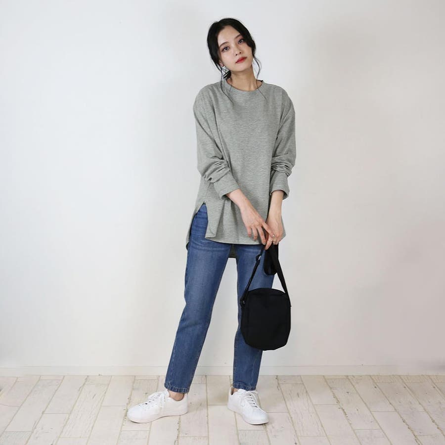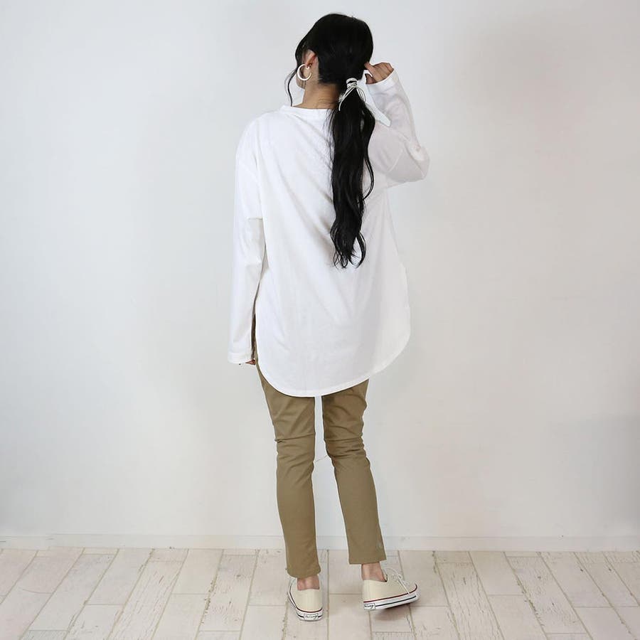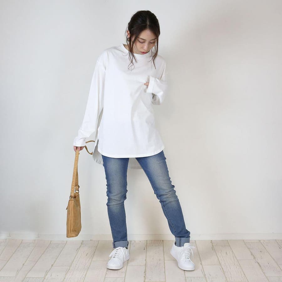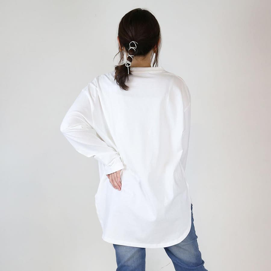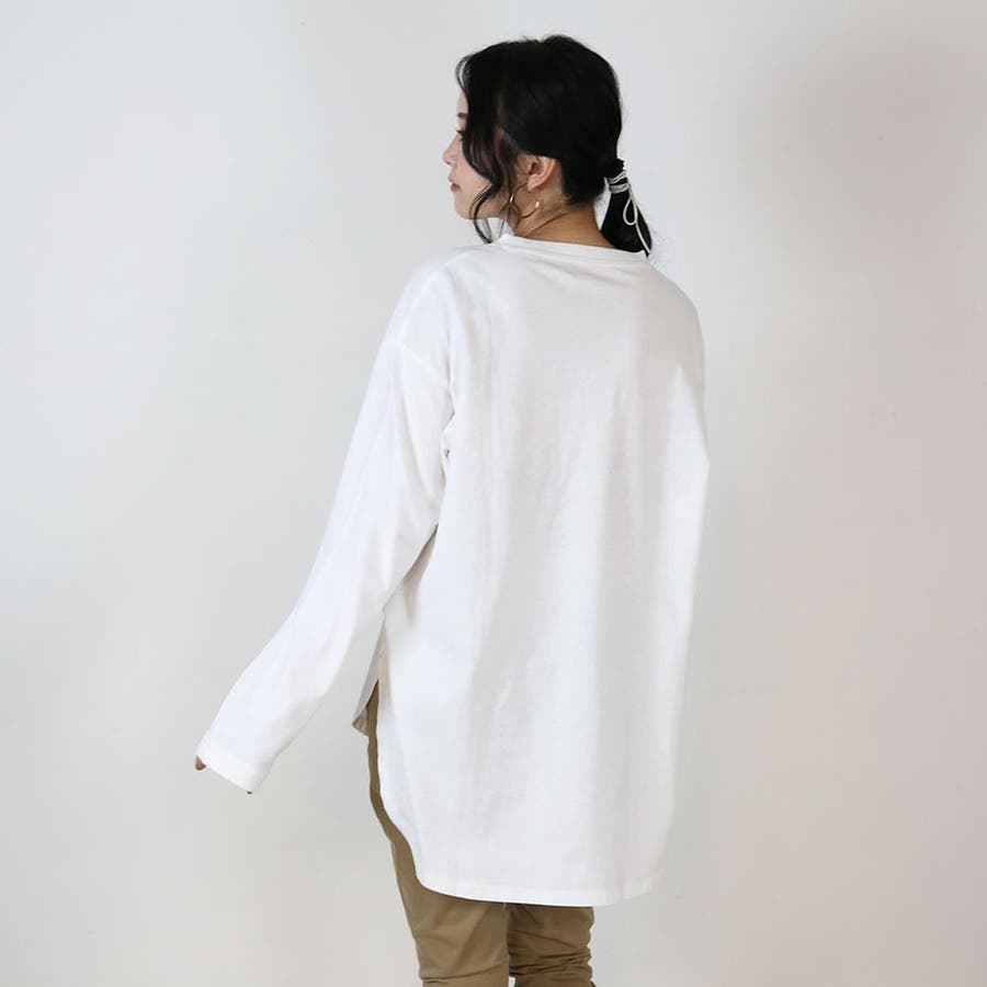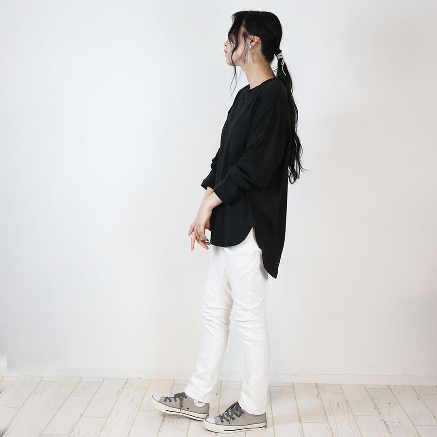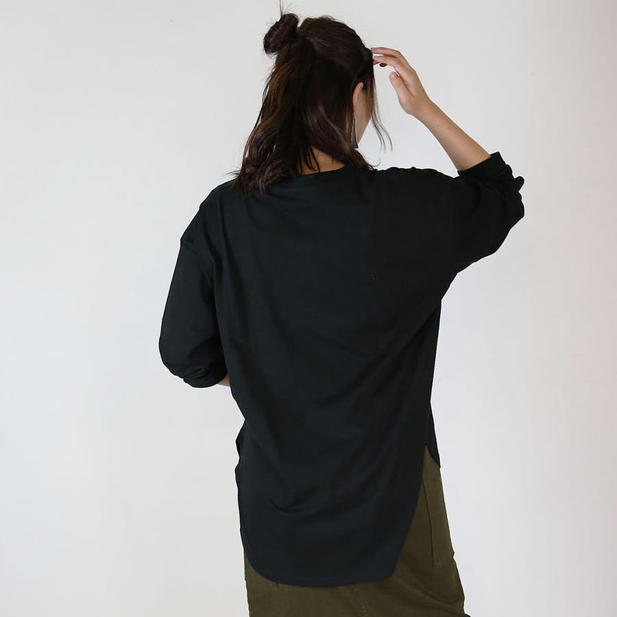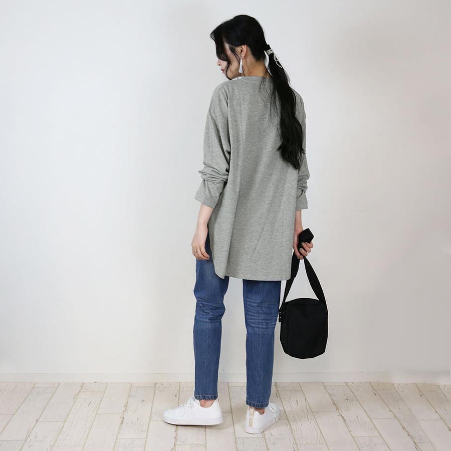 シンプルで合わせやすい無地のクルーネックカットソー、ラウンドヘムシルエットの良さが人気の秘密。 やや細身のラインで、カジュアルになりすぎません。 また、襟ぐりを深くすることで、女性らしさが際立つデザインです。 ぜひこのシルエットと着心地の良さをお試しください