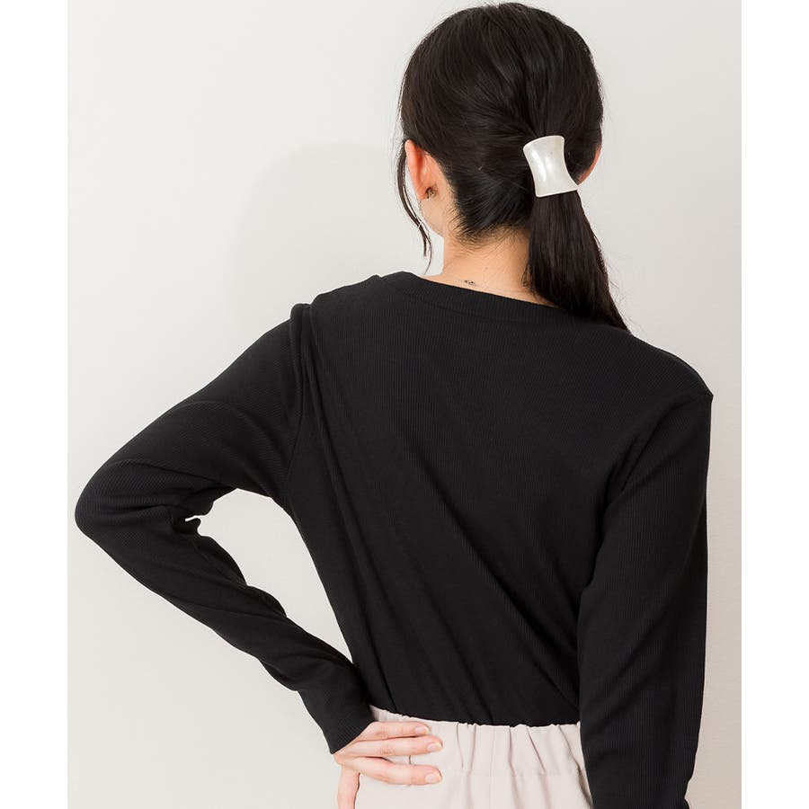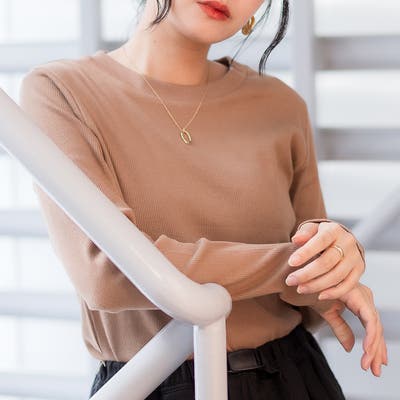 リブクルーネック長袖Tシャツ