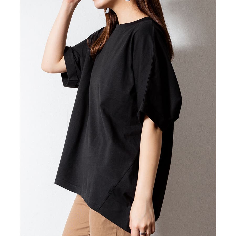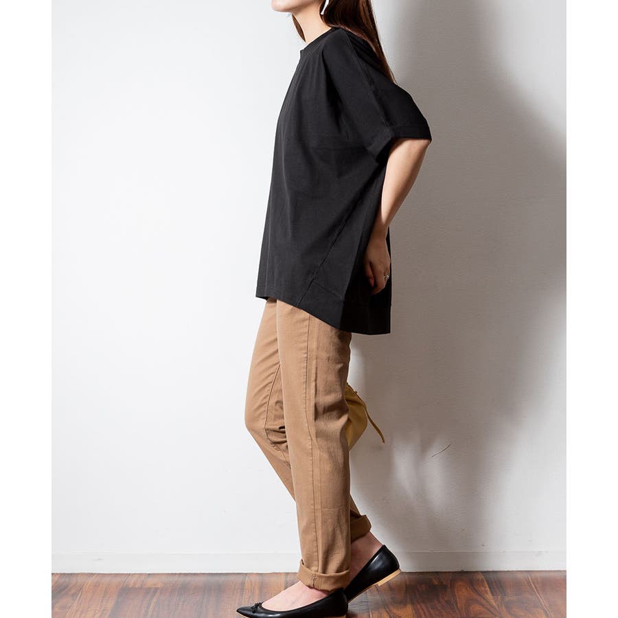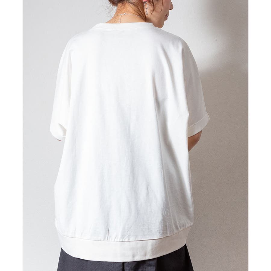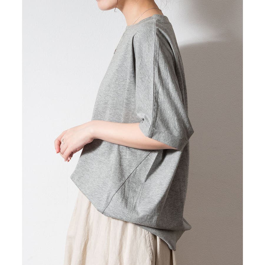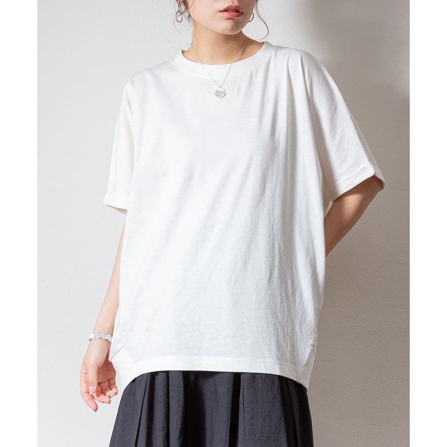 サイドのシームが内側に入ってくる仕様で、程よい落ち感も楽しめるトップスです。