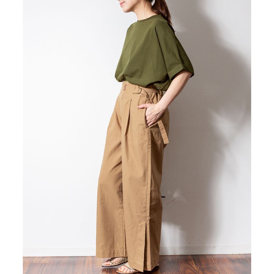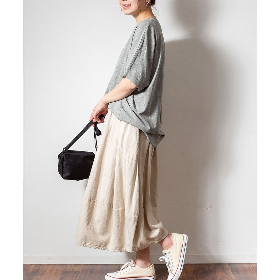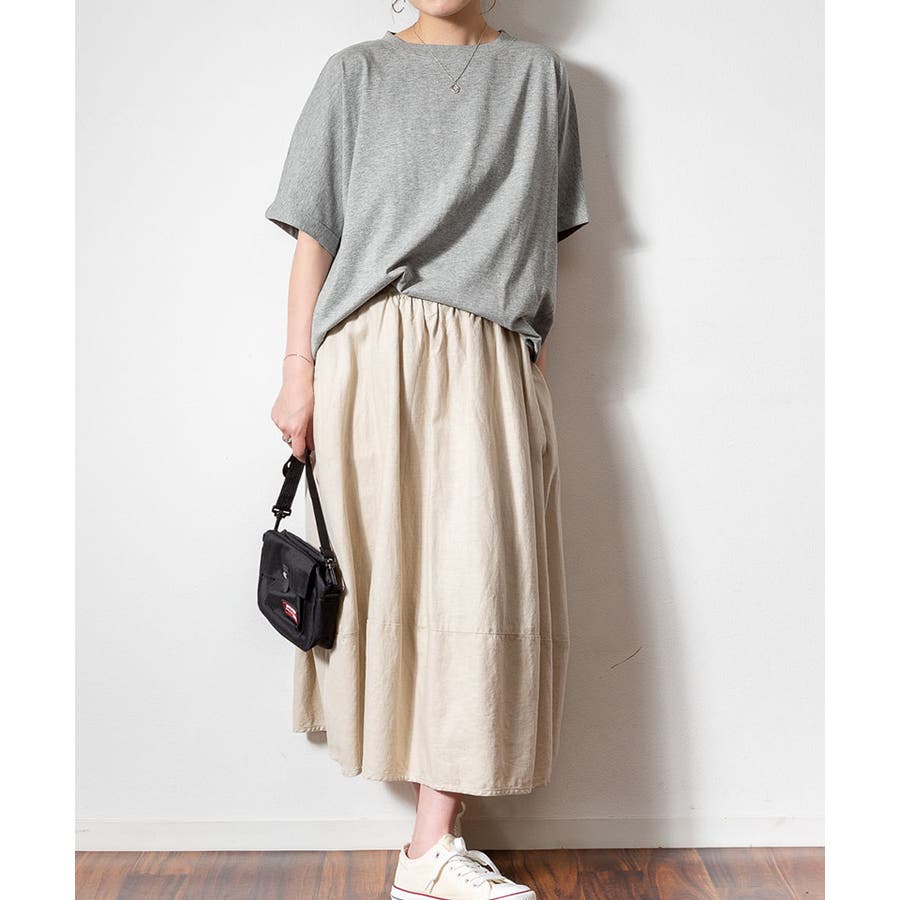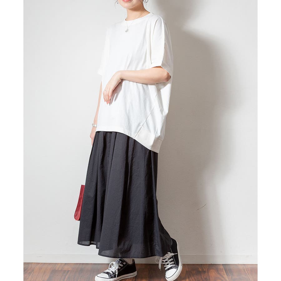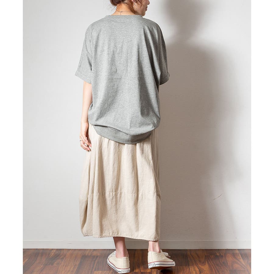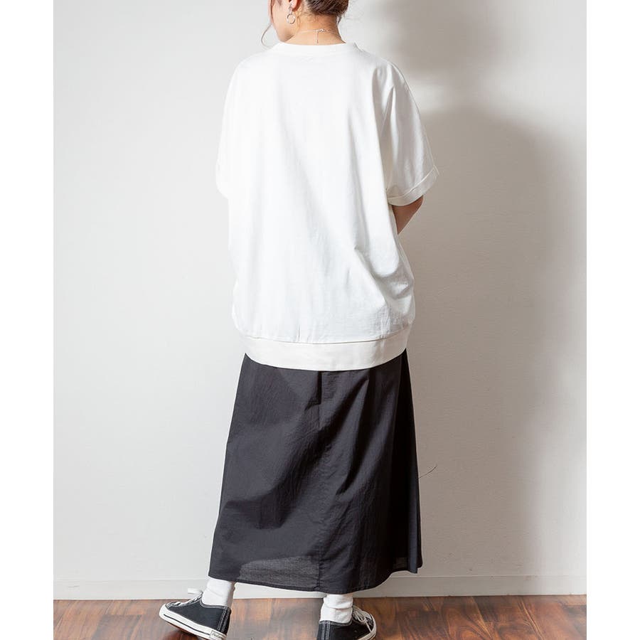 サイドのシームが内側に入ってくる仕様で、程よい落ち感も楽しめるトップスです。