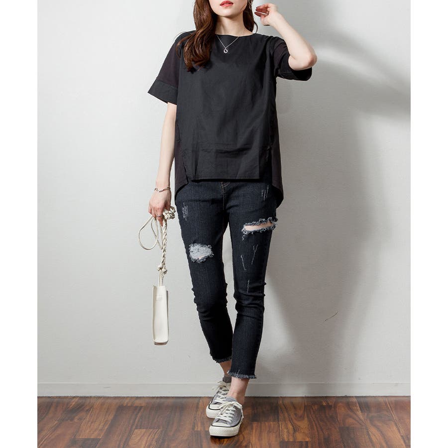 異素材切り替え半袖Tシャツ