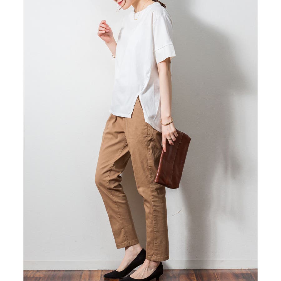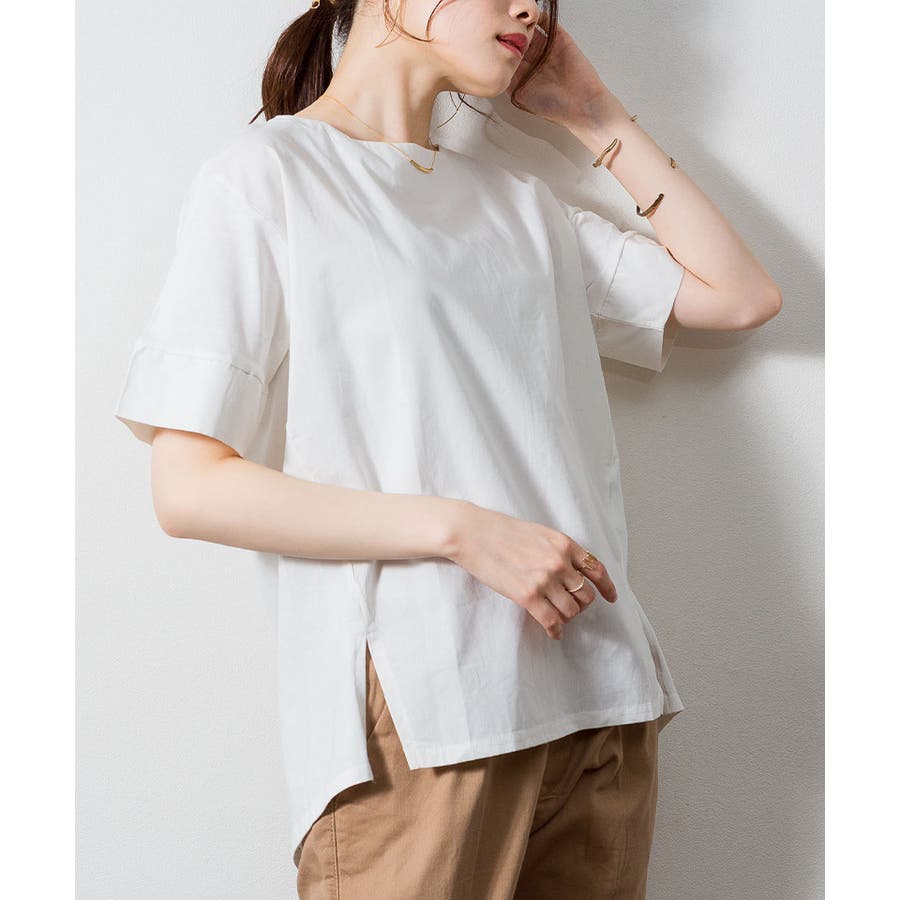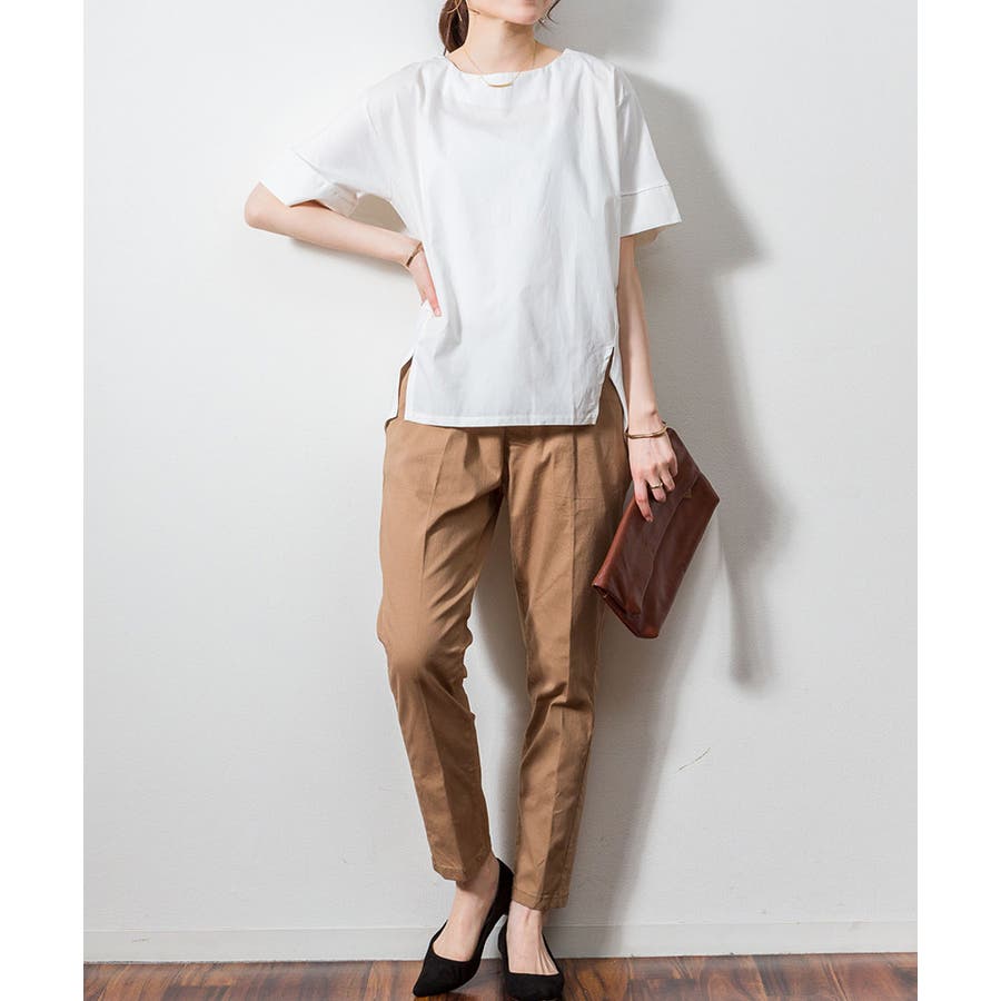 5分袖丈でさりげなく二の腕を隠しつつ、