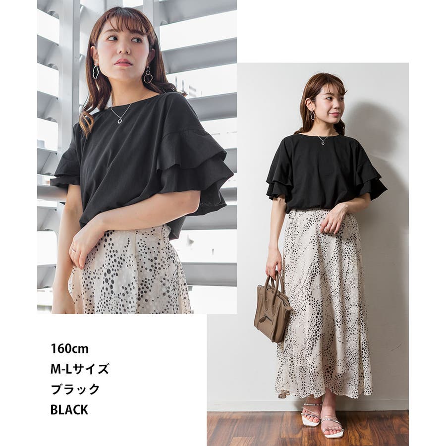 袖が2段階の優しいフレアーになったトップス。