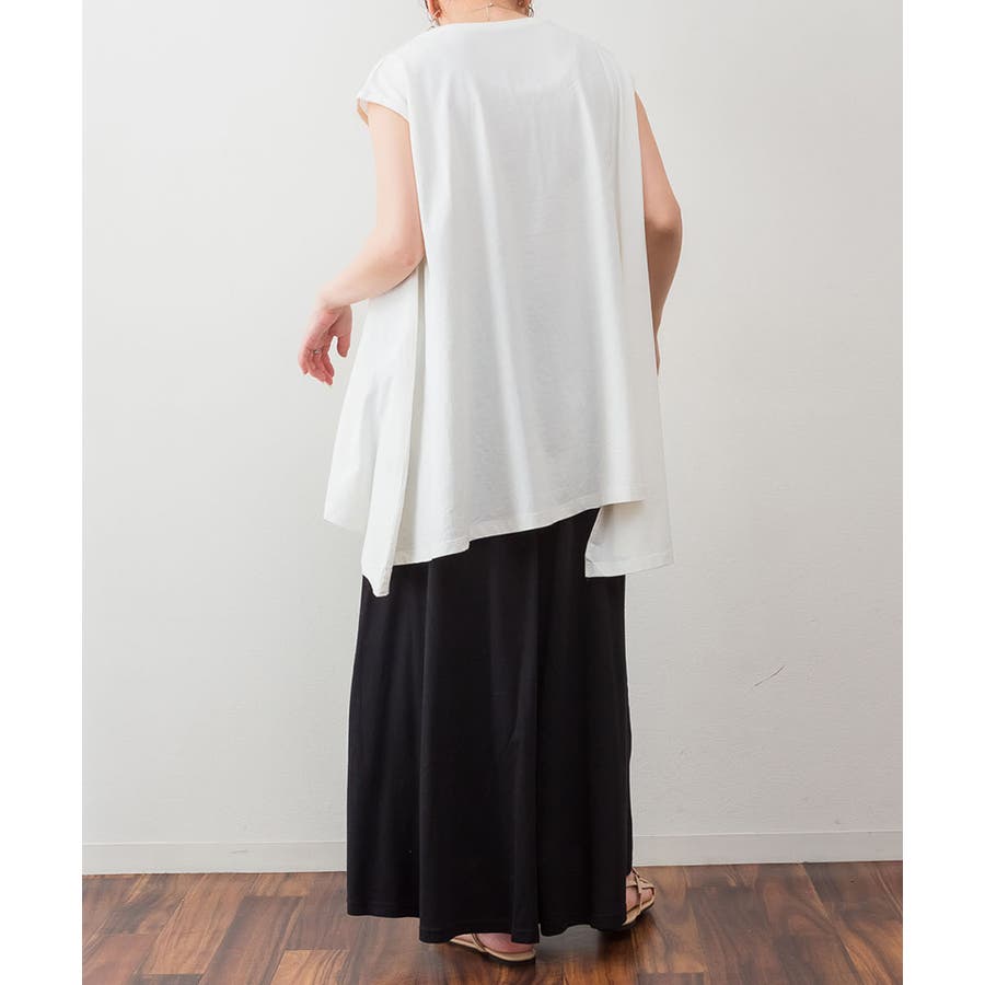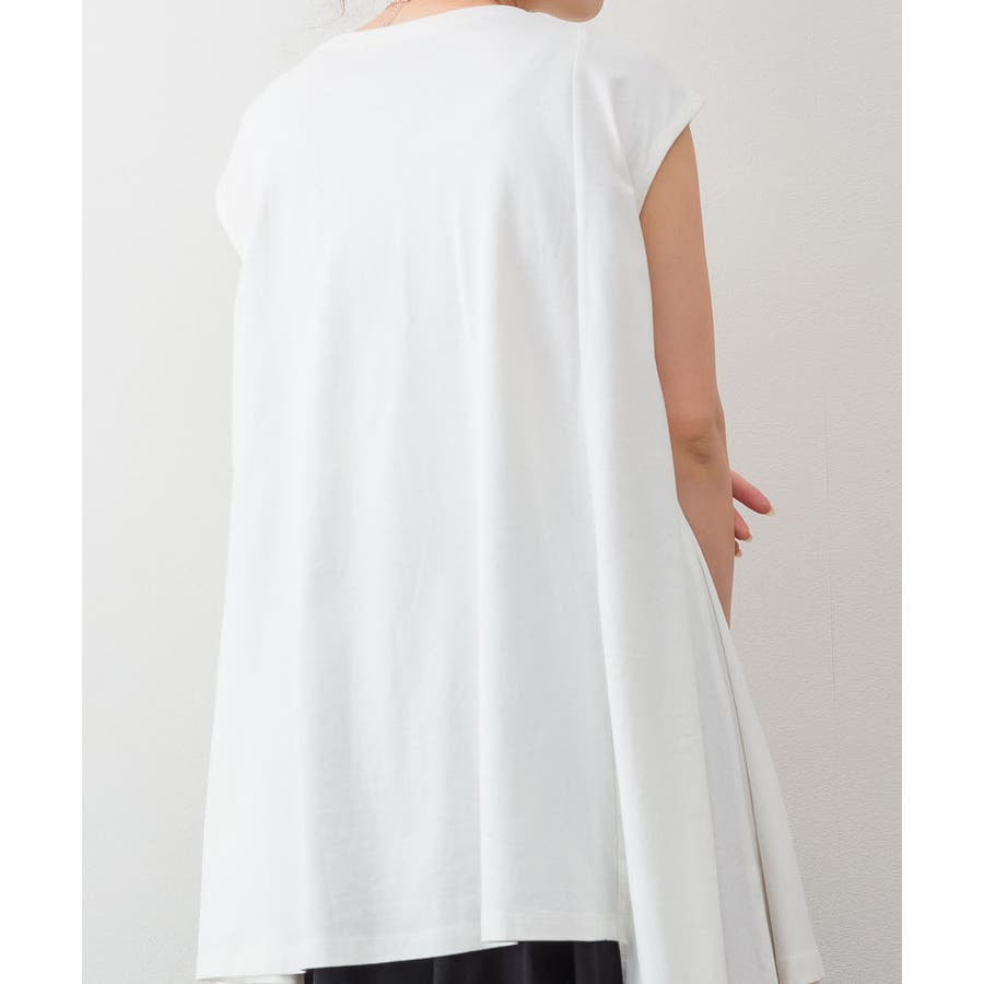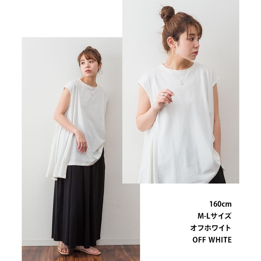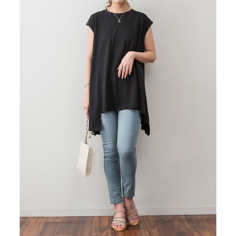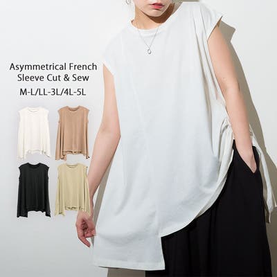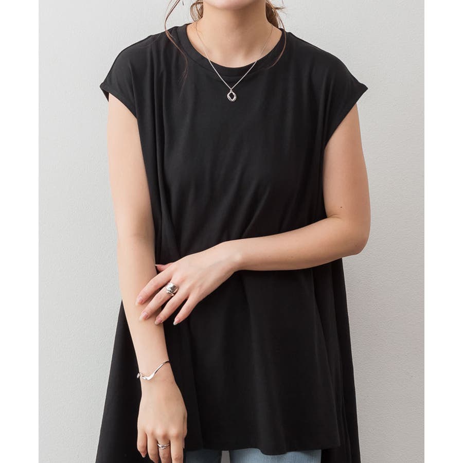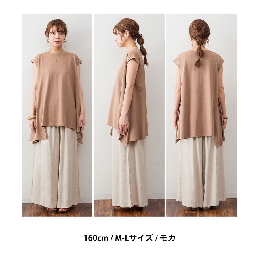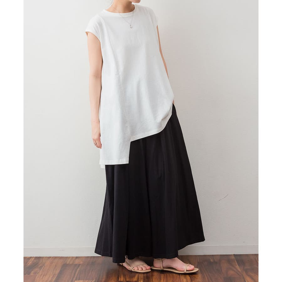 裾が段違いのアシメデザインになっているチュニック丈カットソー。