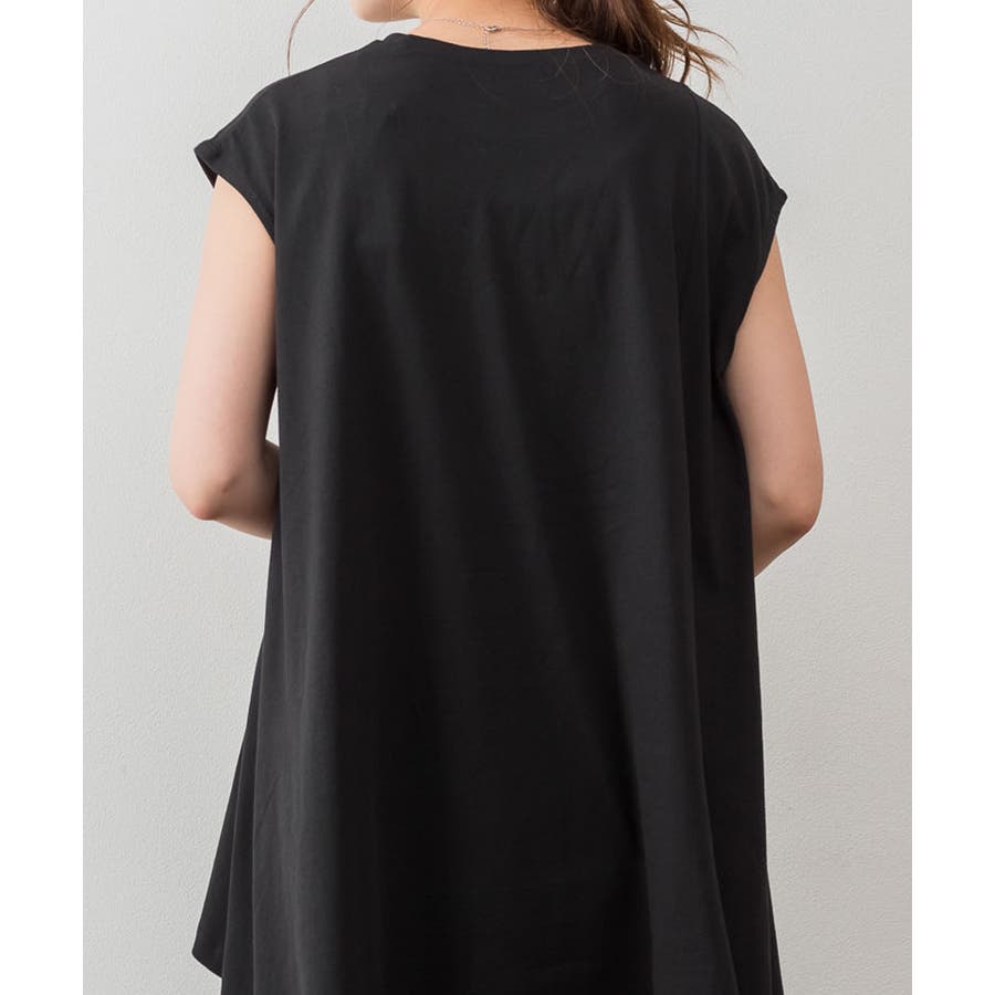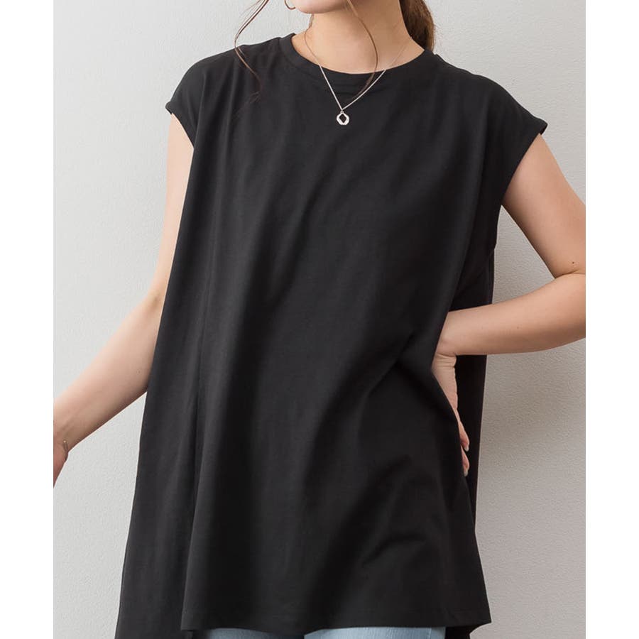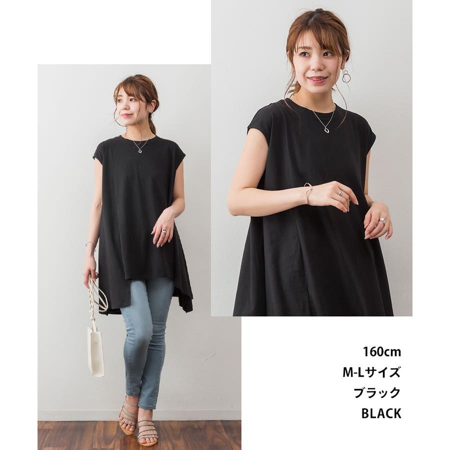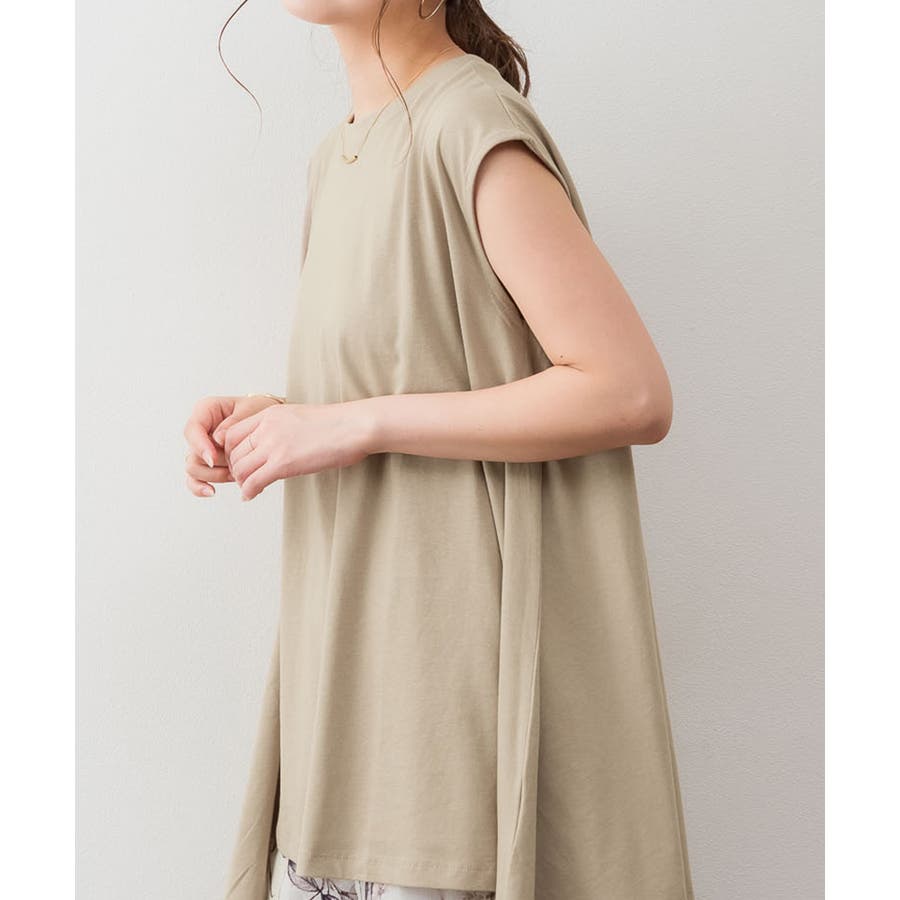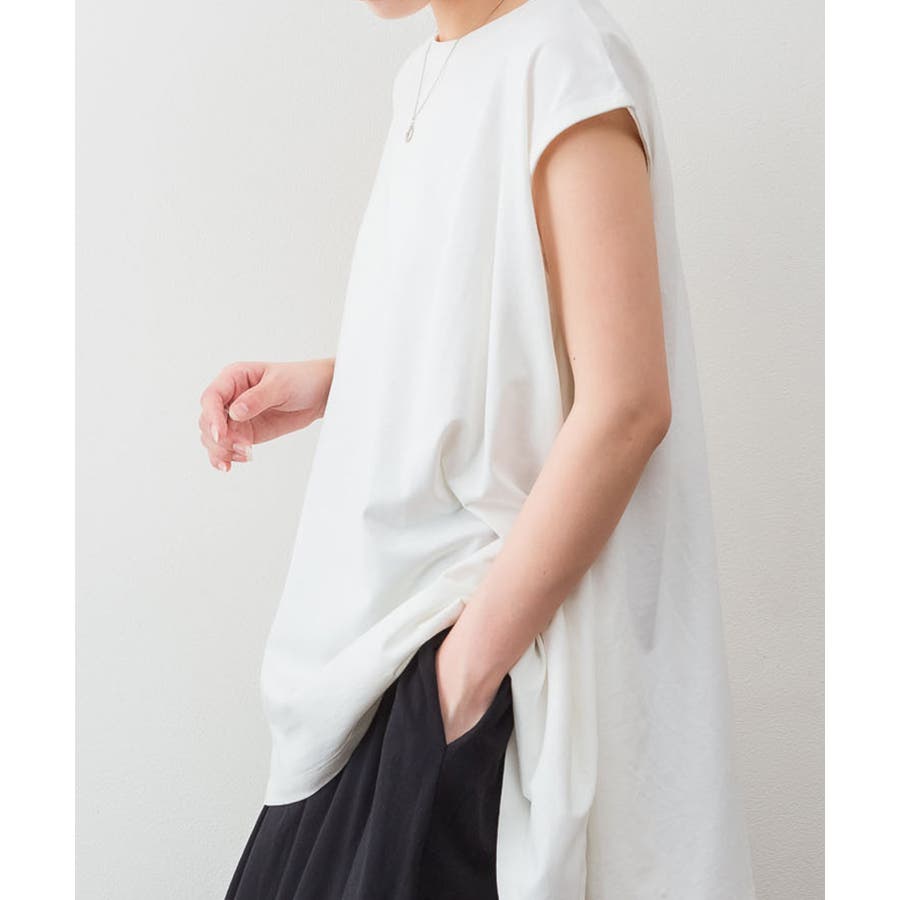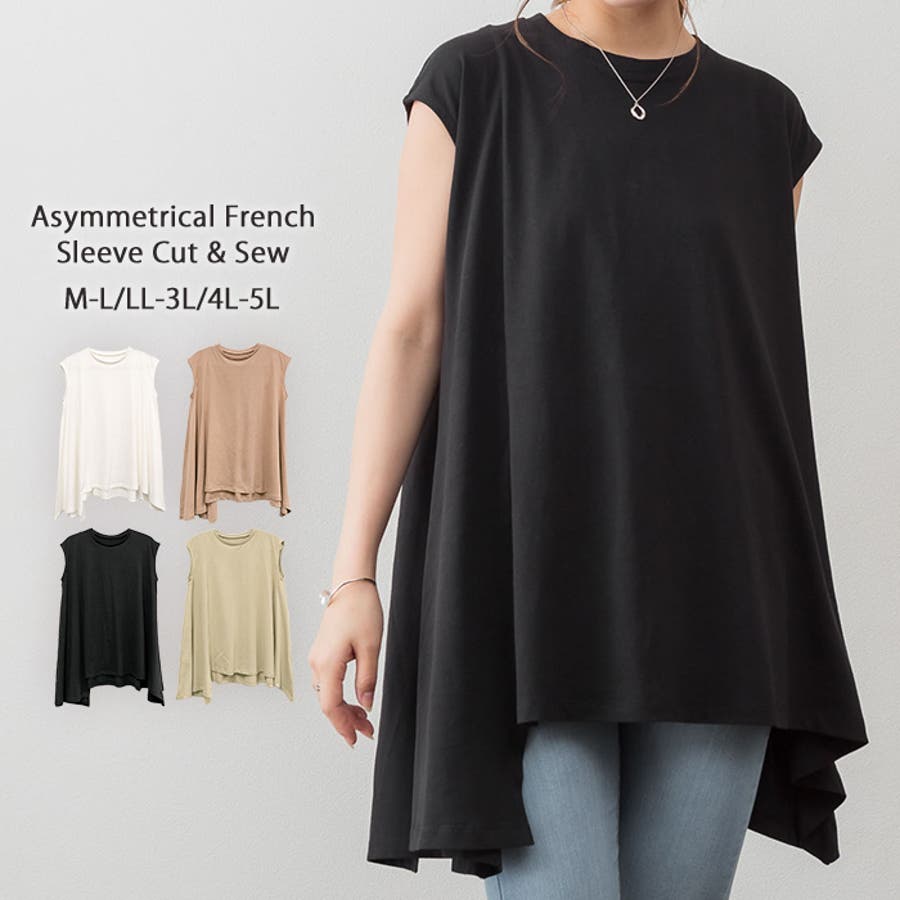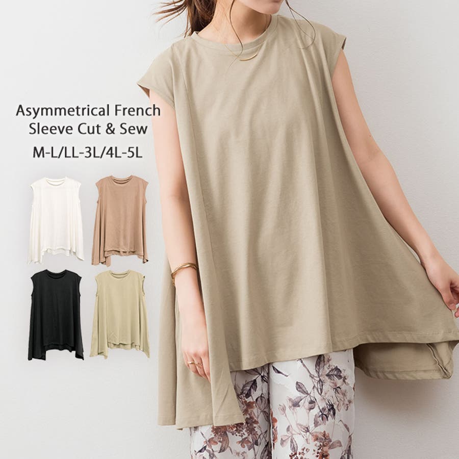 裾が段違いのアシメデザインになっているチュニック丈カットソー。