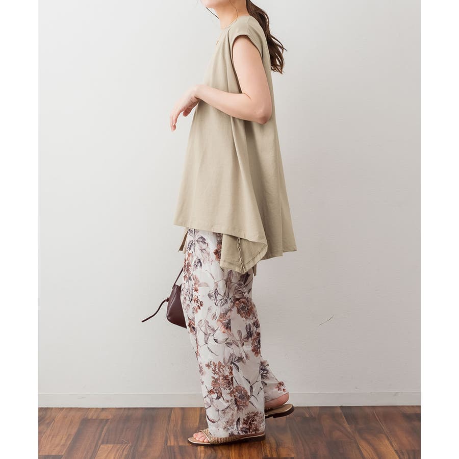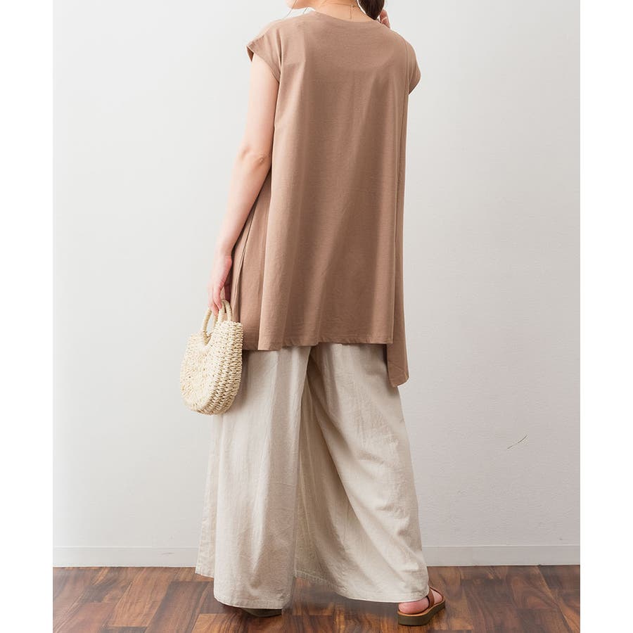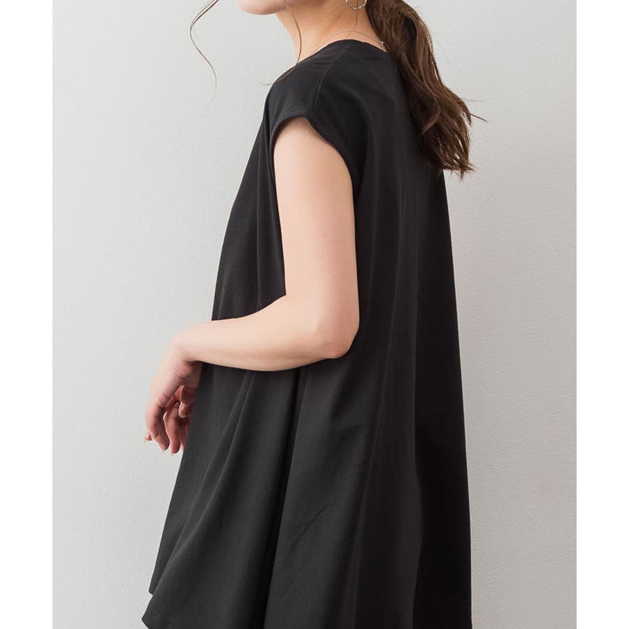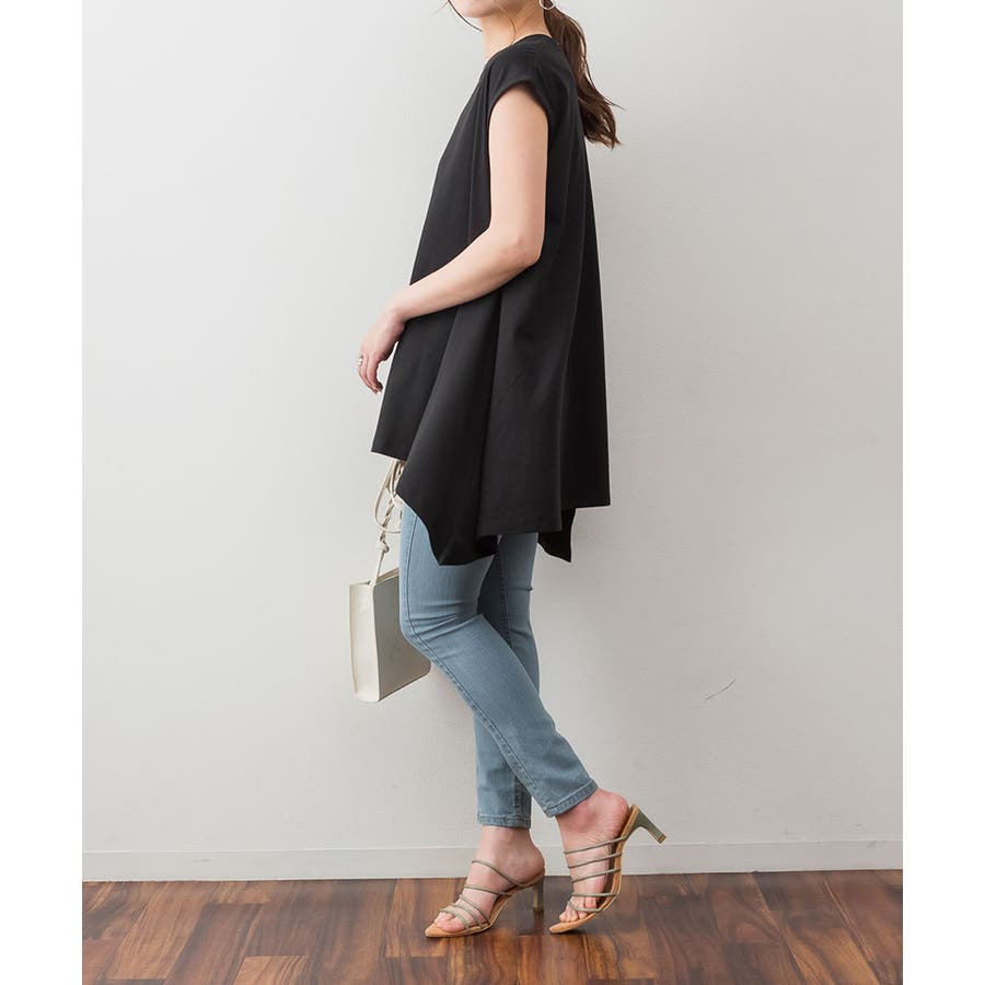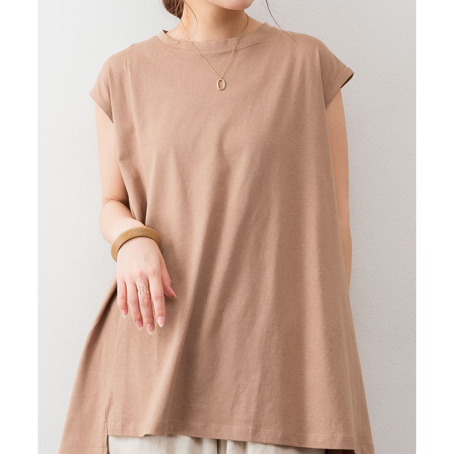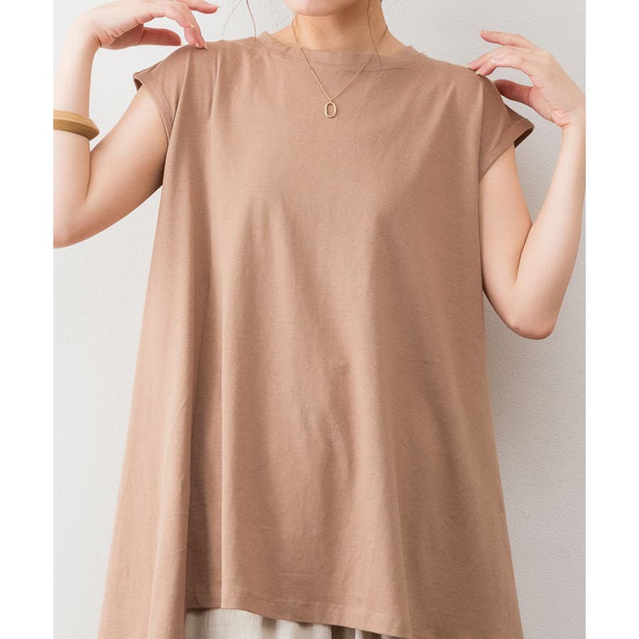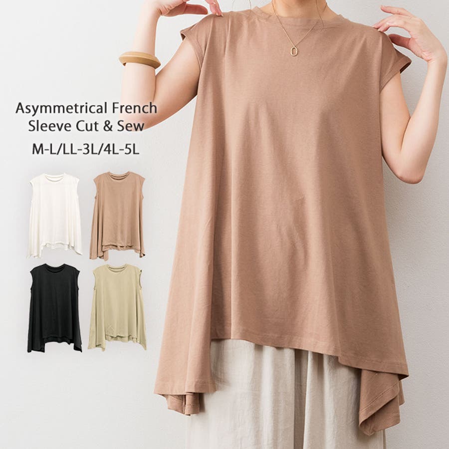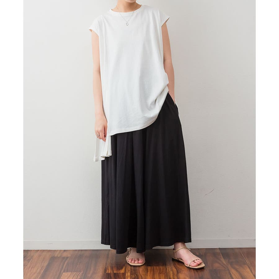 裾が段違いのアシメデザインになっているチュニック丈カットソー。