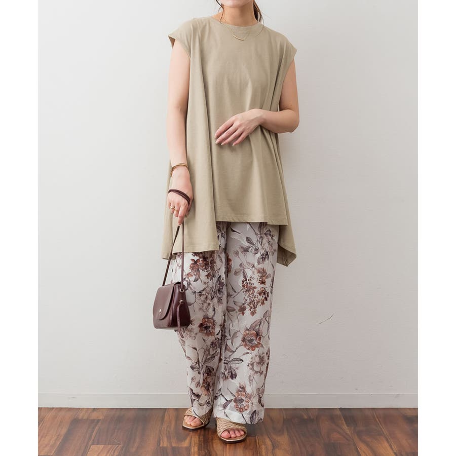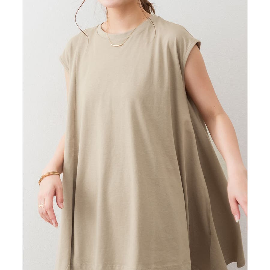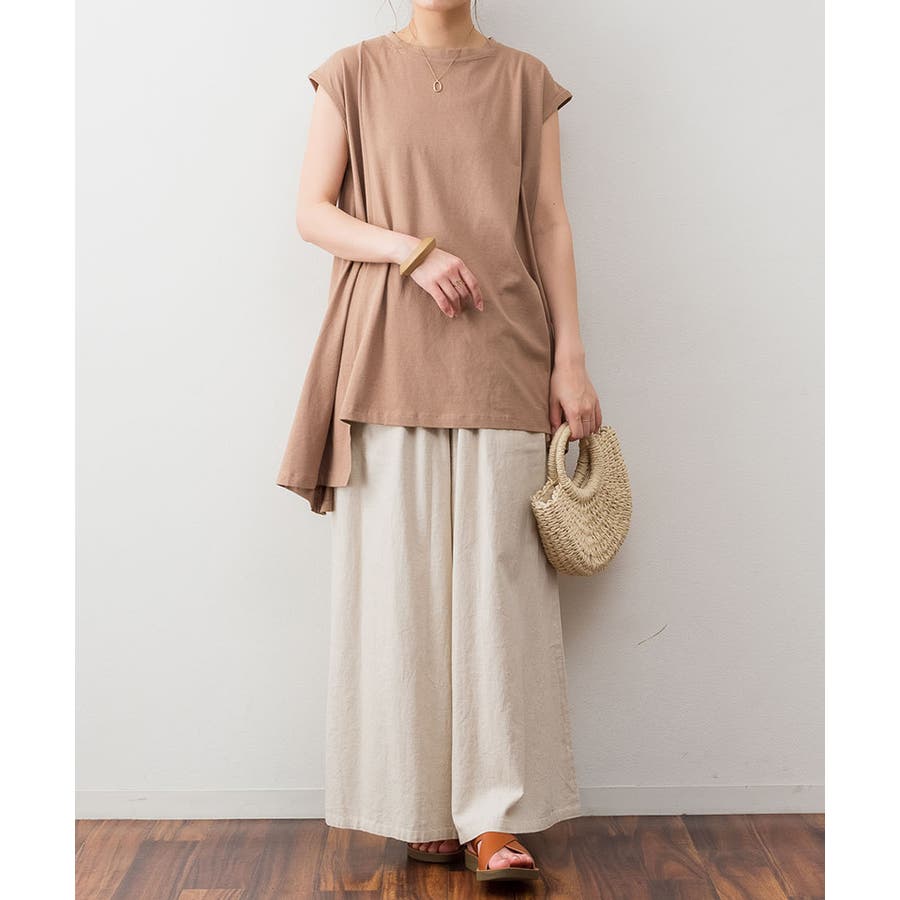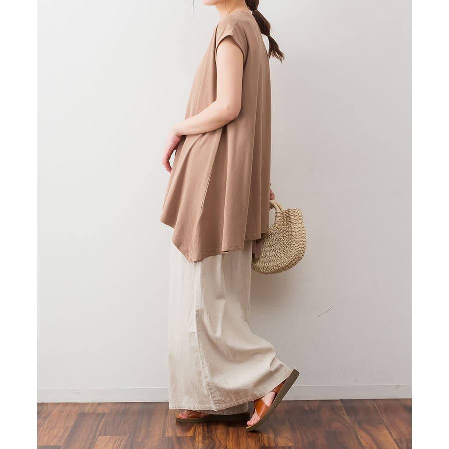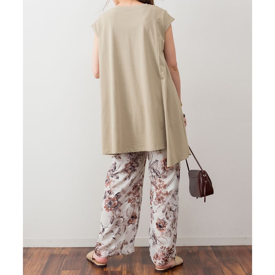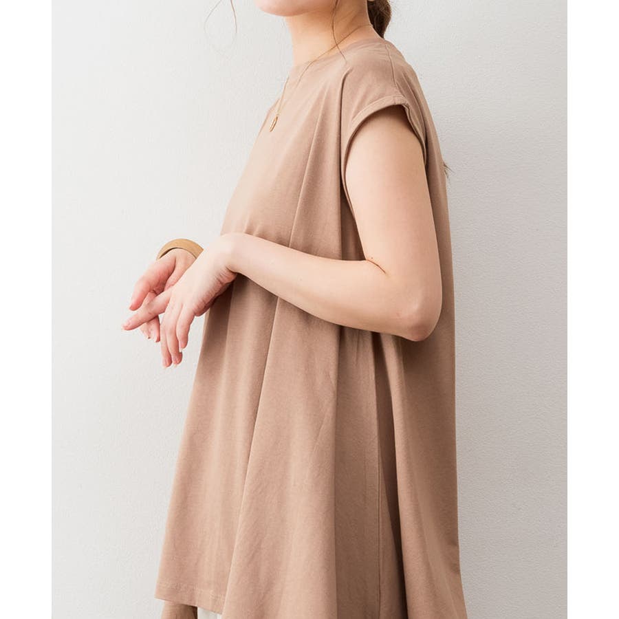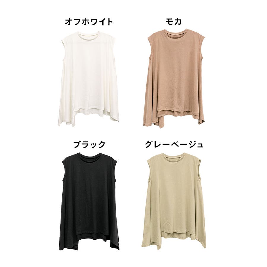 裾が段違いのアシメデザインになっているチュニック丈カットソー。