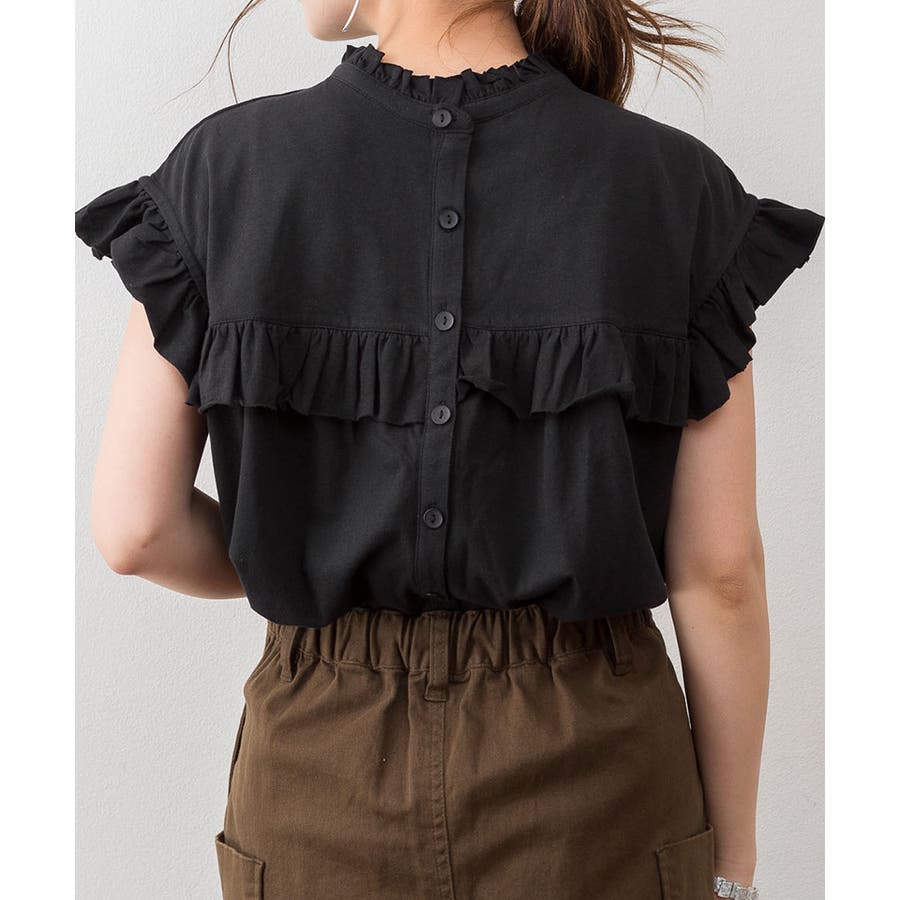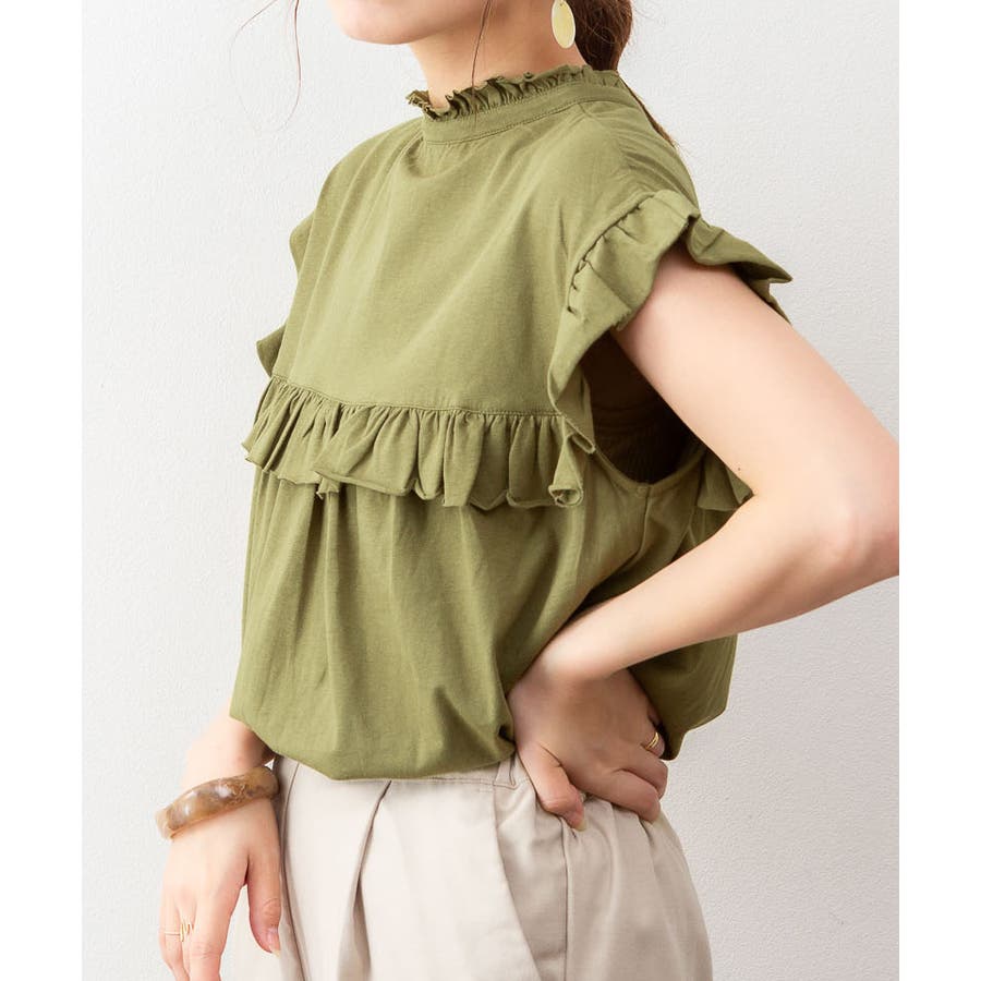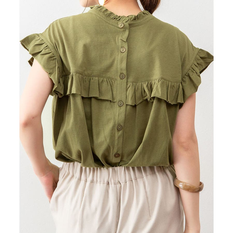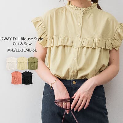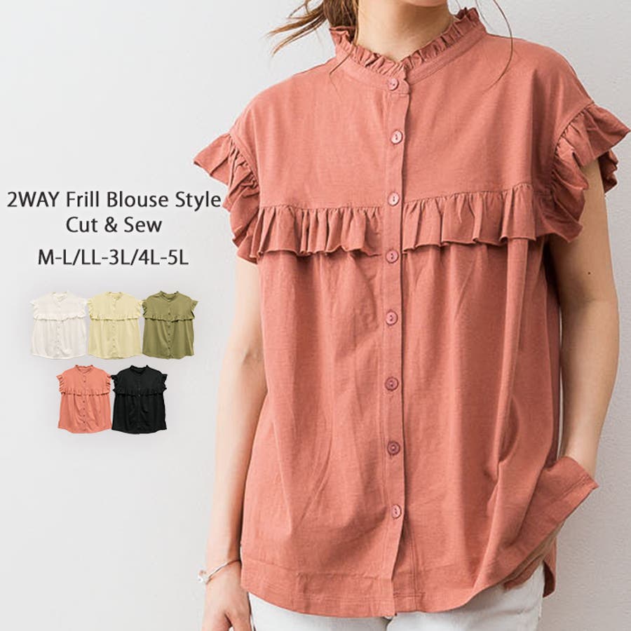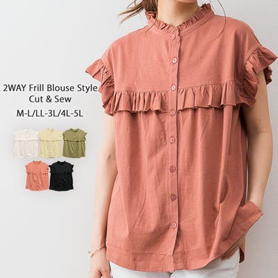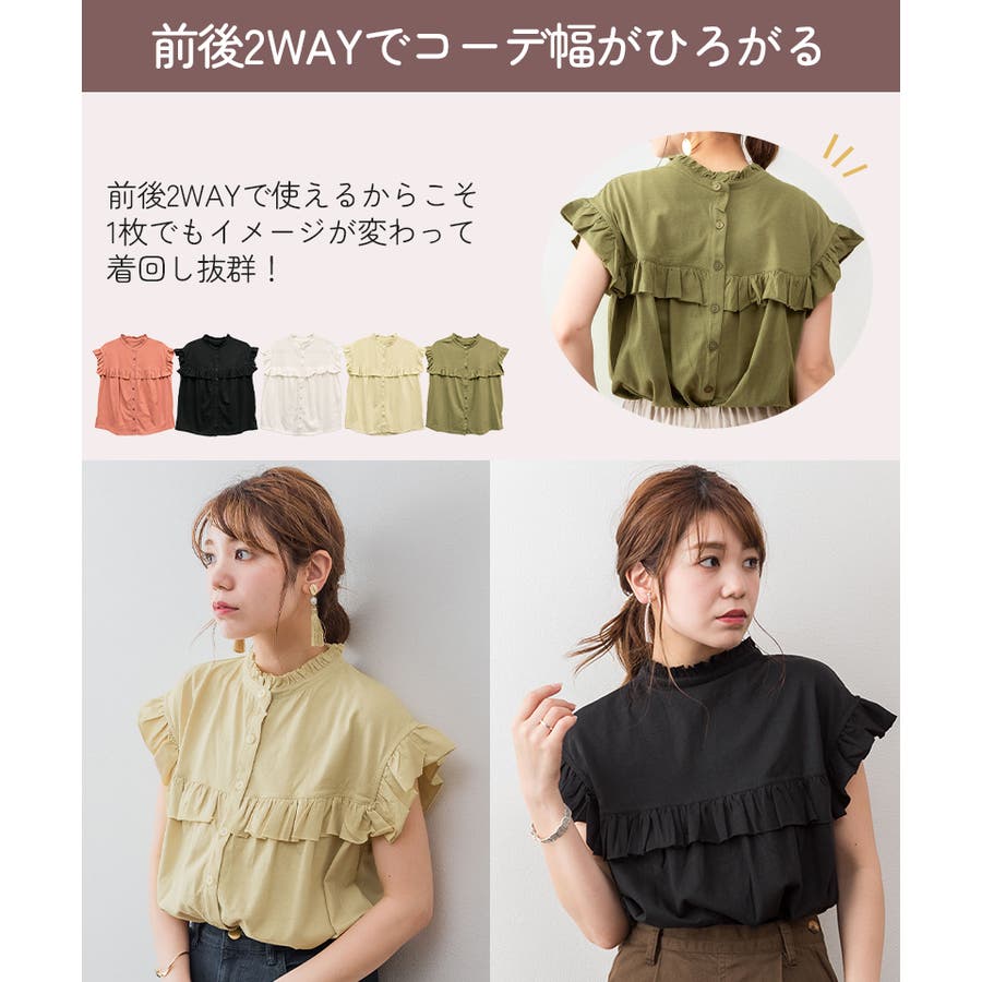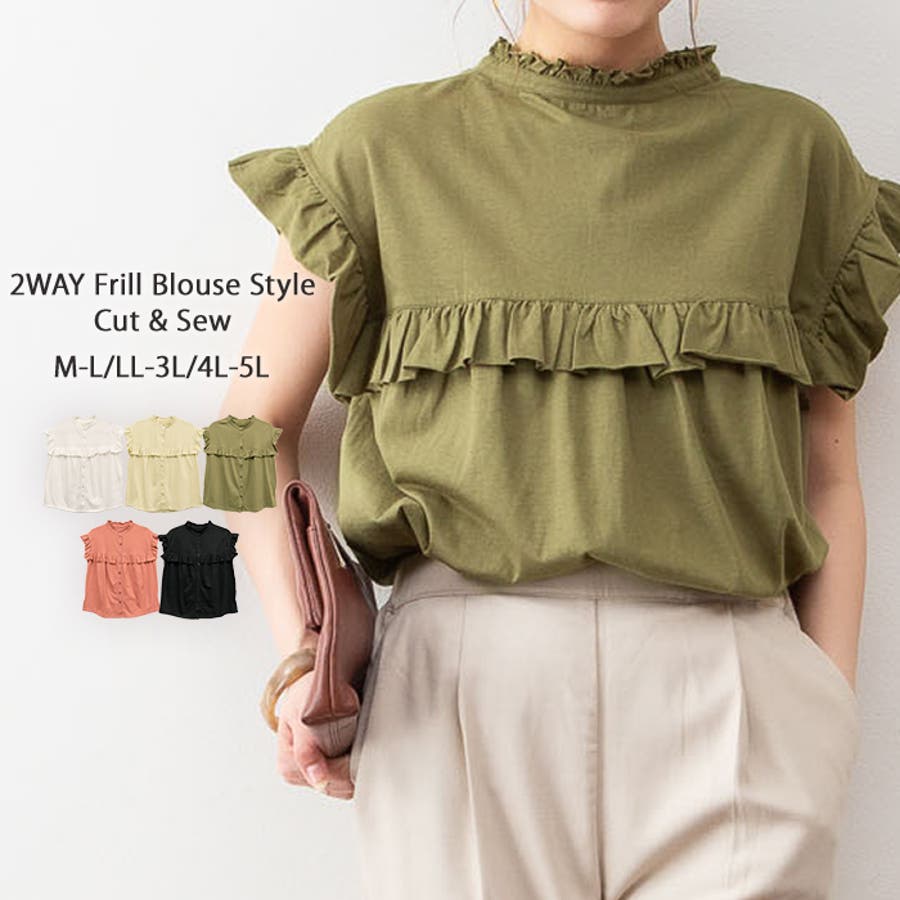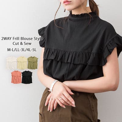 前後2WAY仕様のフリルブラウス風のカットソー。