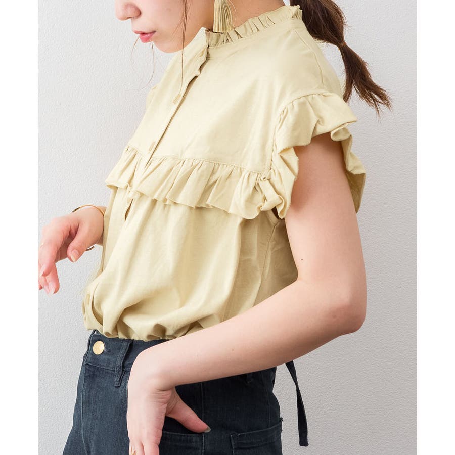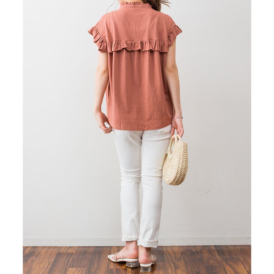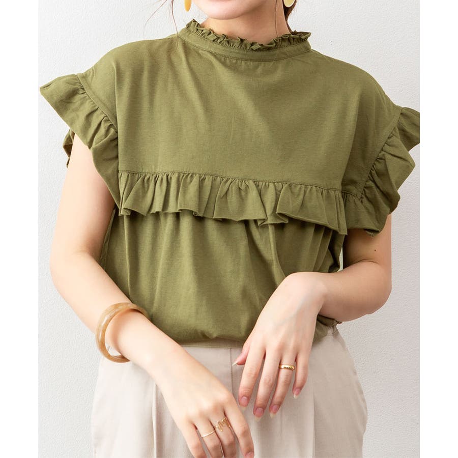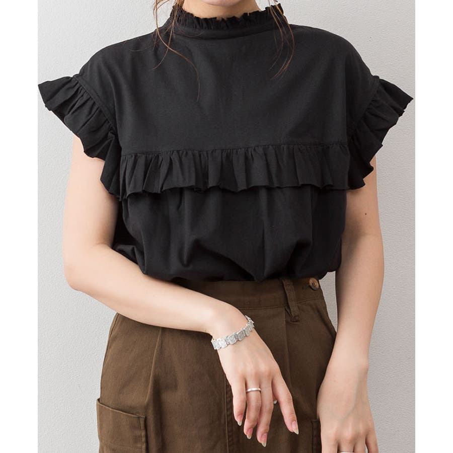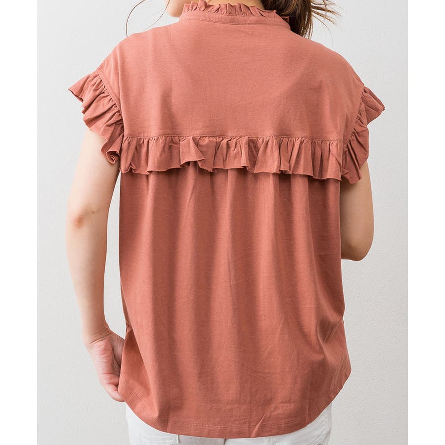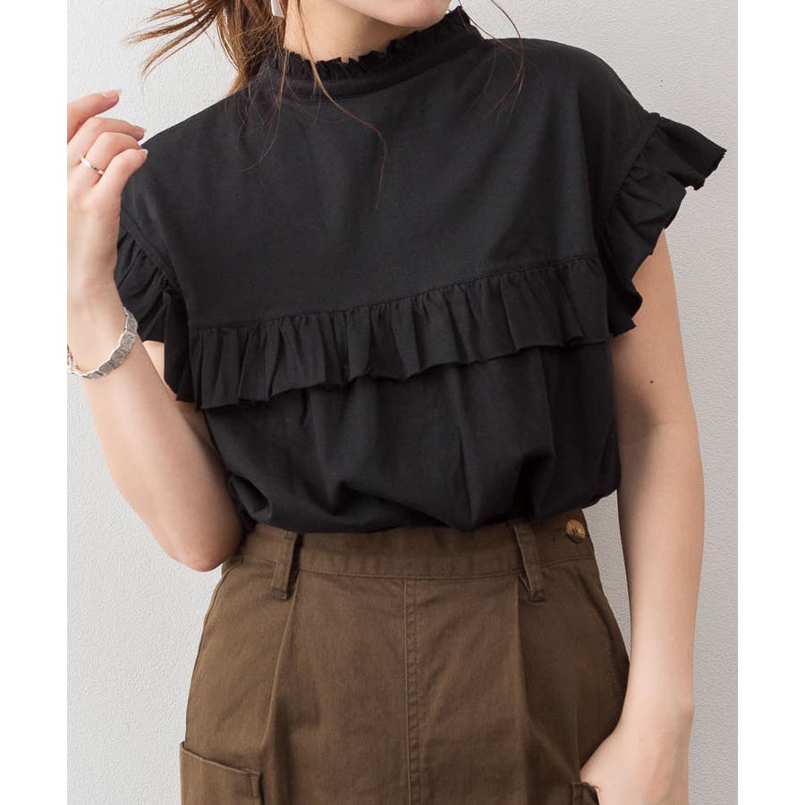 前後2WAY仕様のフリルブラウス風のカットソー。