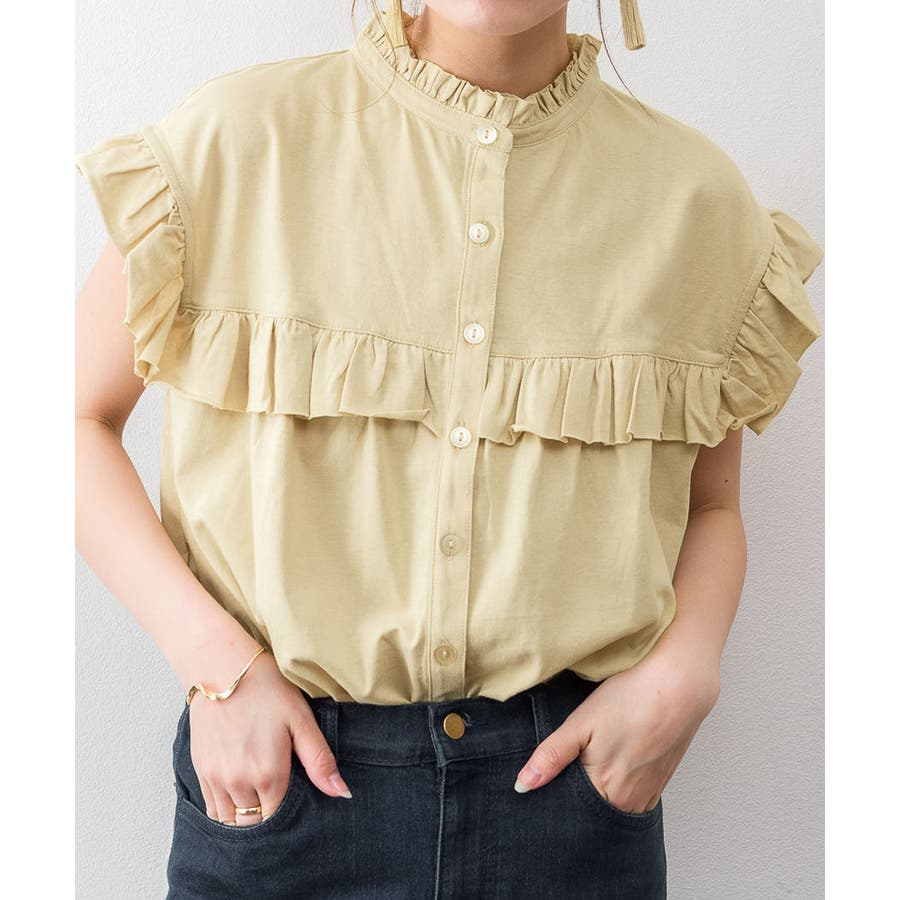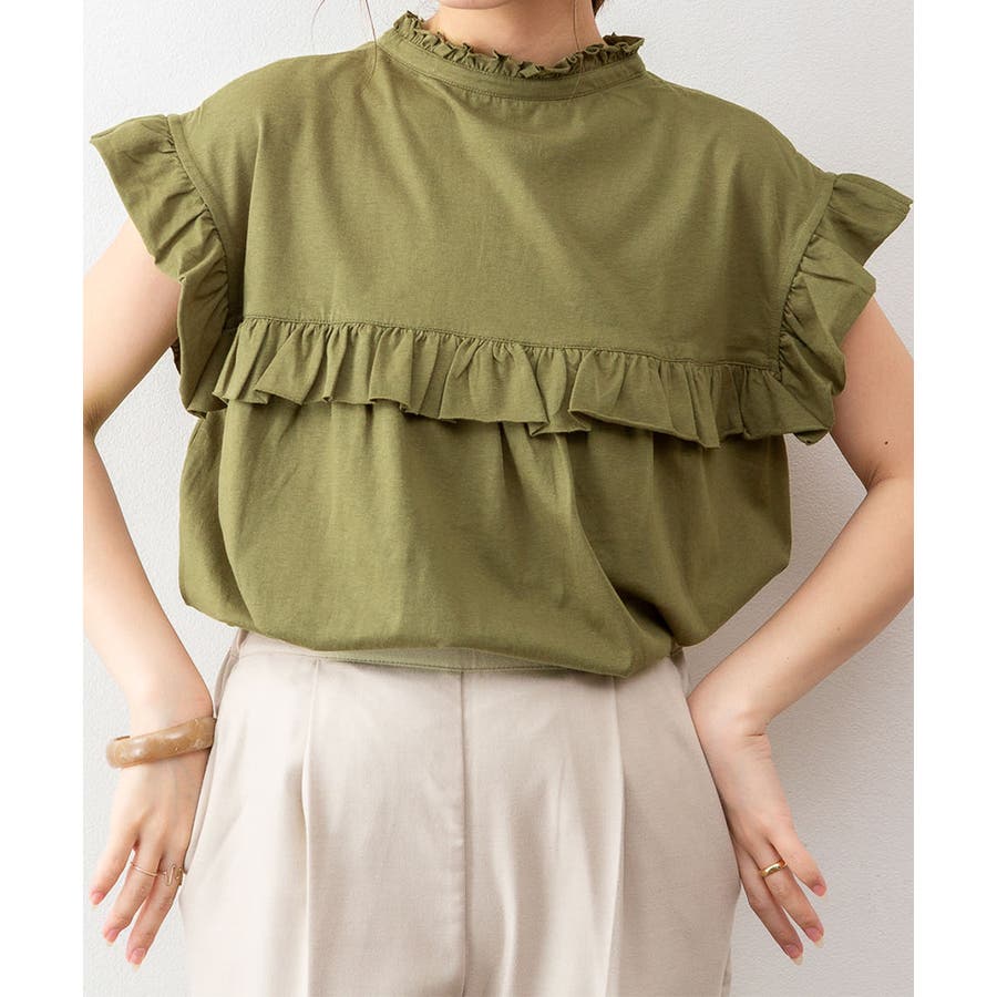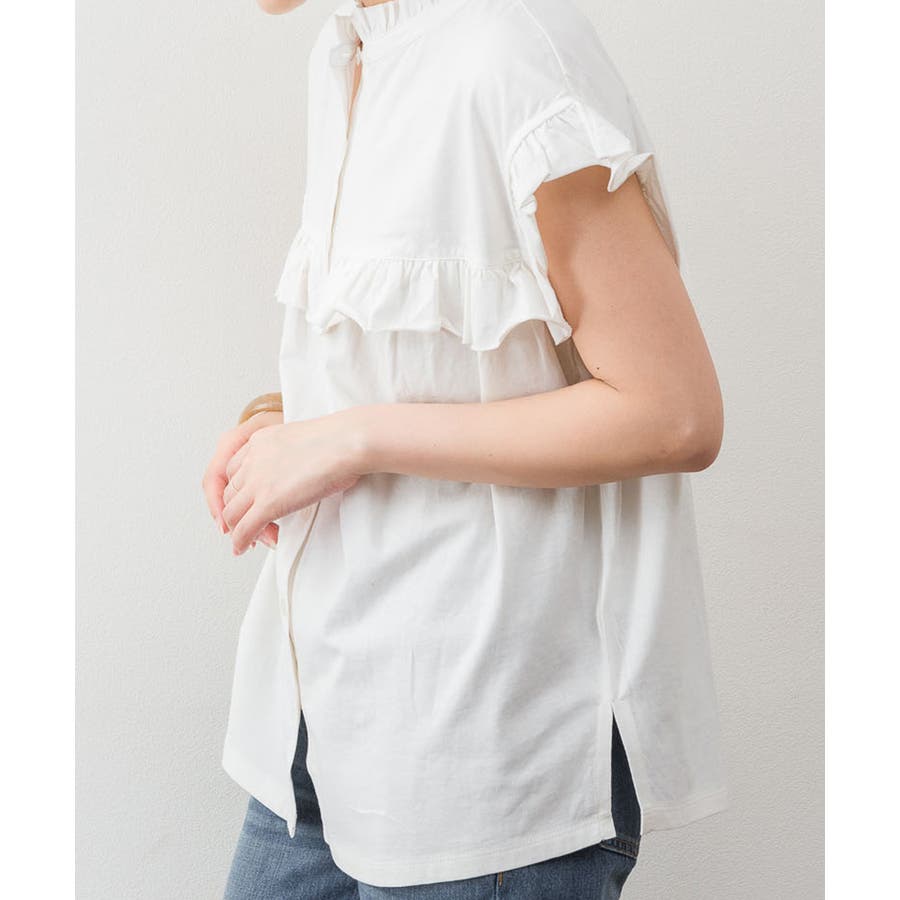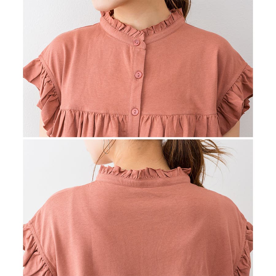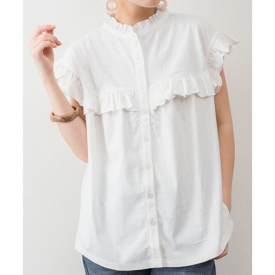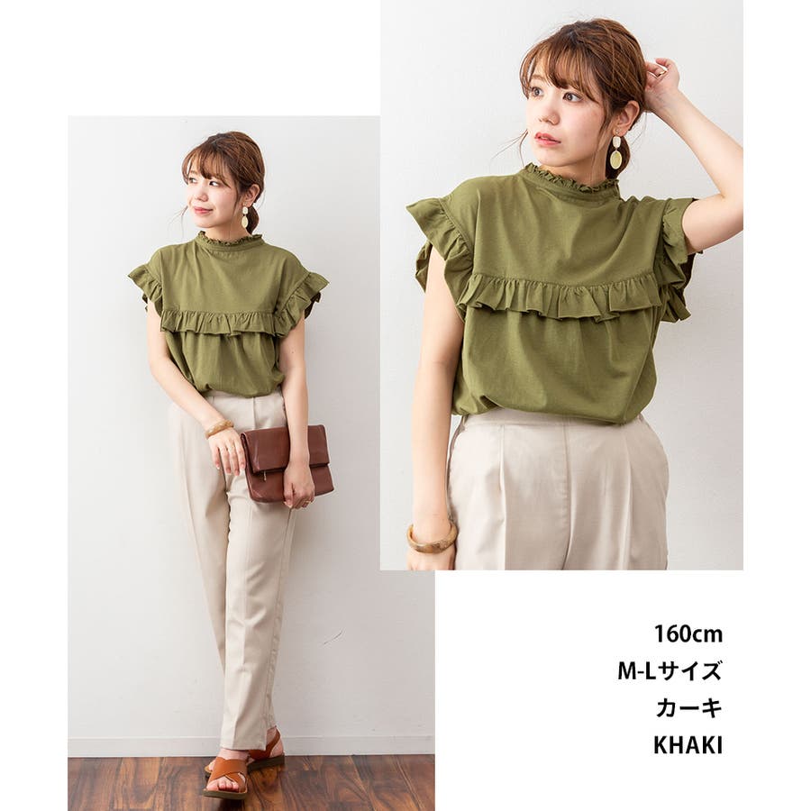 前後2WAY仕様のフリルブラウス風のカットソー。